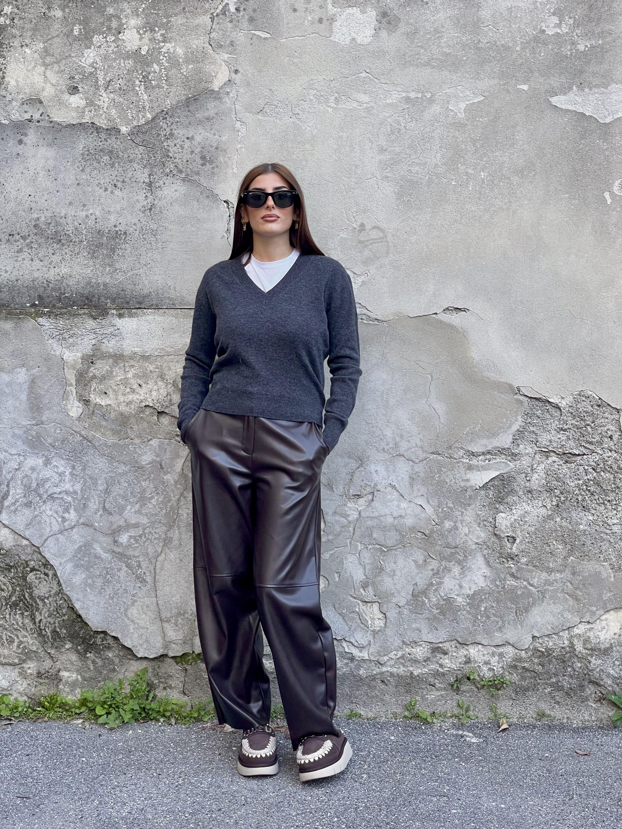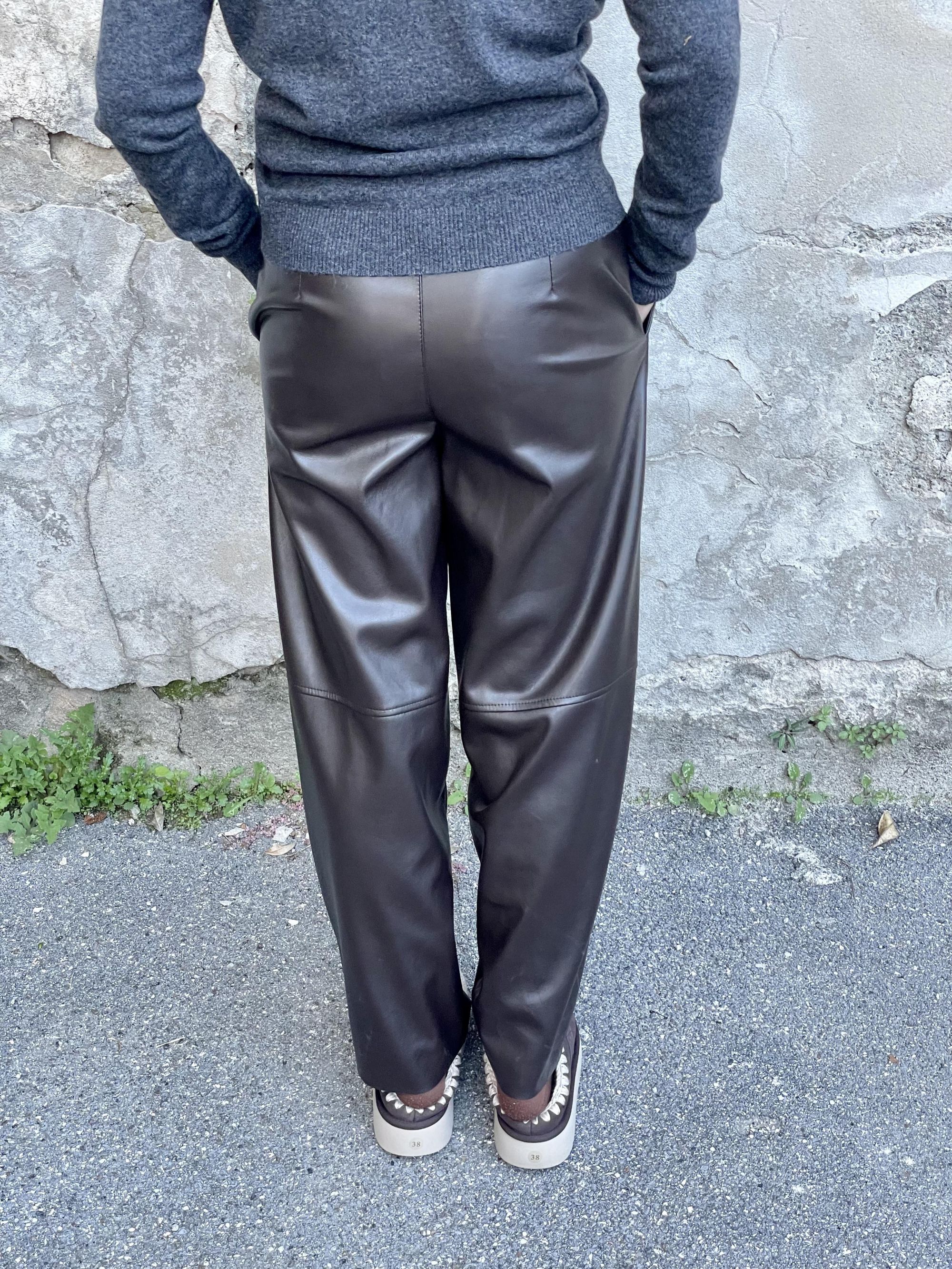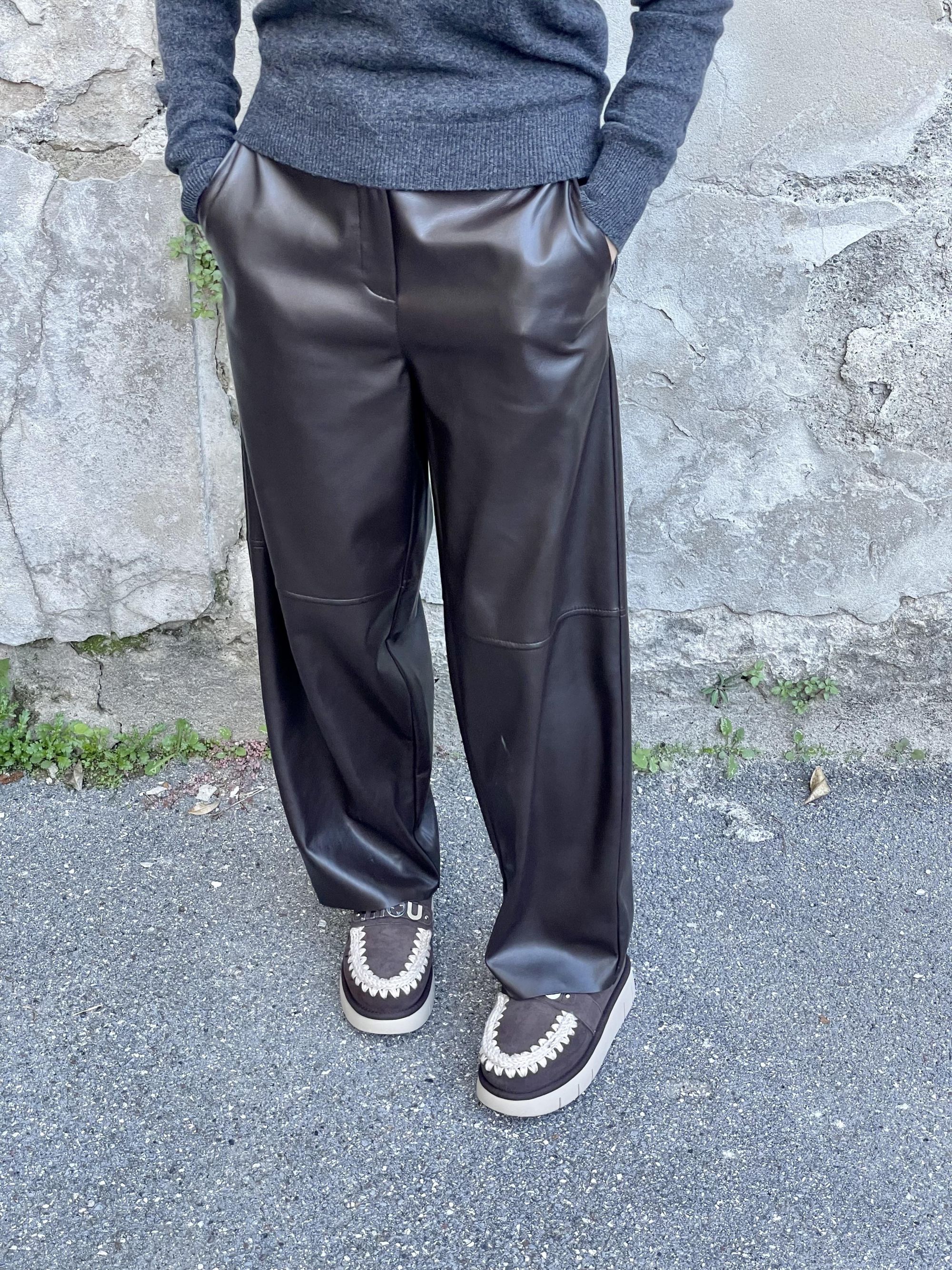 TENSIONE IN - PANTALONE BARREL IN ECOPELLE MORO ART. 225216