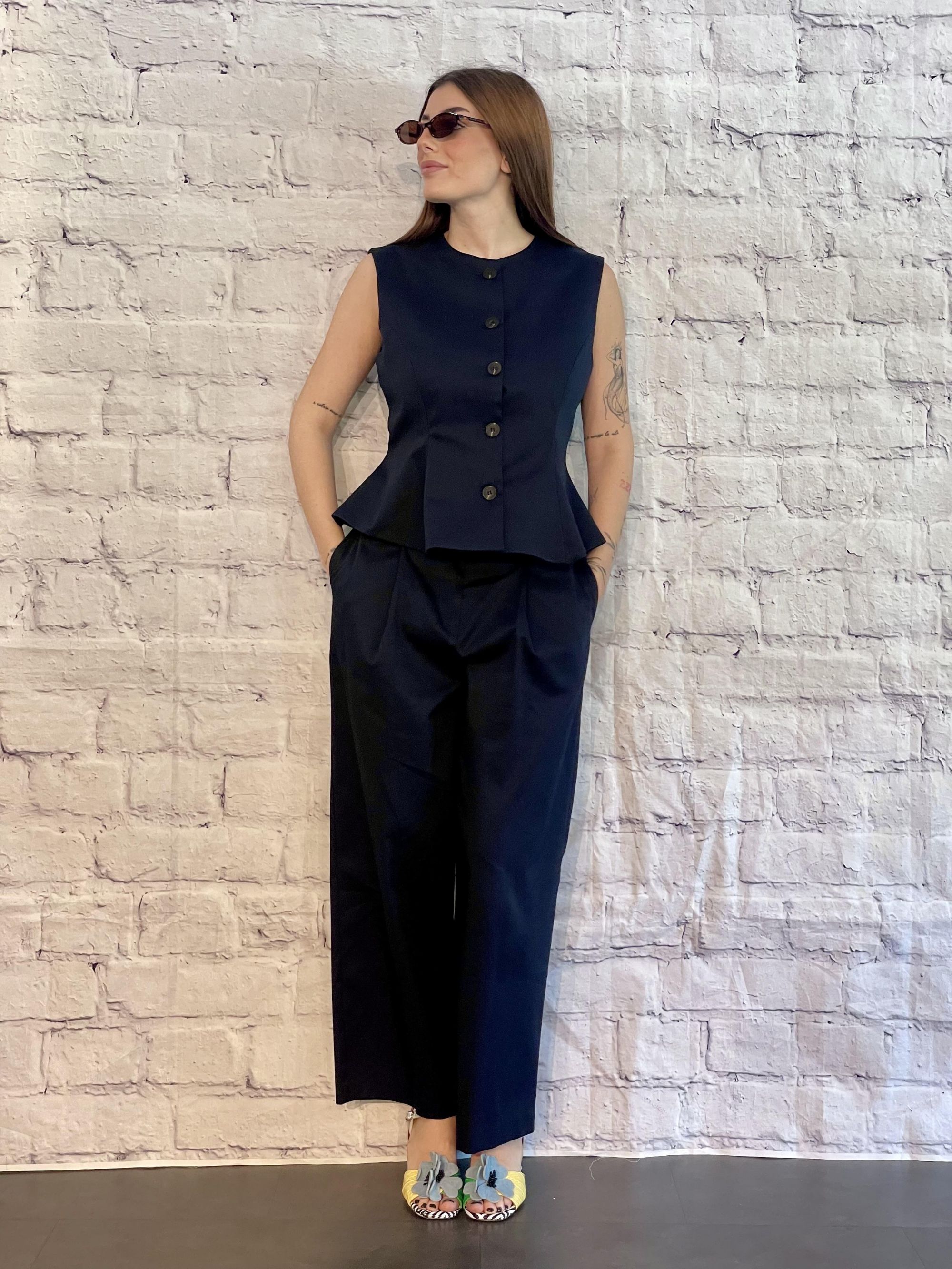 TENSIONE IN - PANTALONE BLU CON PINCES ART. 26P4516