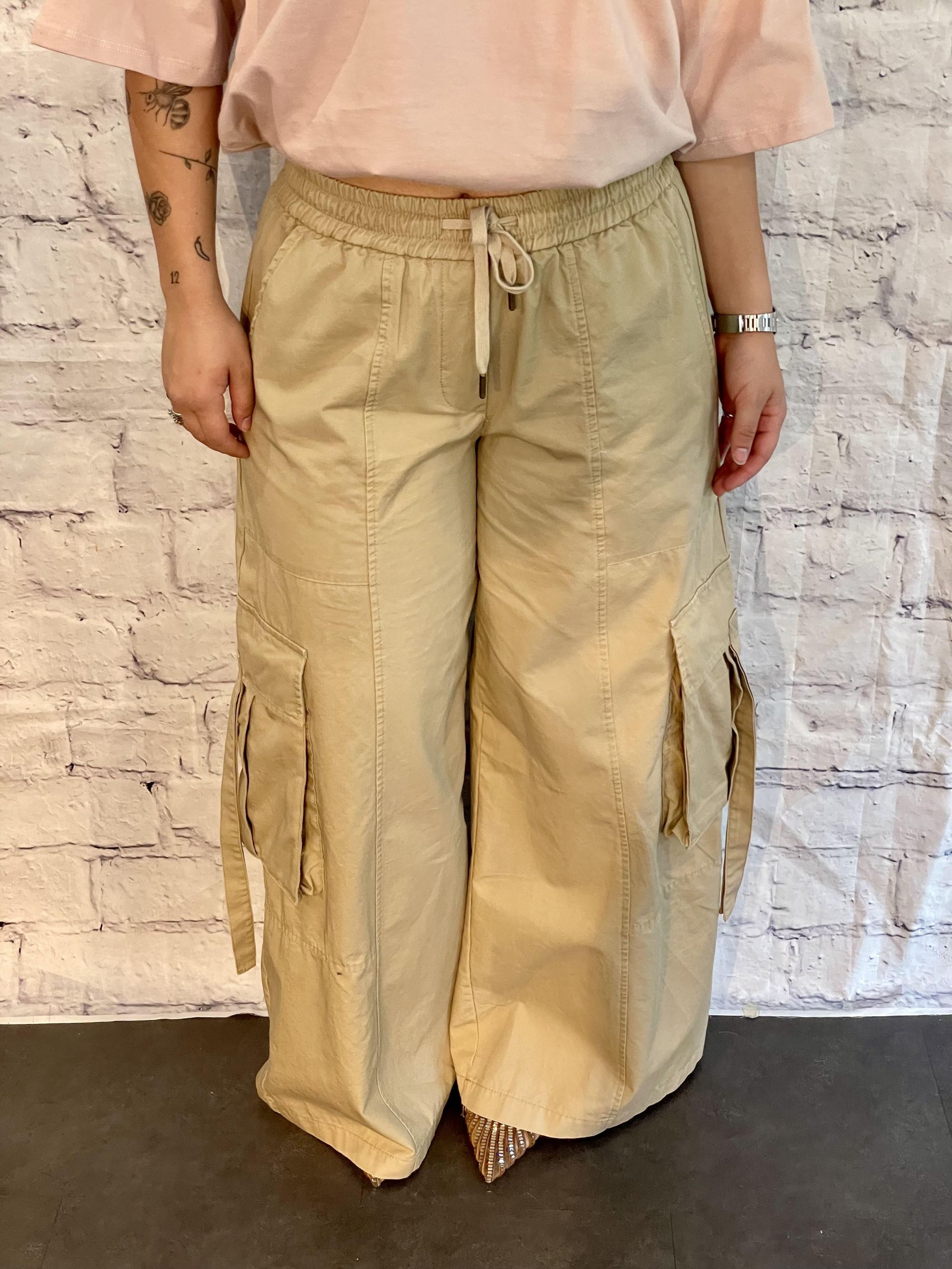 TENSIONE IN - PANTALONE CARGO BEIGE AMPIO ART. HM707