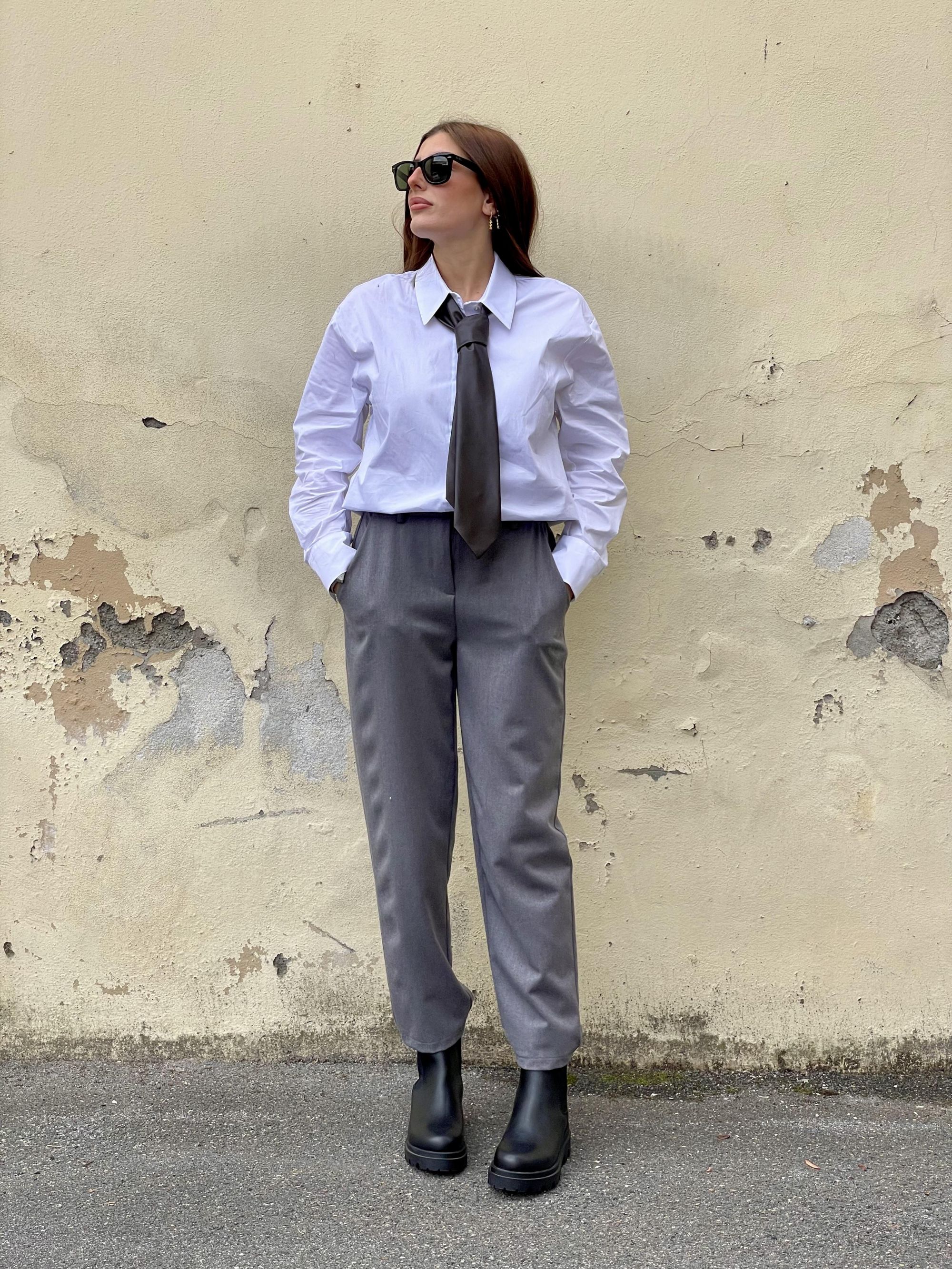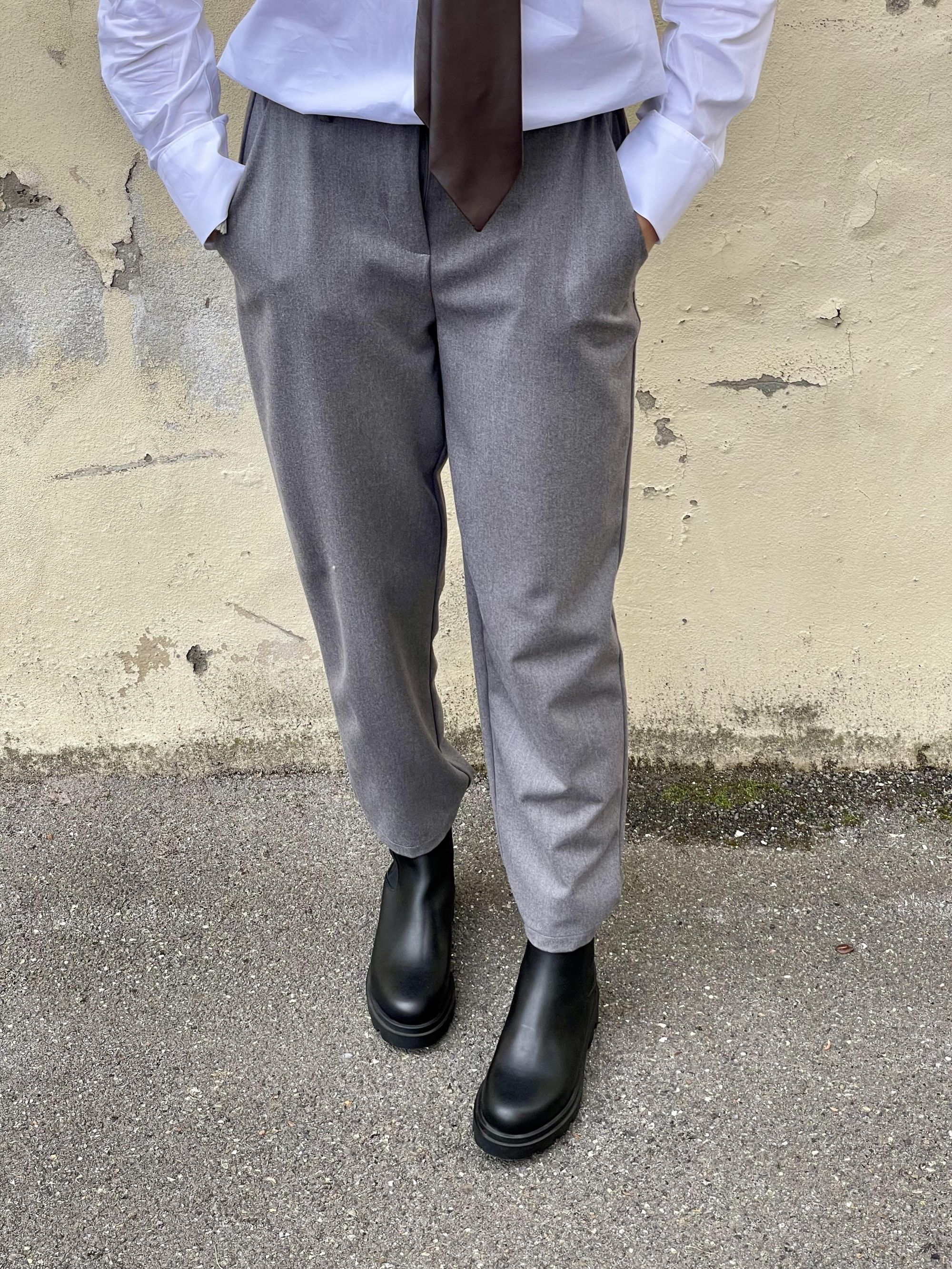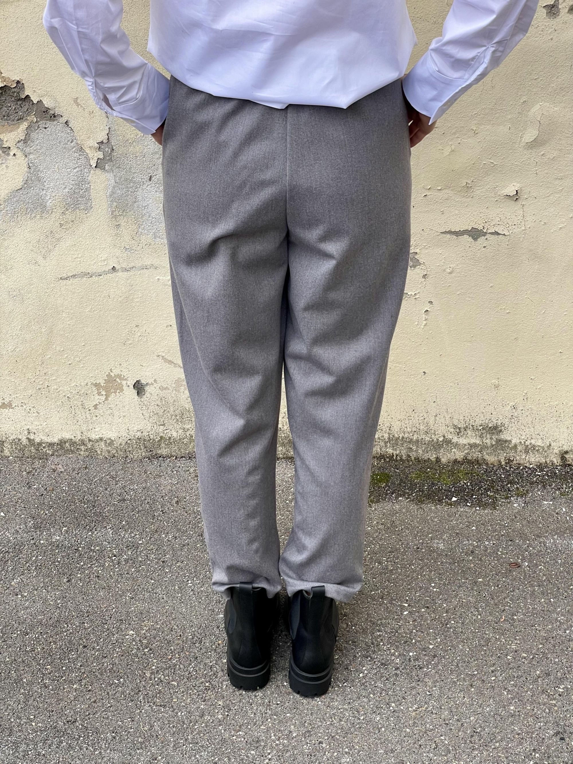 TENSIONE IN - PANTALONE CARROT GRIGIO CON COULISSE DIETRO ART. 26P1576