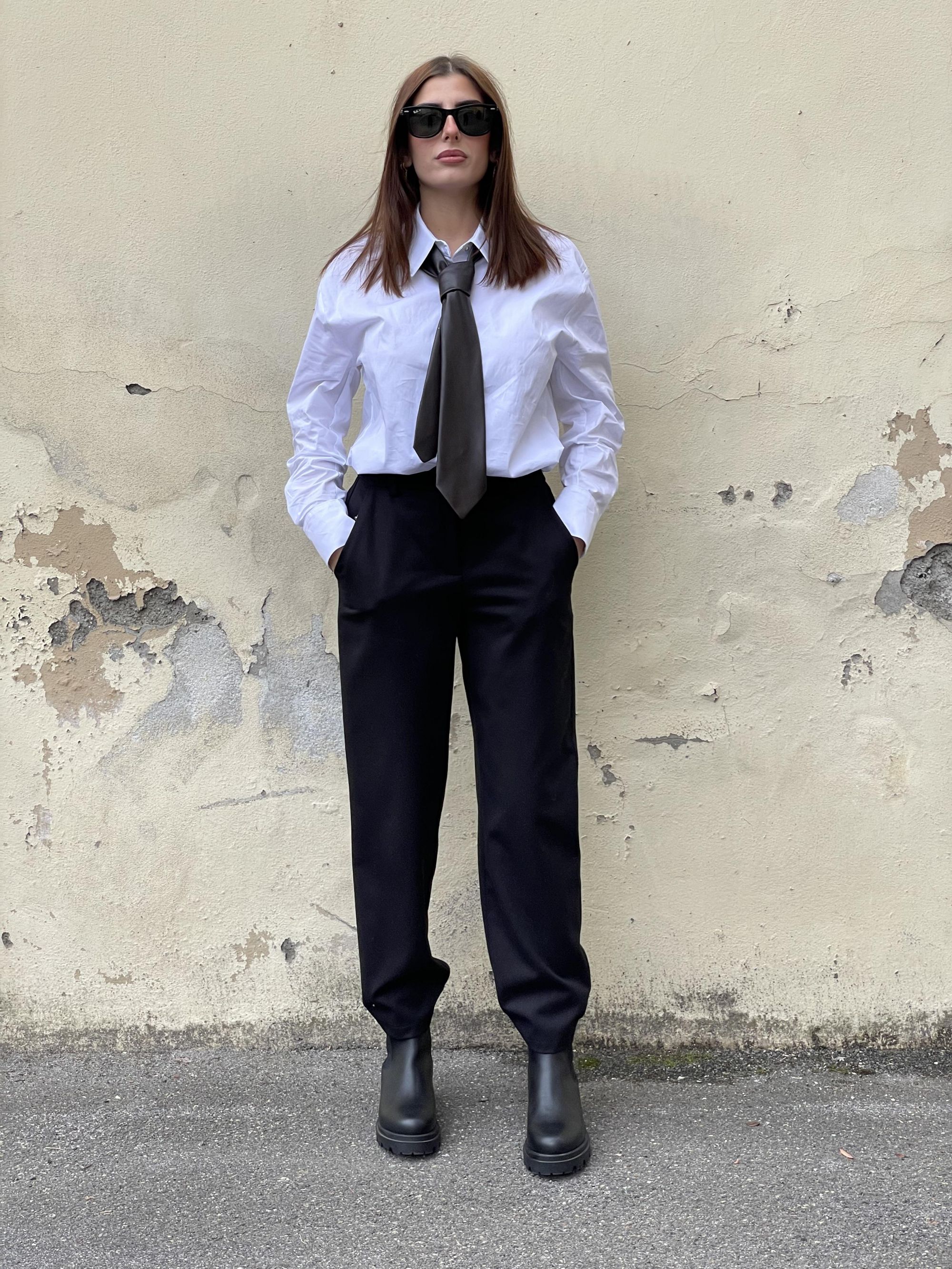 TENSIONE IN - PANTALONE CARROT NERO CON COULISSE DIETRO ART. 26P1576