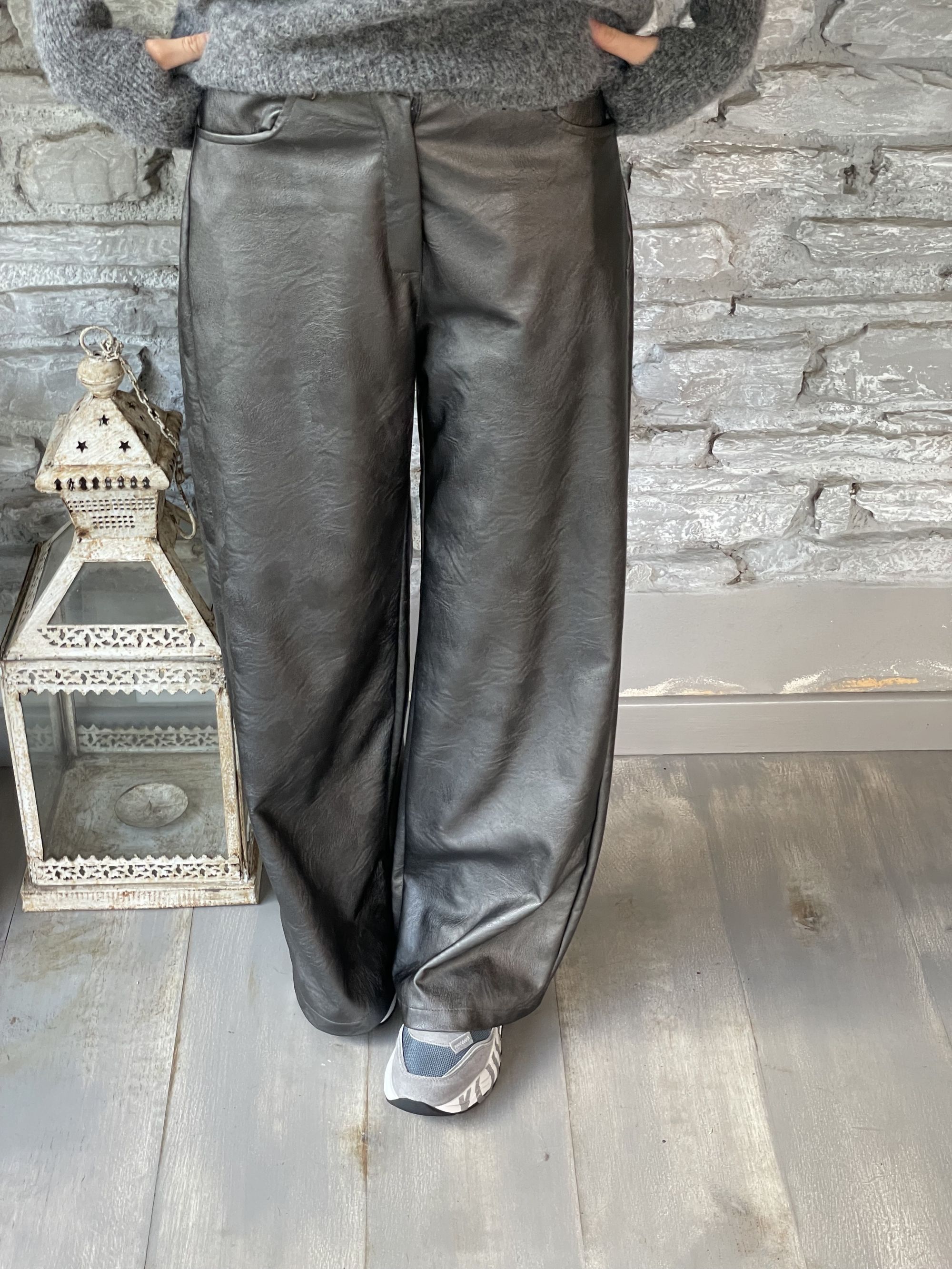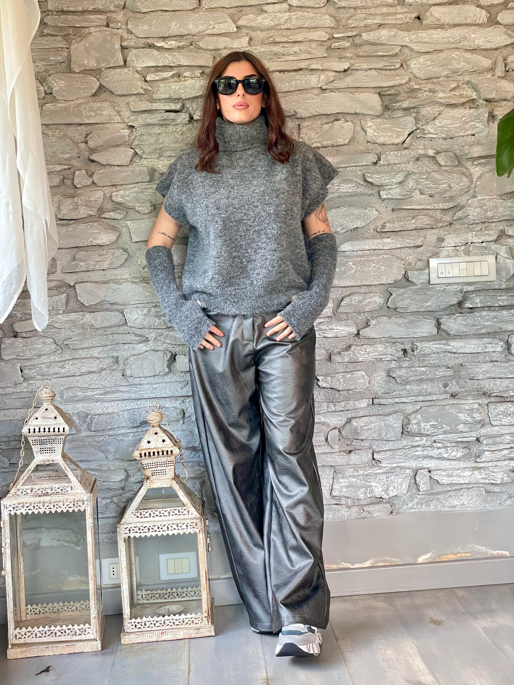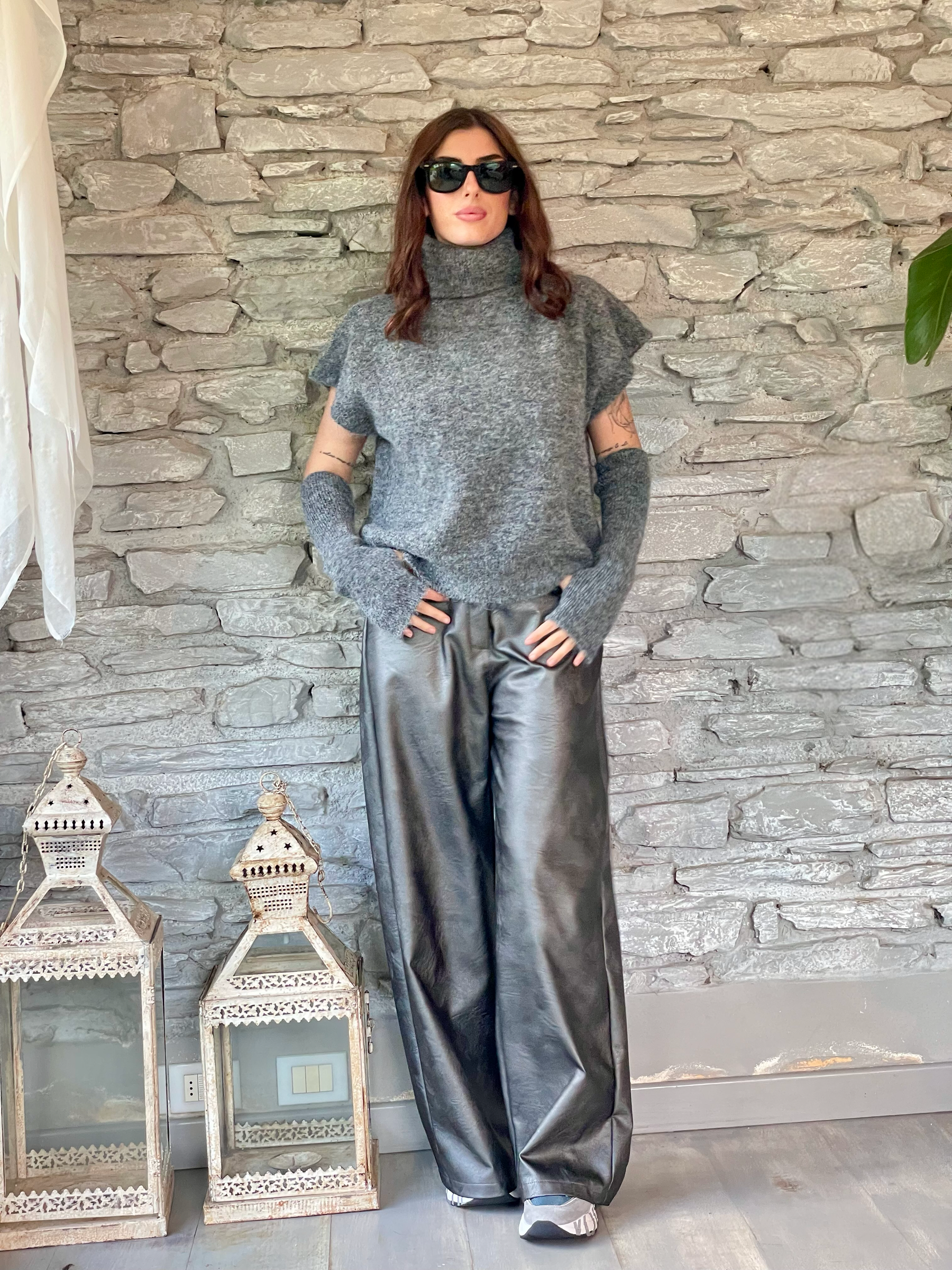 TENSIONE IN - PANTALONE PALAZZO SUPERPOCKET SPALMATO GRIGIO ART. 224155-L
