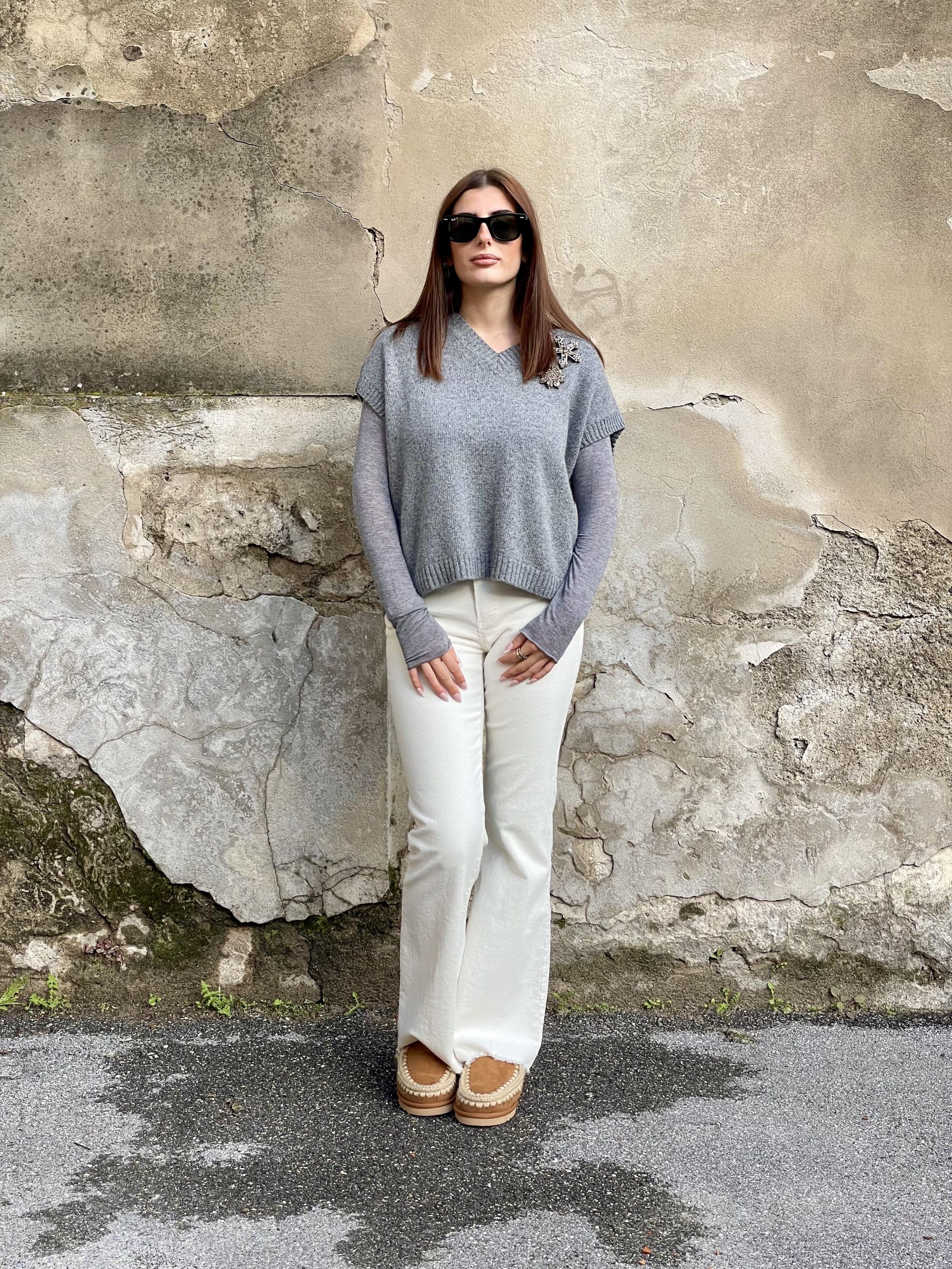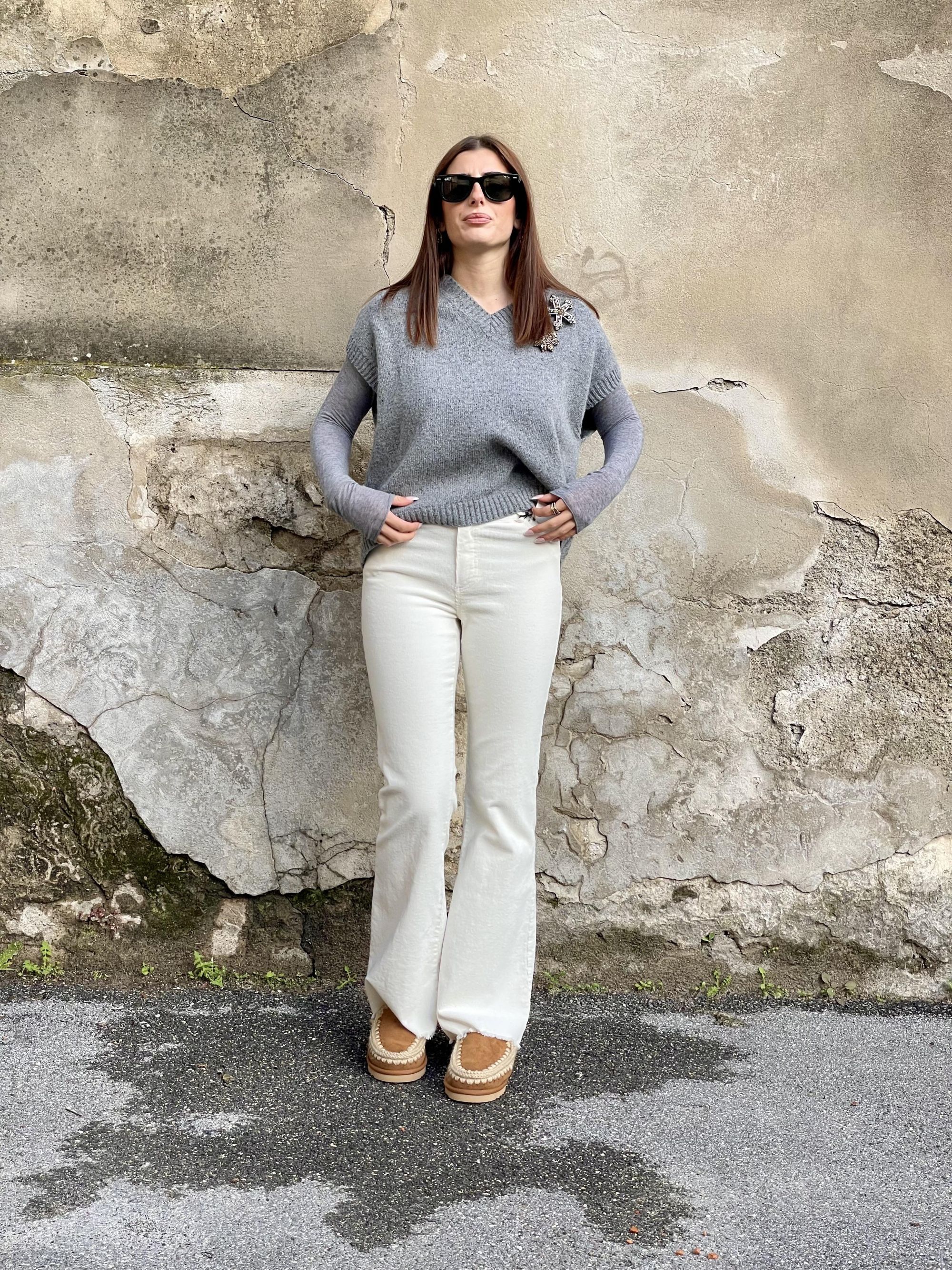 TENSIONE IN - PANTALONE TAGLIO JEANS IN VELLUTO PANNA ART. PA3778AI25