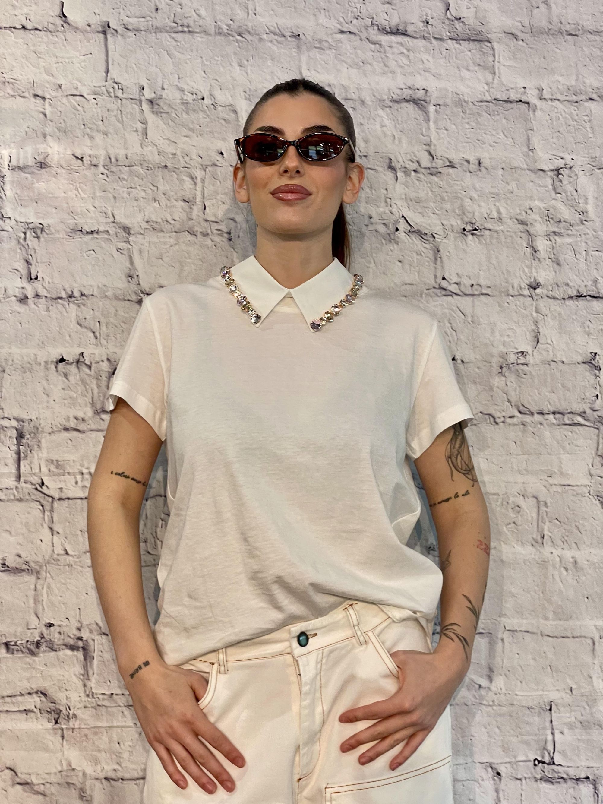 SUSY MIX - T-SHIRT POLO COLOR LATTE CON COLLO GIOIELLO ART. SH003850