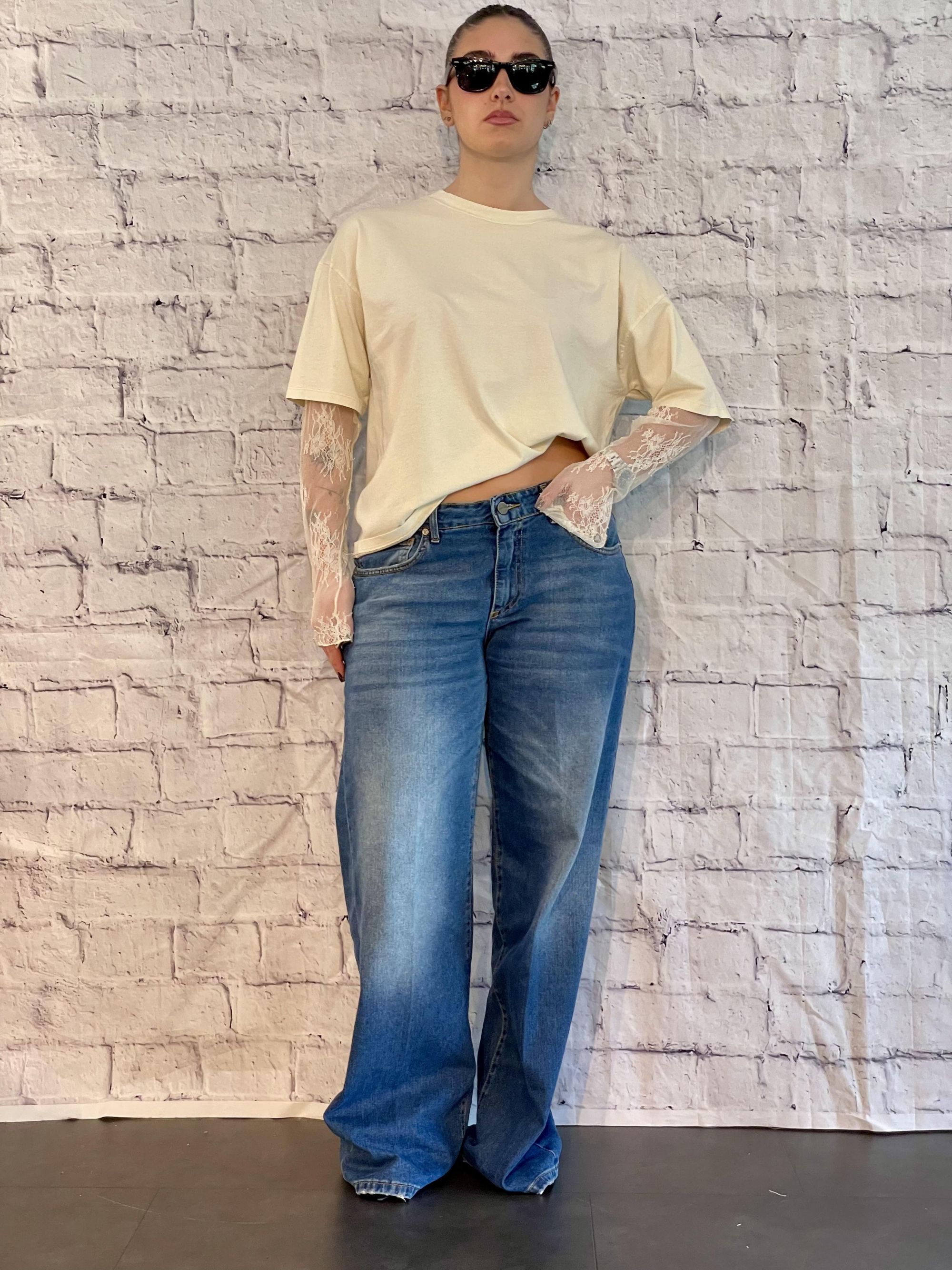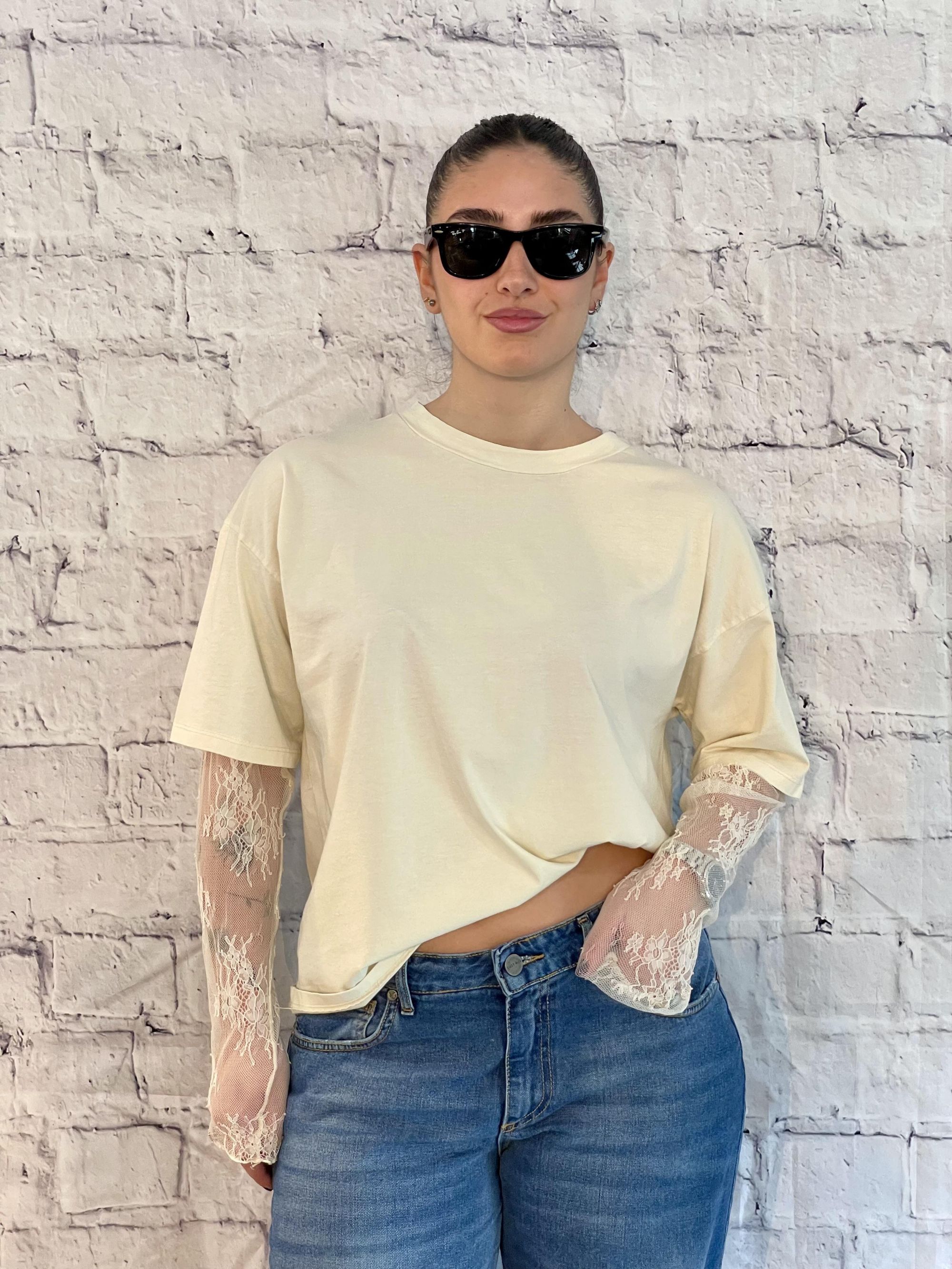 SUSY MIX - T-SHIRT CREMA MANICA LUNGA CON PIZZO ART. 11073