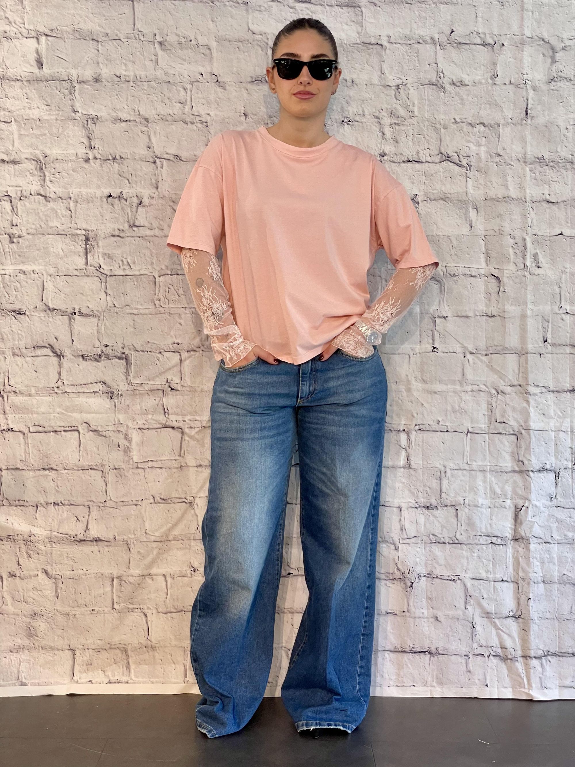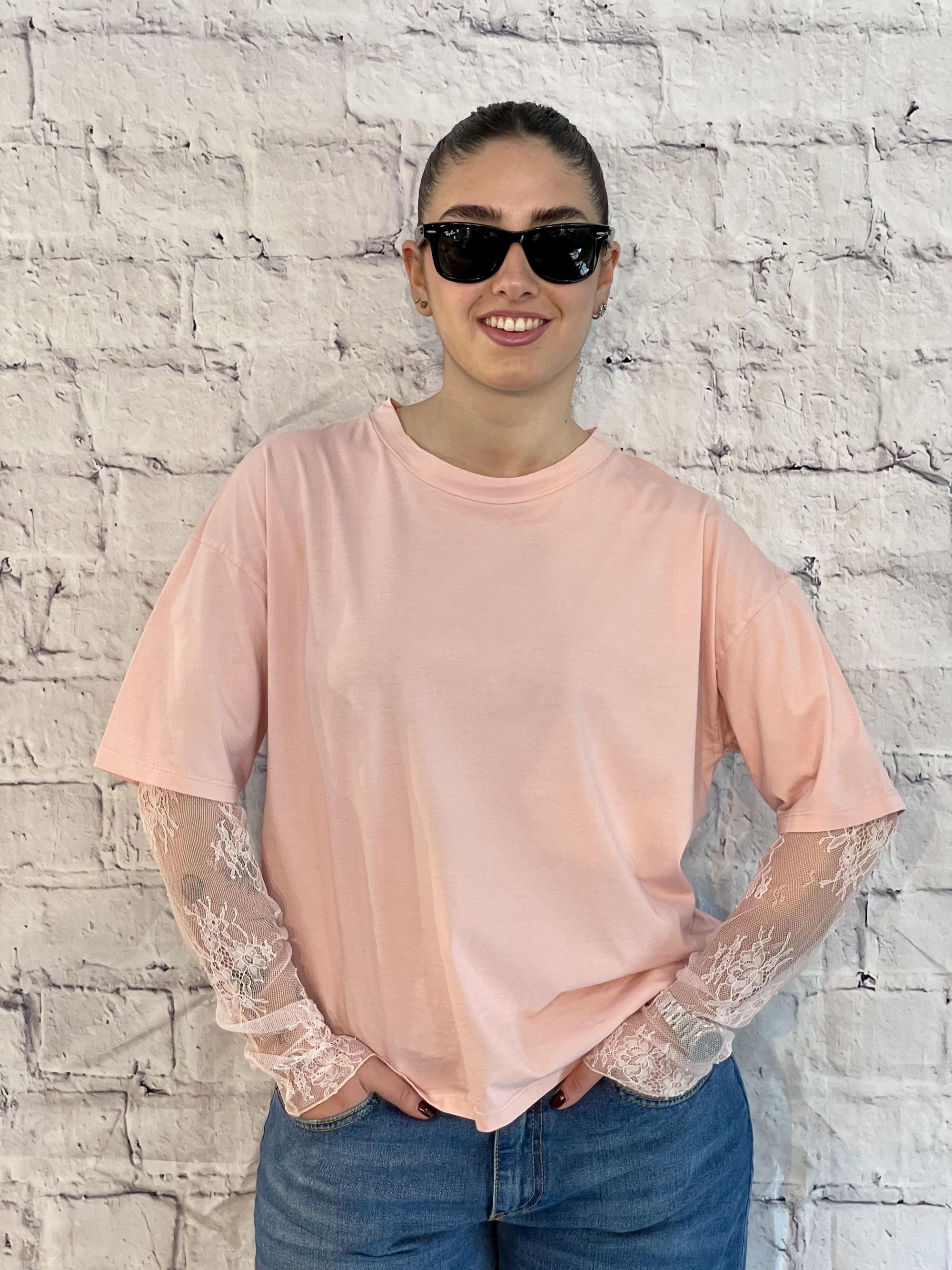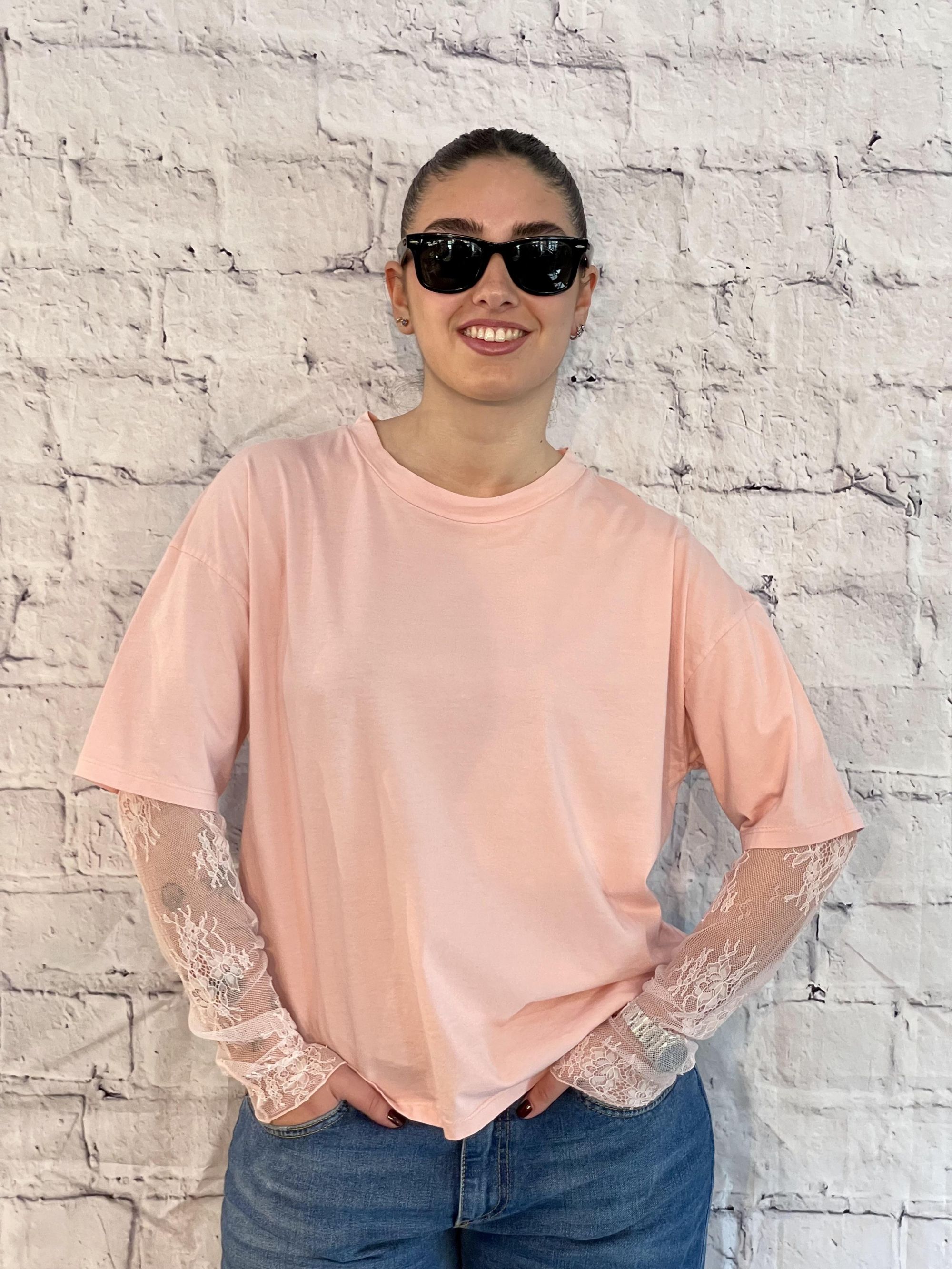SUSY MIX - T-SHIRT ROSA MANICA LUNGA CON PIZZO ART. 11073