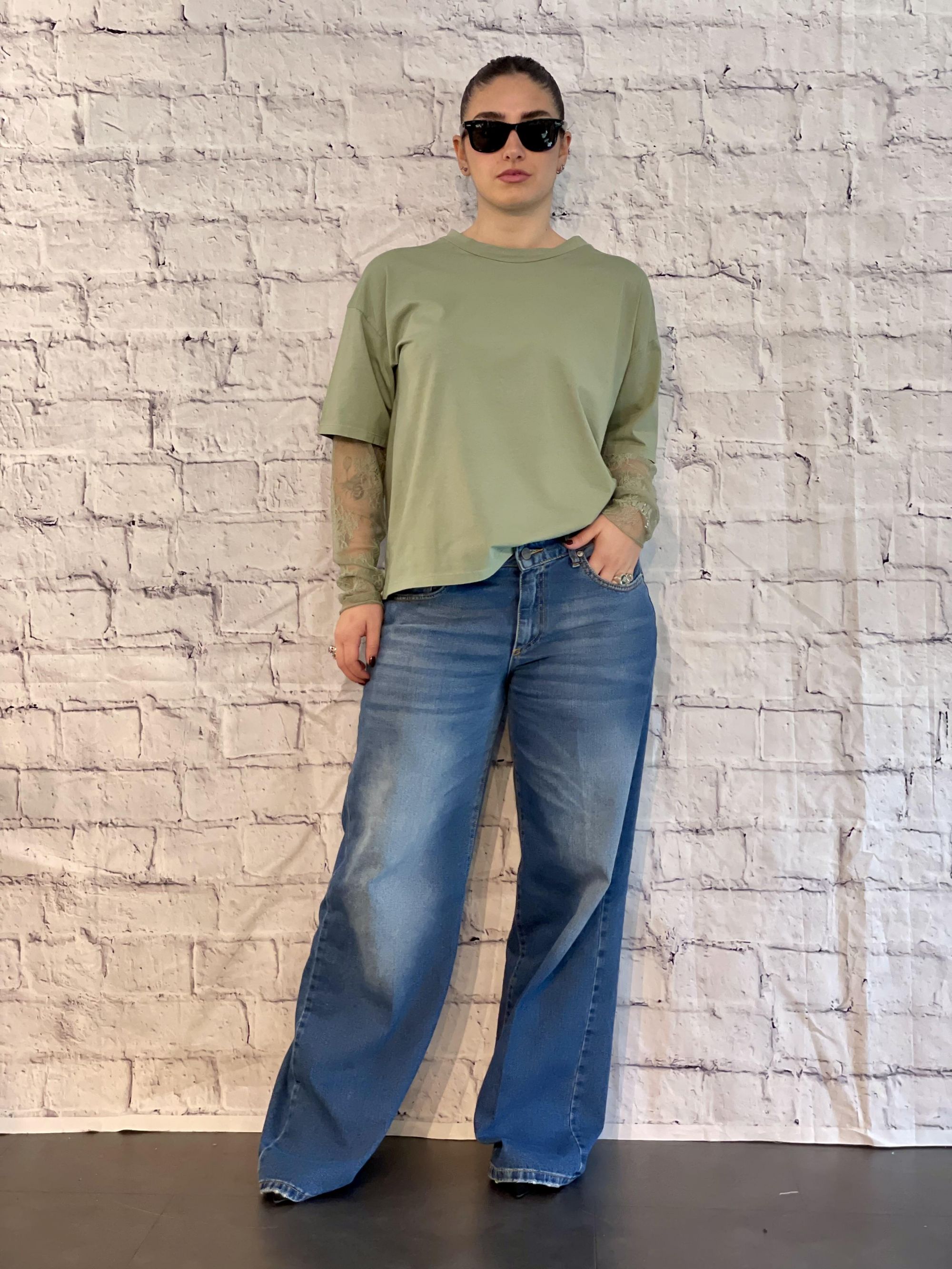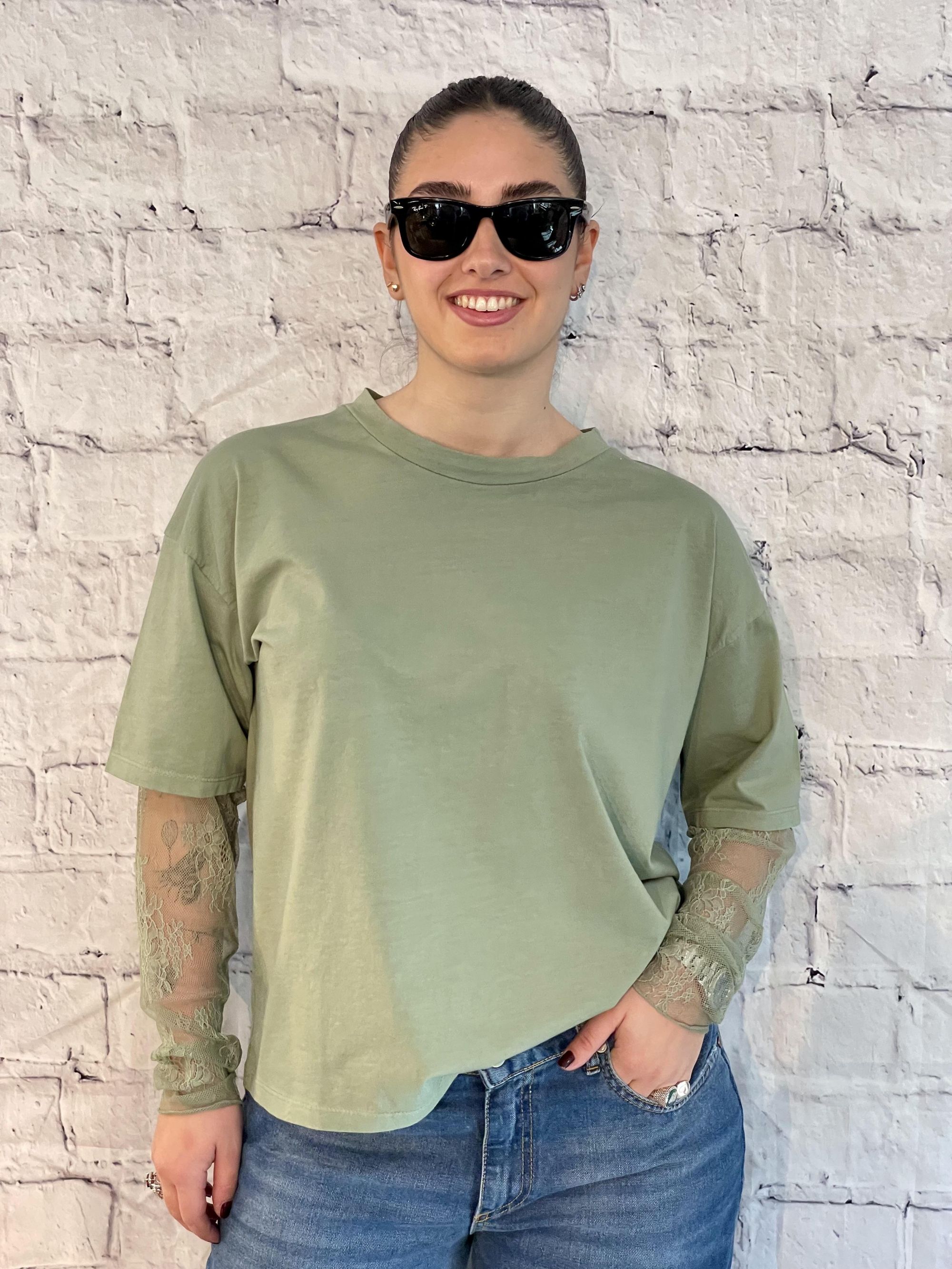 SUSY MIX - T-SHIRT VERDE MANICA LUNGA IN PIZZO ART. 11073
