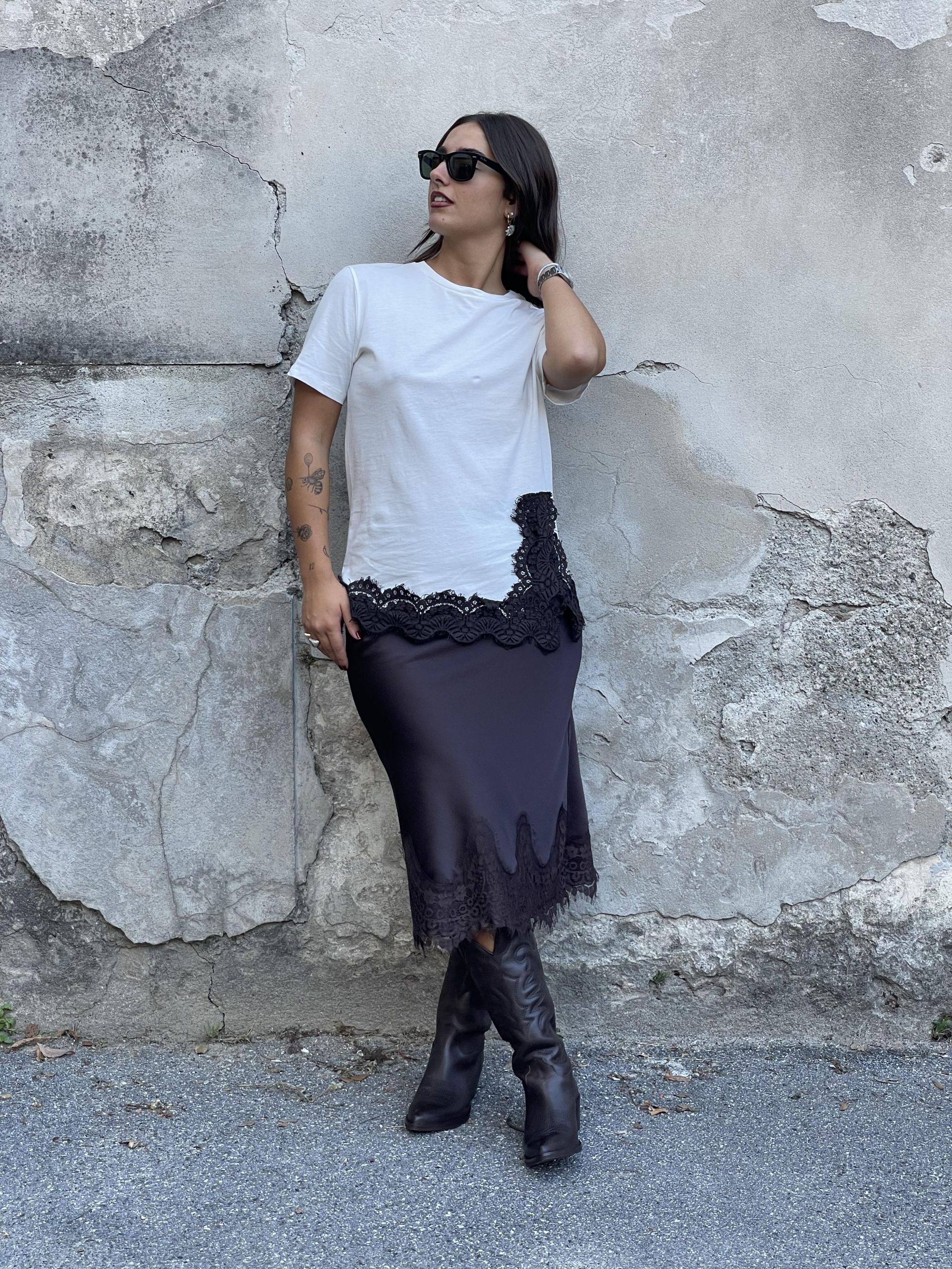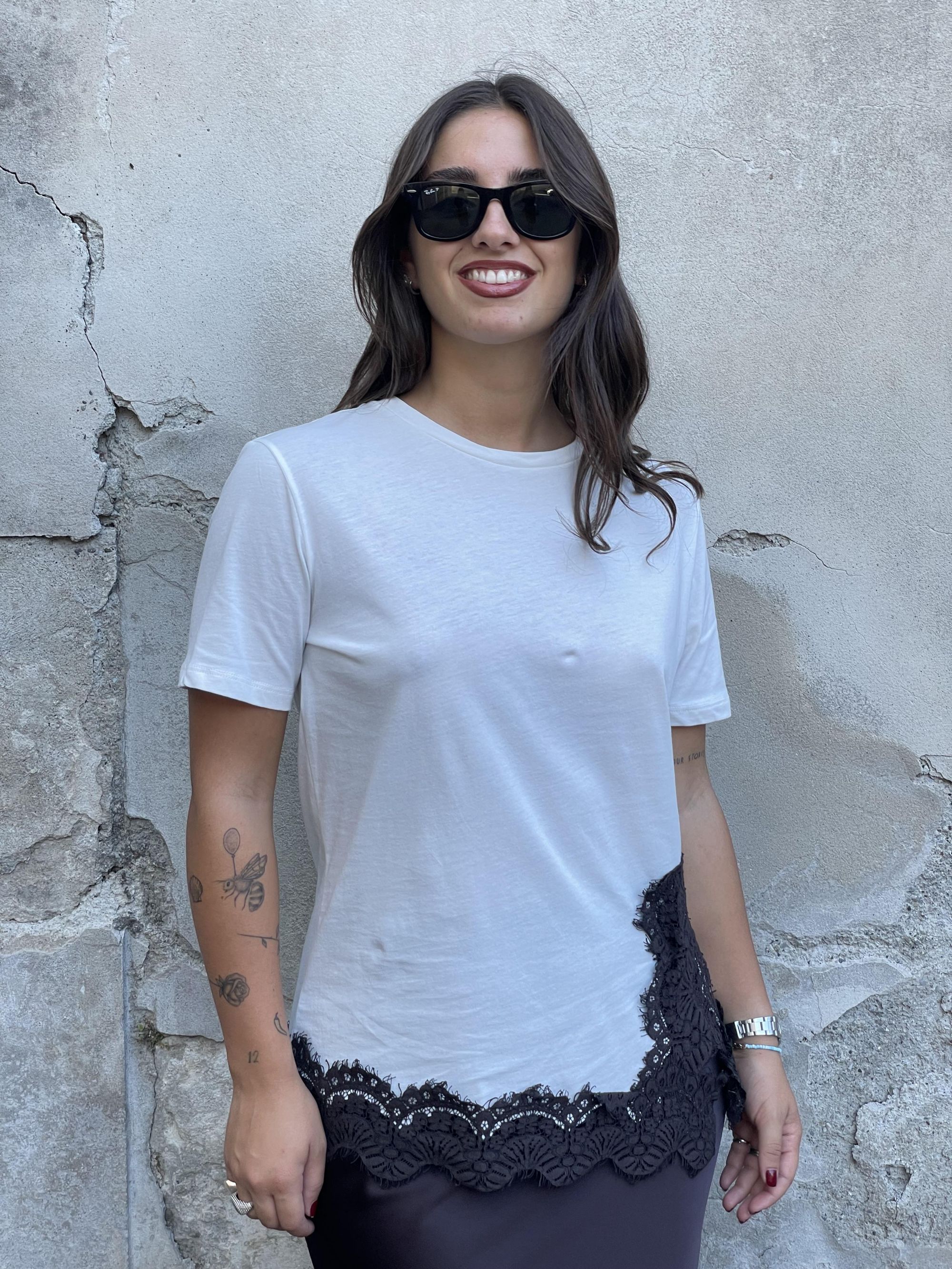 TENSIONE IN - T-SHIRT BIANCA CON PIZZO ART. 37637