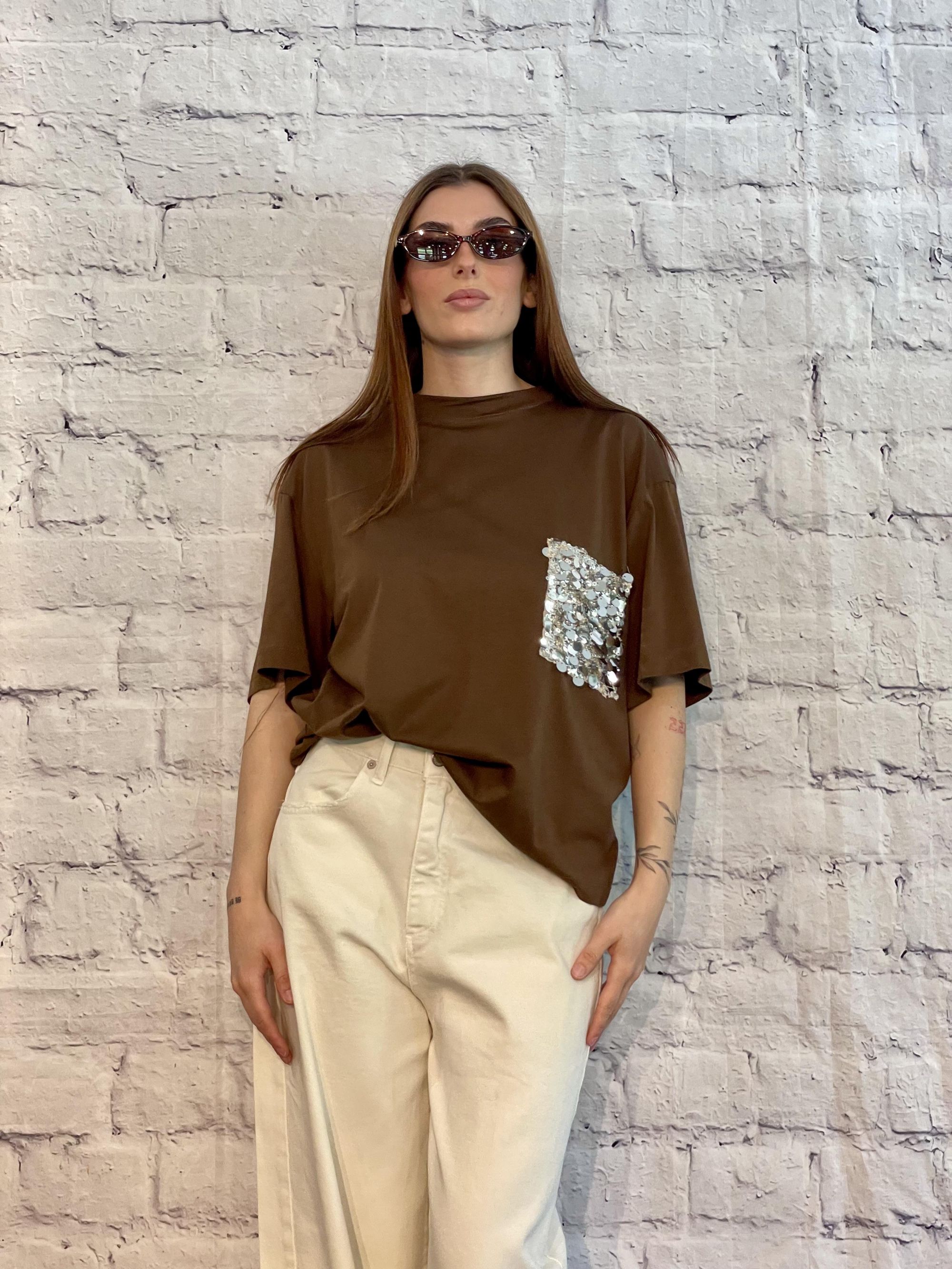 TENSIONE IN - T-SHIRT MORO CON TASCHINO DI PAILLETTES ART. PE260112