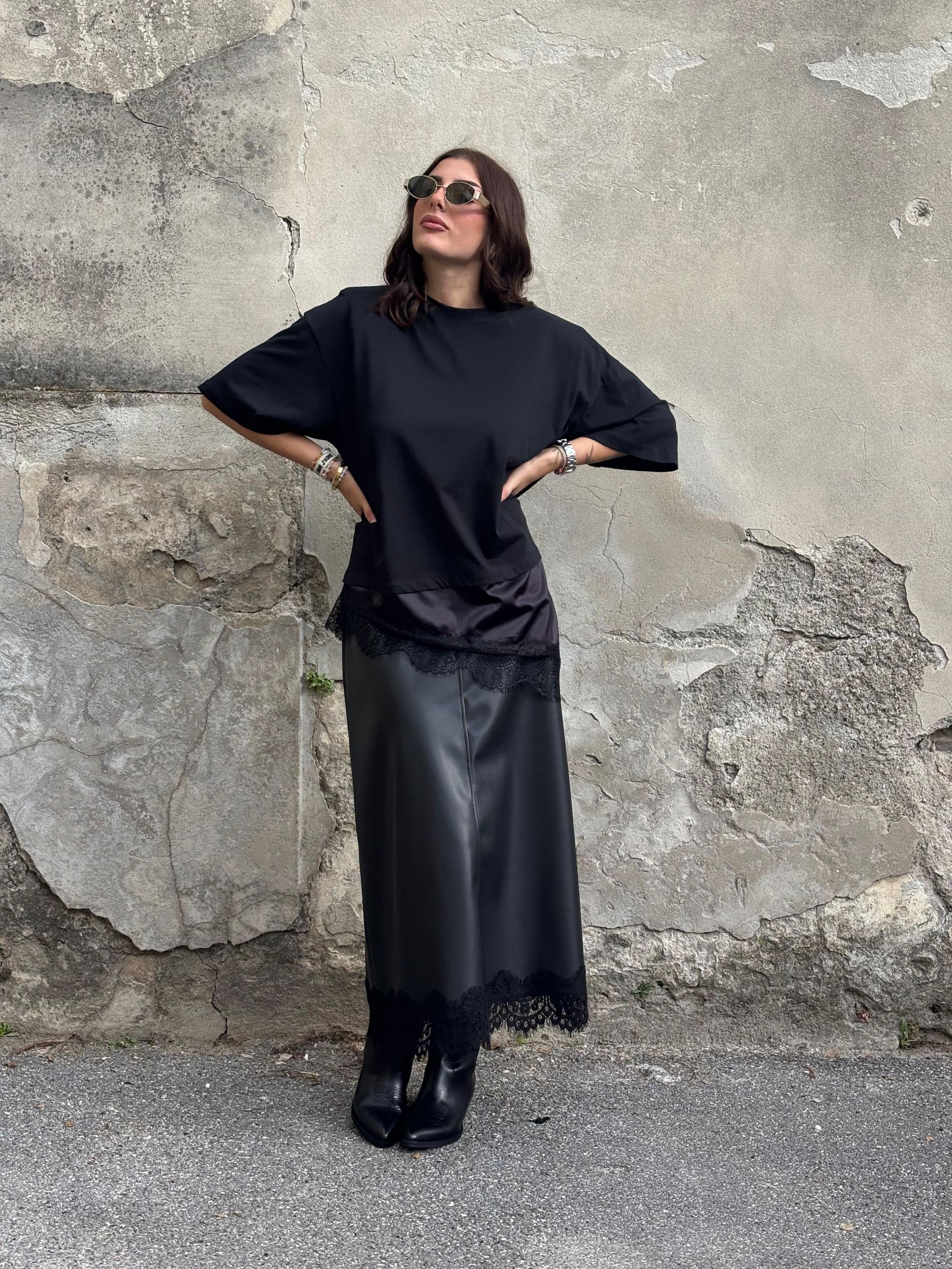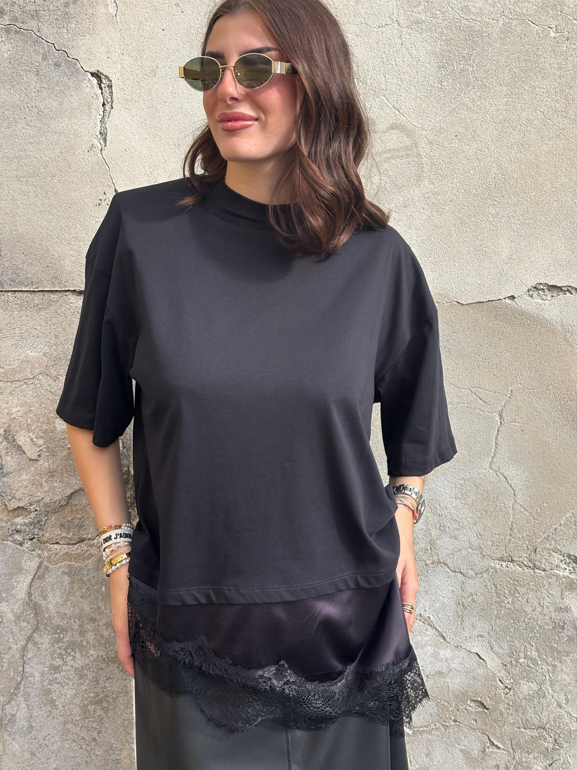 TENSIONE IN - T-SHIRT NERO BORDATA IN PIZZO ART. 26M1026