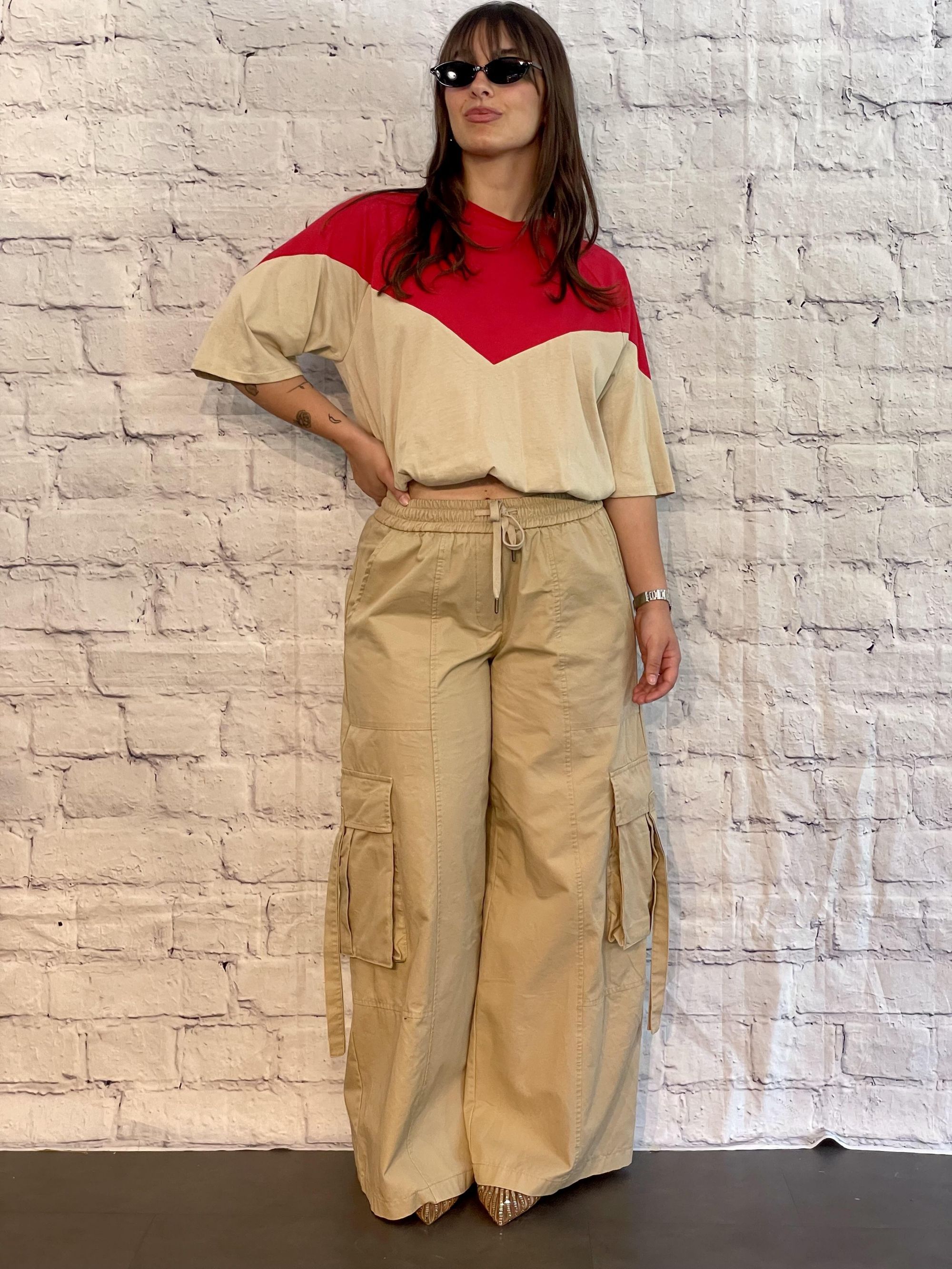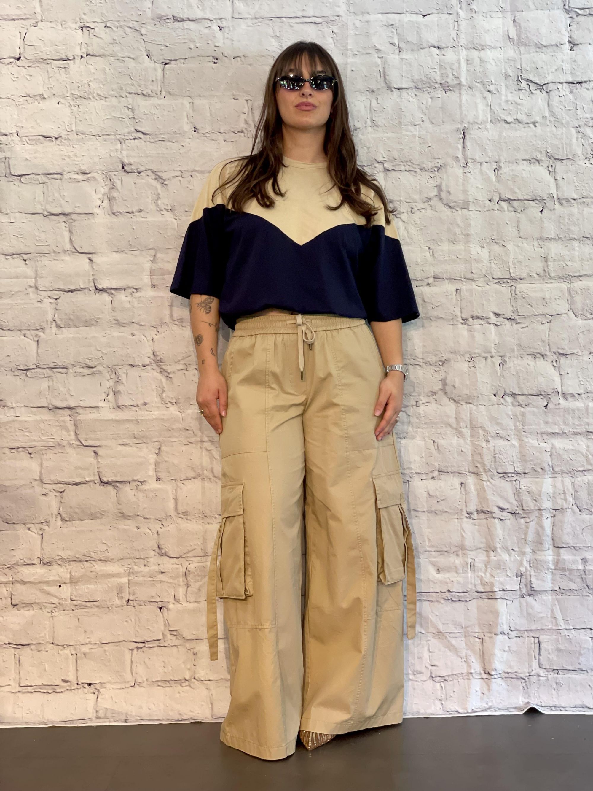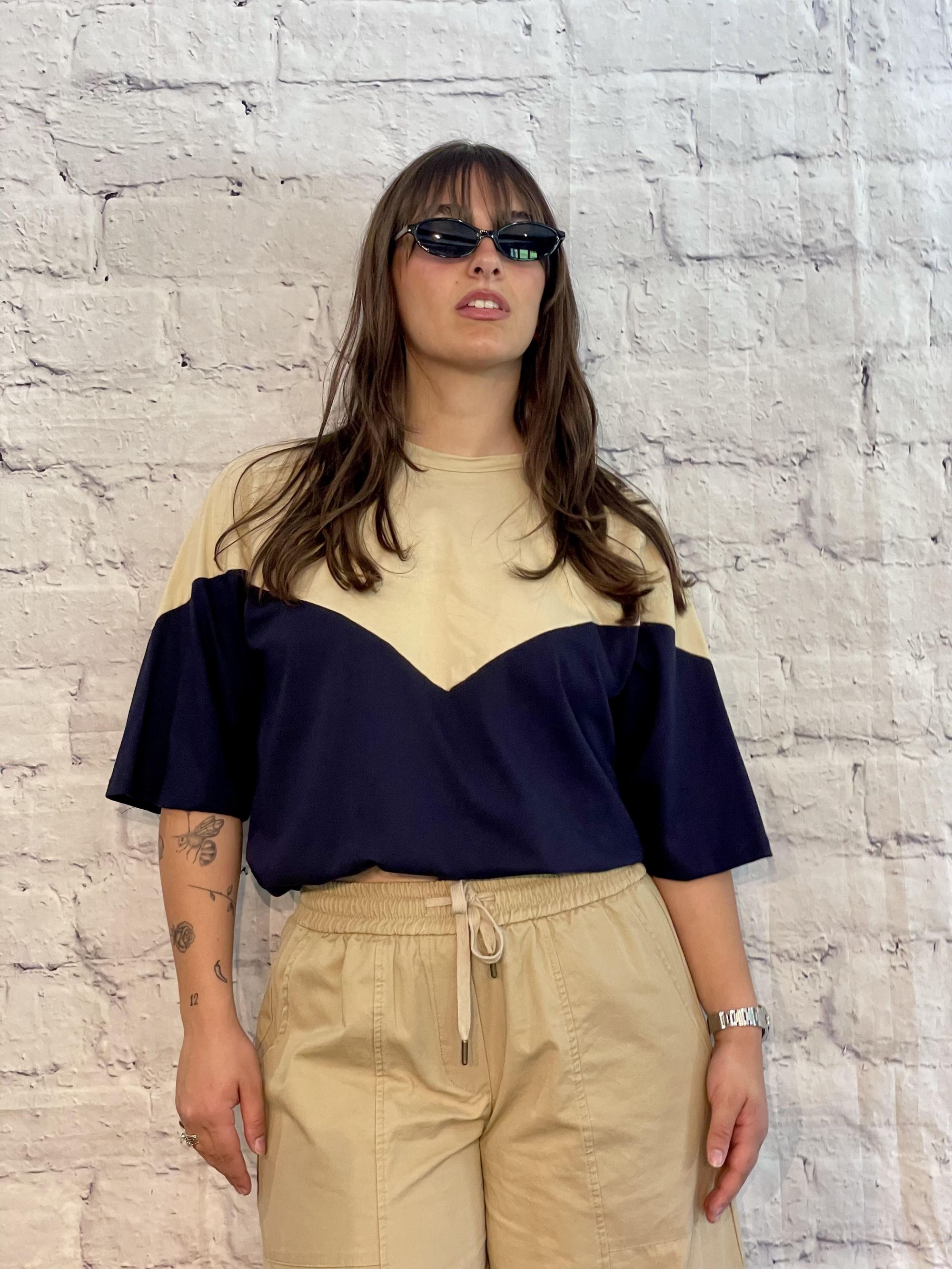 TENSIONE IN - T-SHIRT PARICOLLO BICOLORE SABBIA/BLU ART. 39070