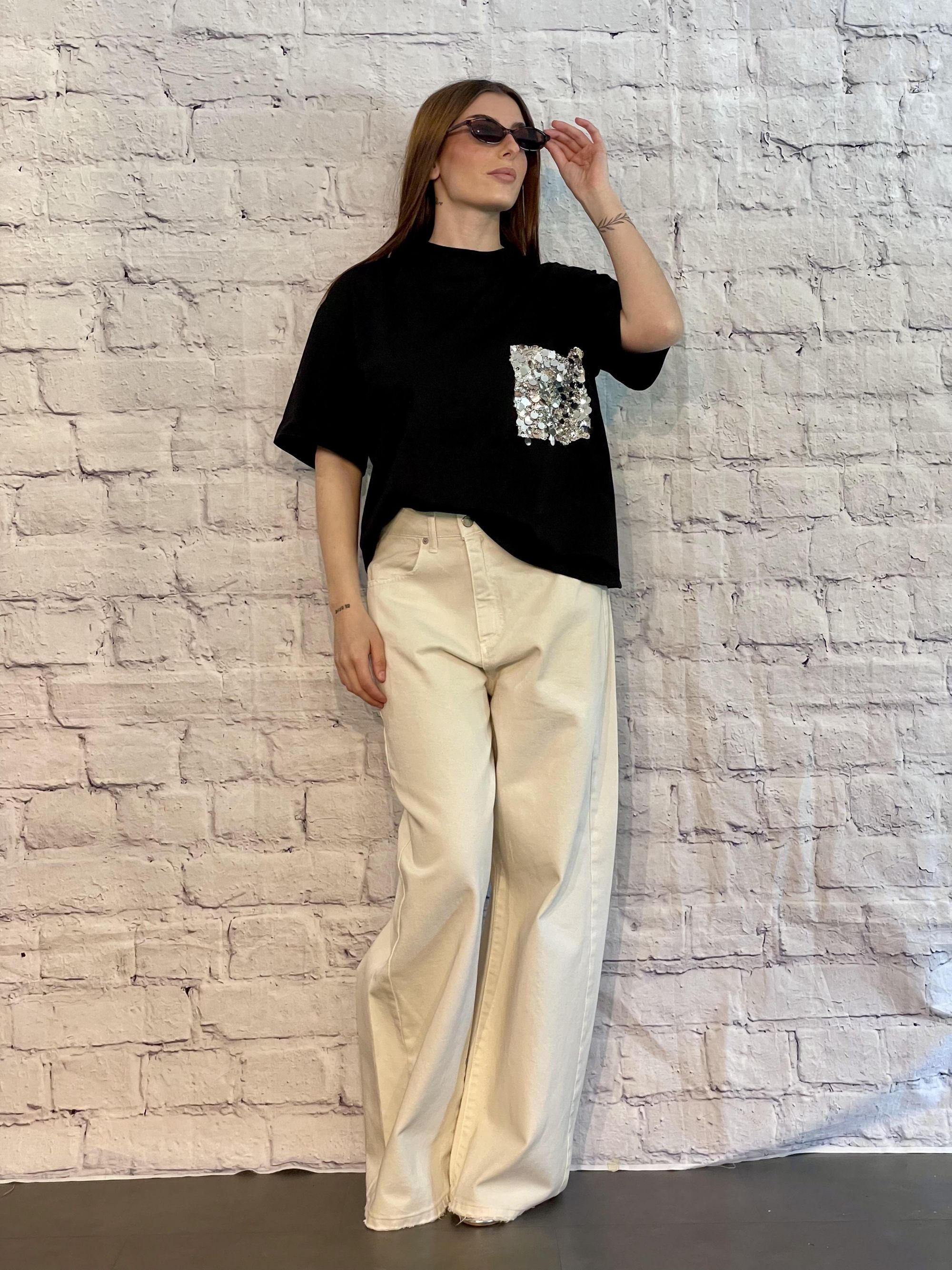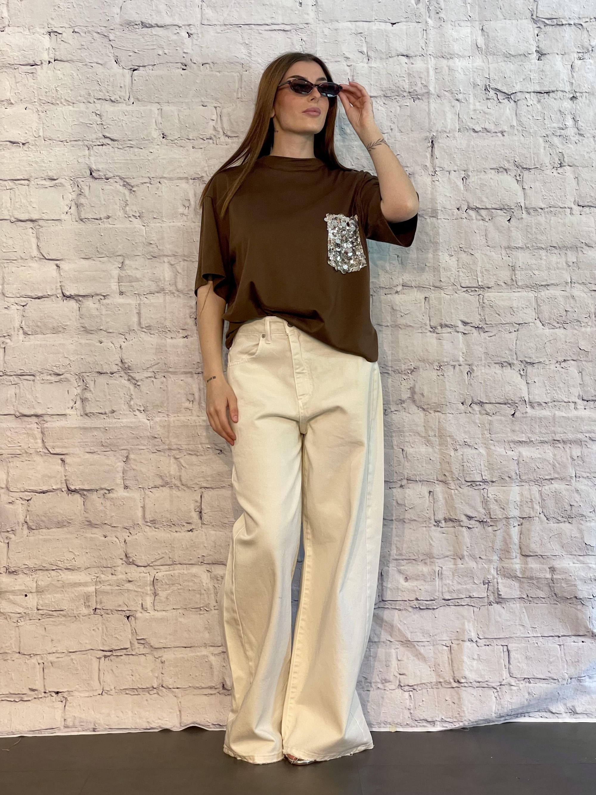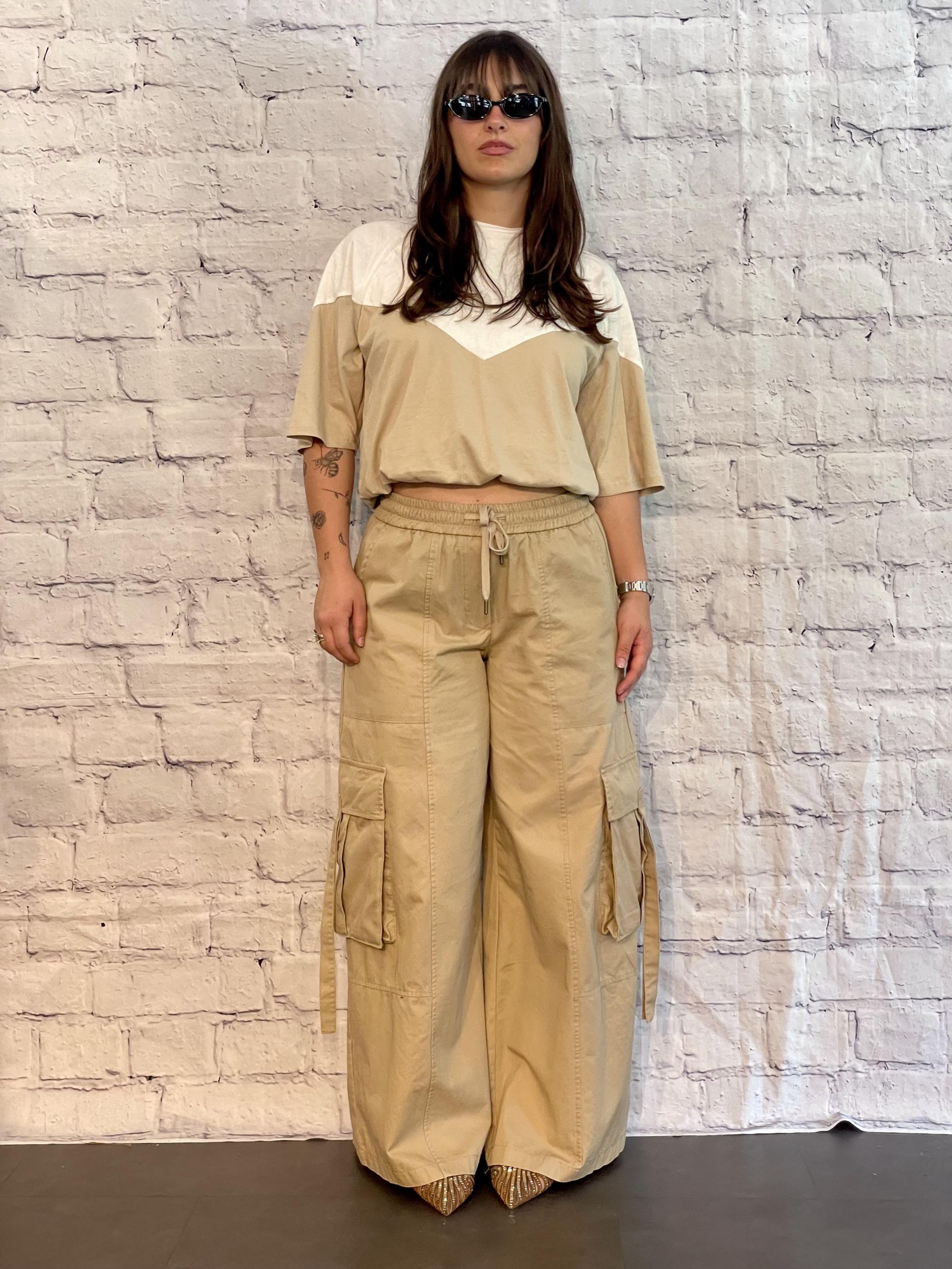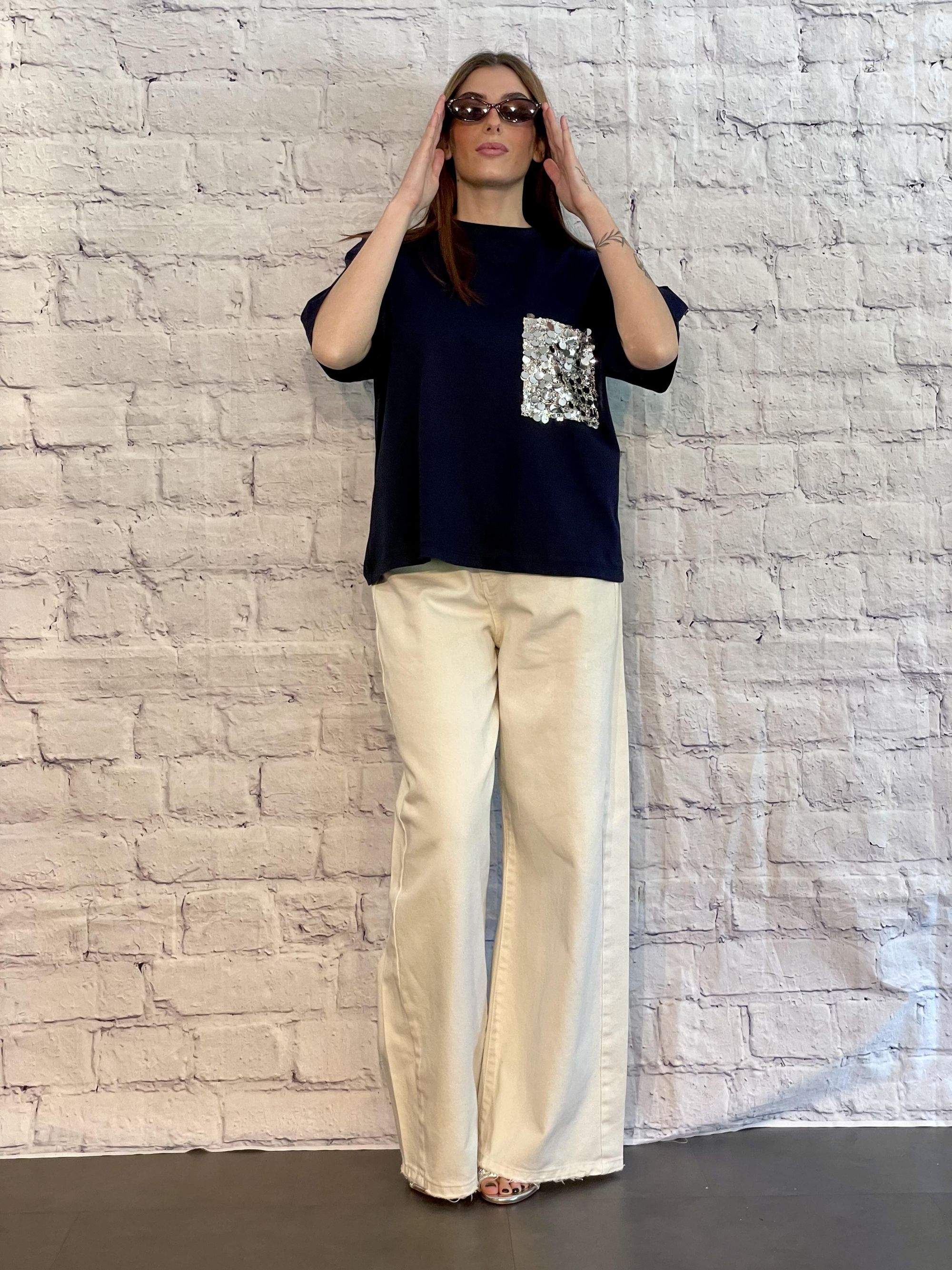 TENSIONE IN - T-SHIRT PARICOLLO BICOLORE SABBIA/BLU ART. 39070