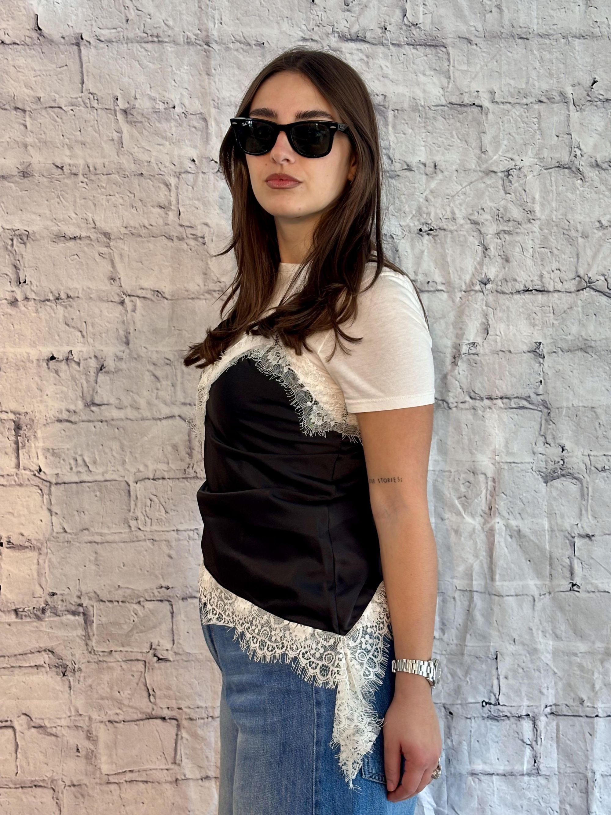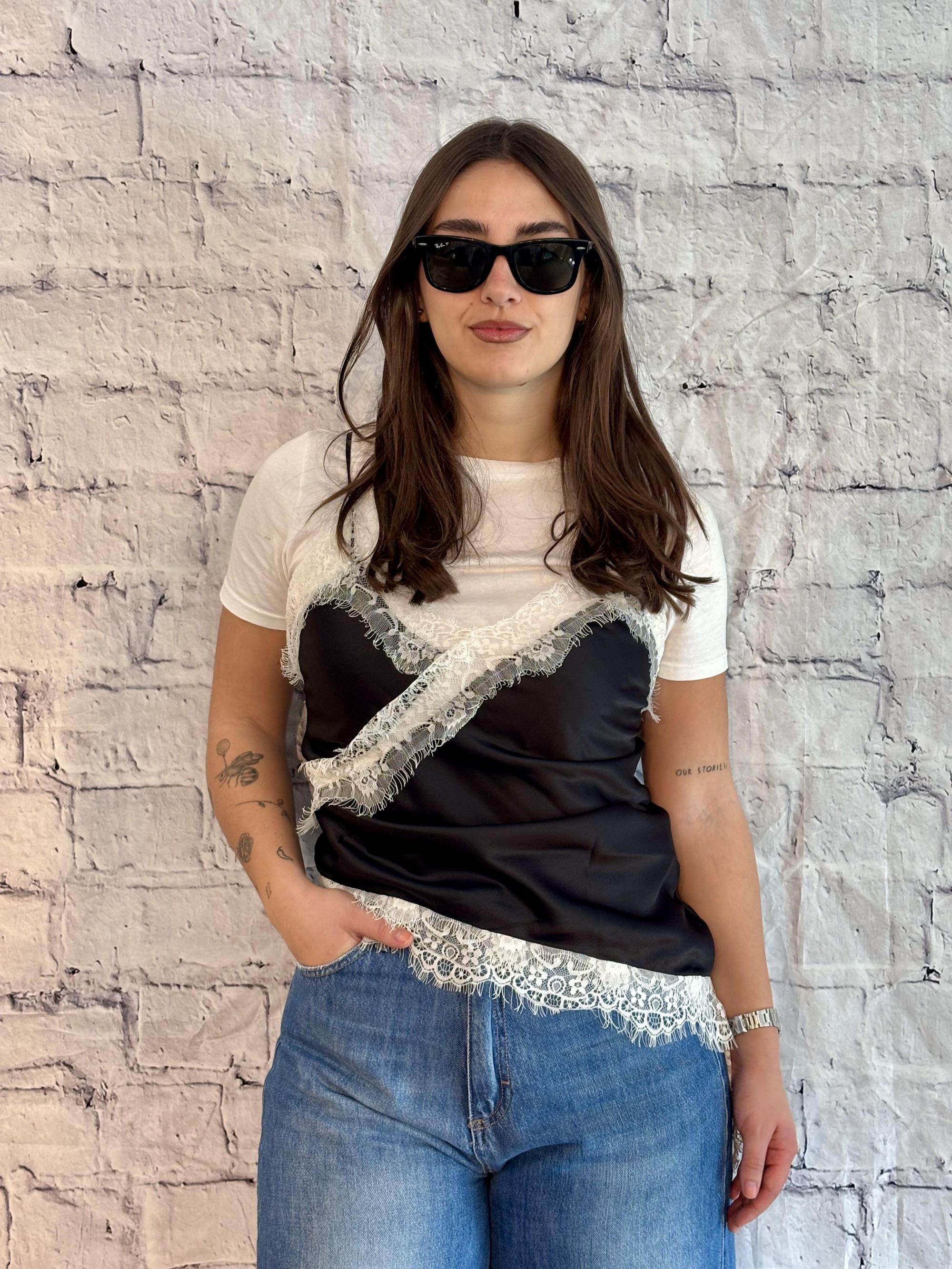 SUSY MIX - TOP NERO CON PIZZO ART. C81635PIZZO