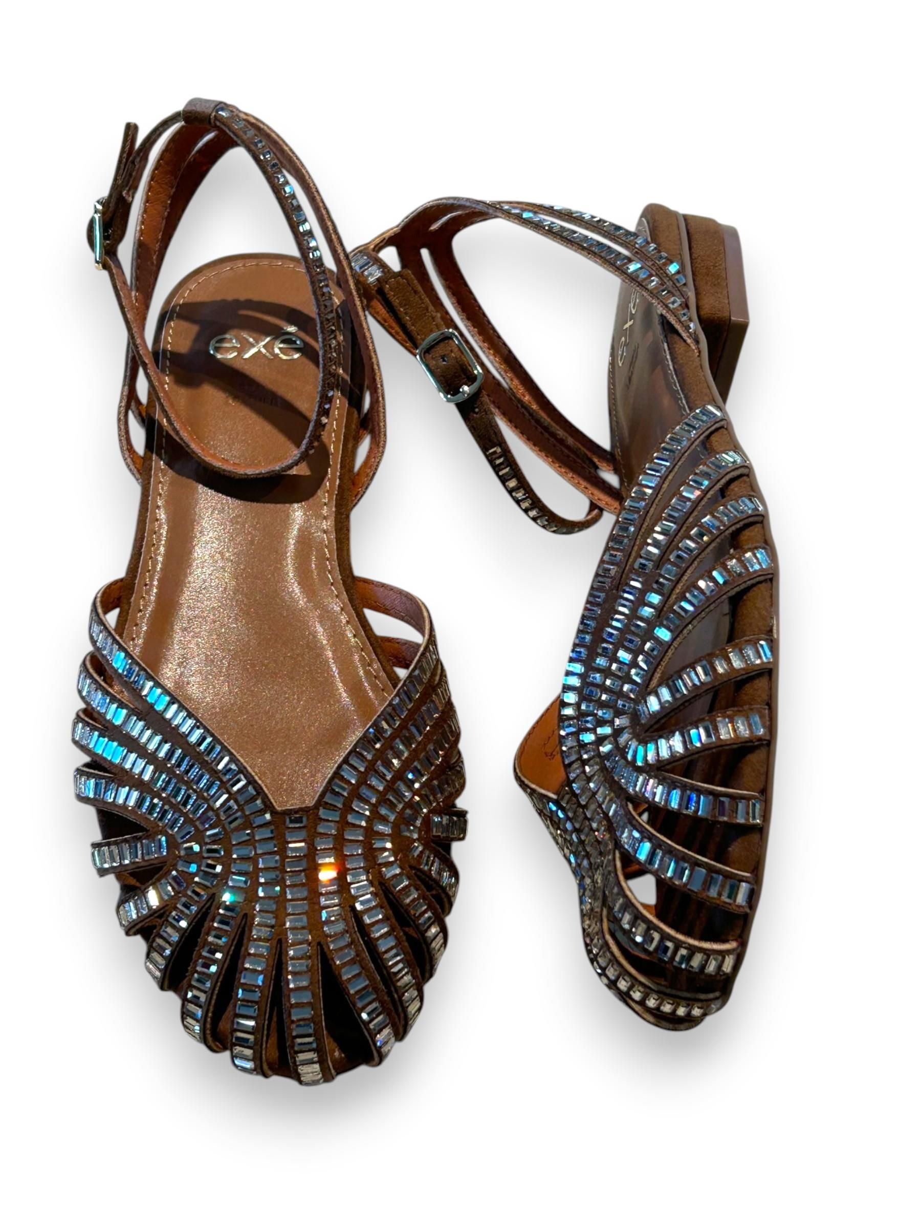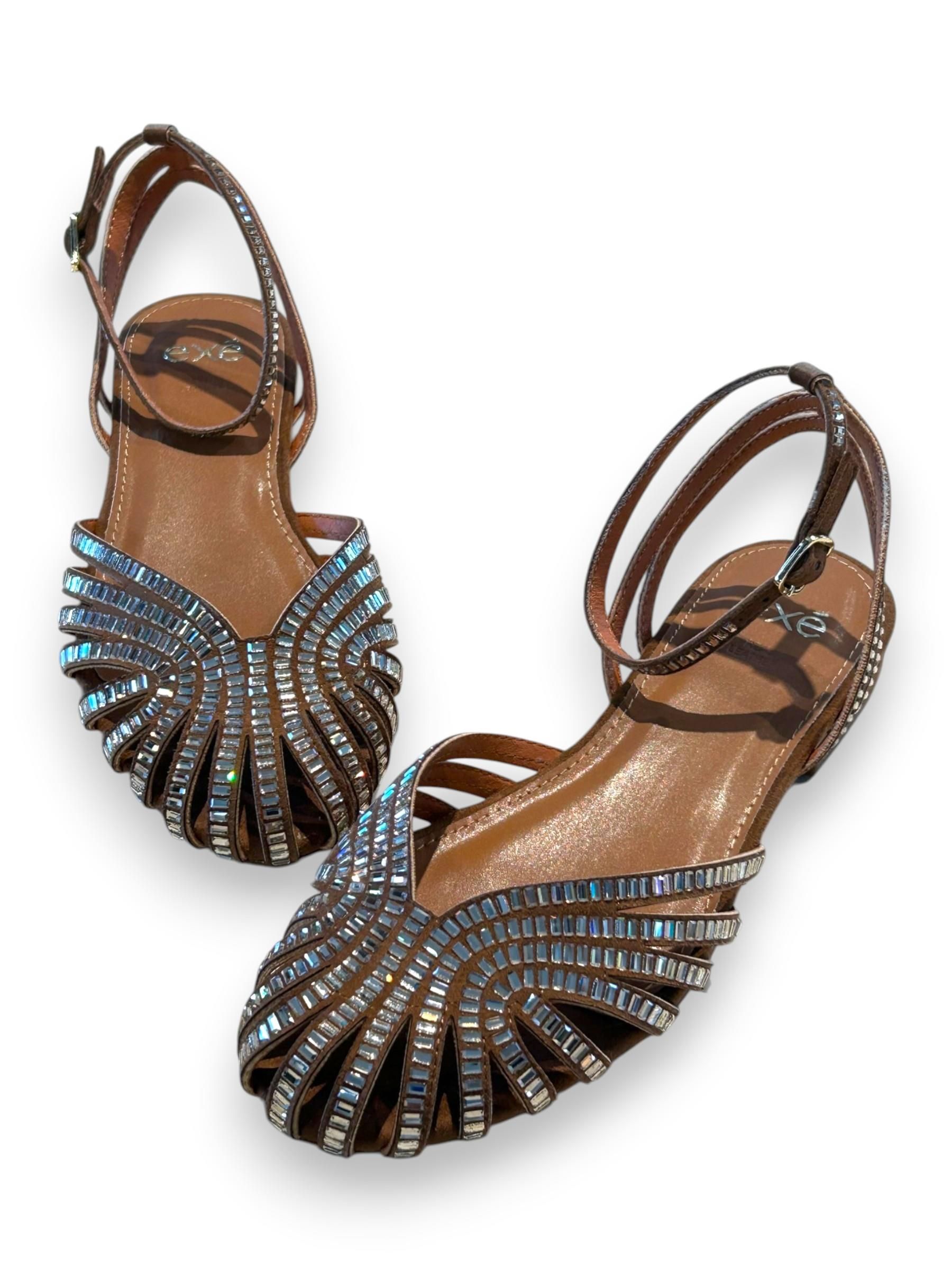 EXE - BALLERINE A GABBIA COLOR CUOIO CON BAGUETTE DI STRASS ART.307