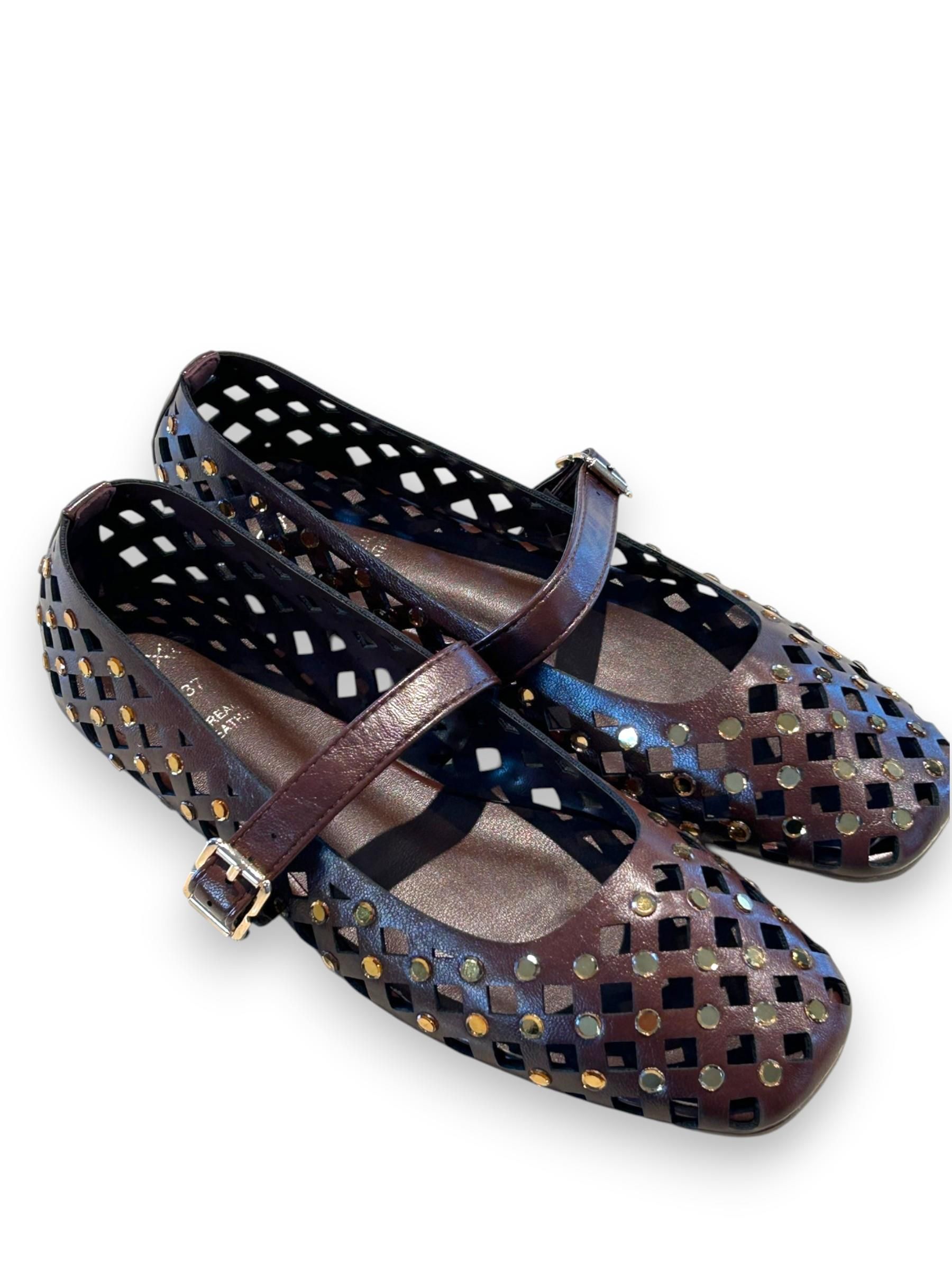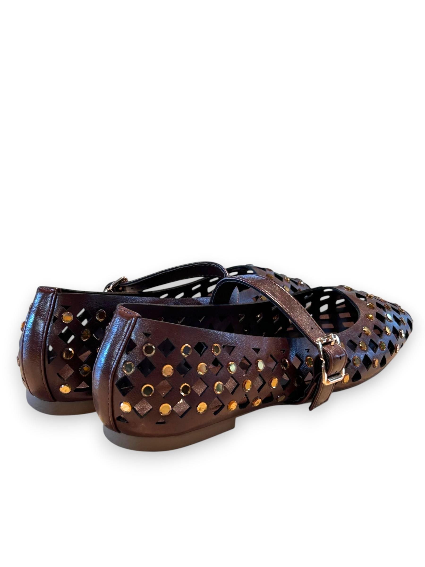 EXE - BALLERINE IN ECOPELLE LASERATA MARRONE CON STRASS ART. 423 2244