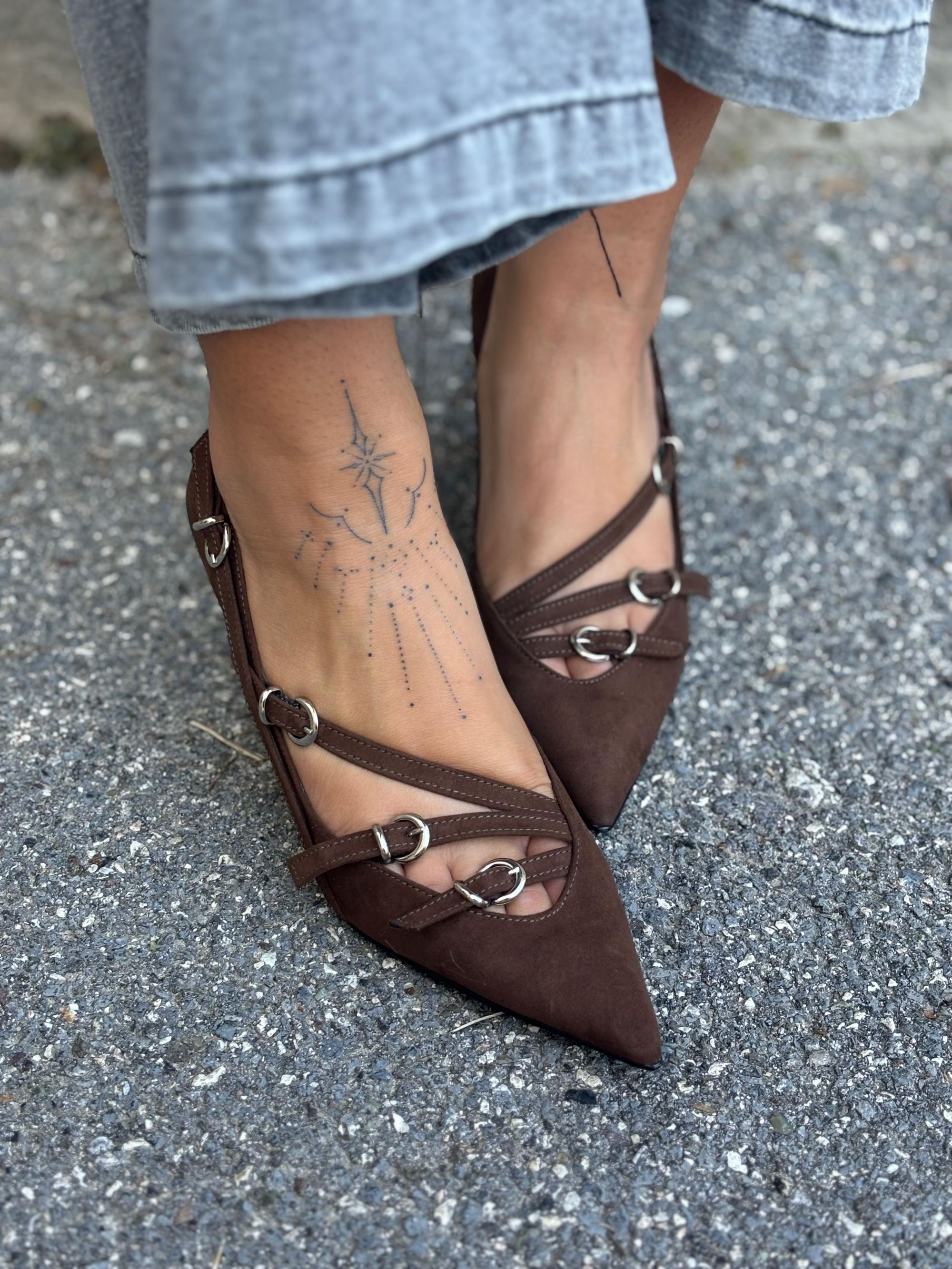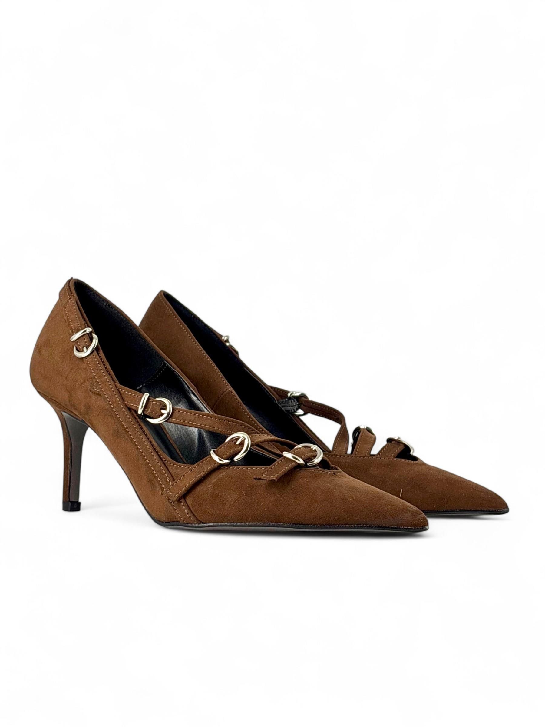 DIVINE FOLLIE - DECOLLETE' MARRONE CON FIBBIE ART. 1622SG
