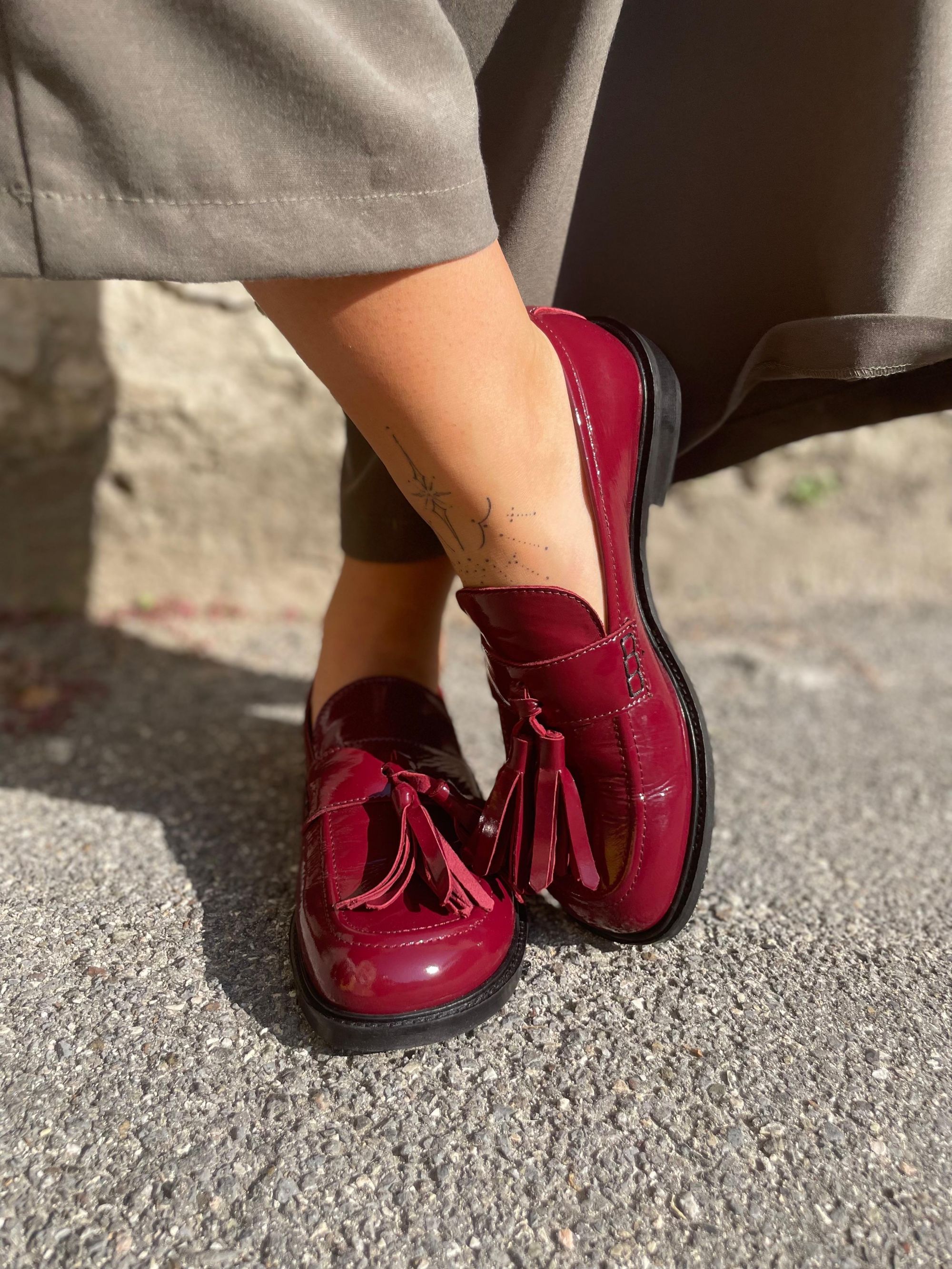 CUIR NOIR - MOCASSINI IN VERNICE BORDEAUX CON NAPPE ART. LORNA01