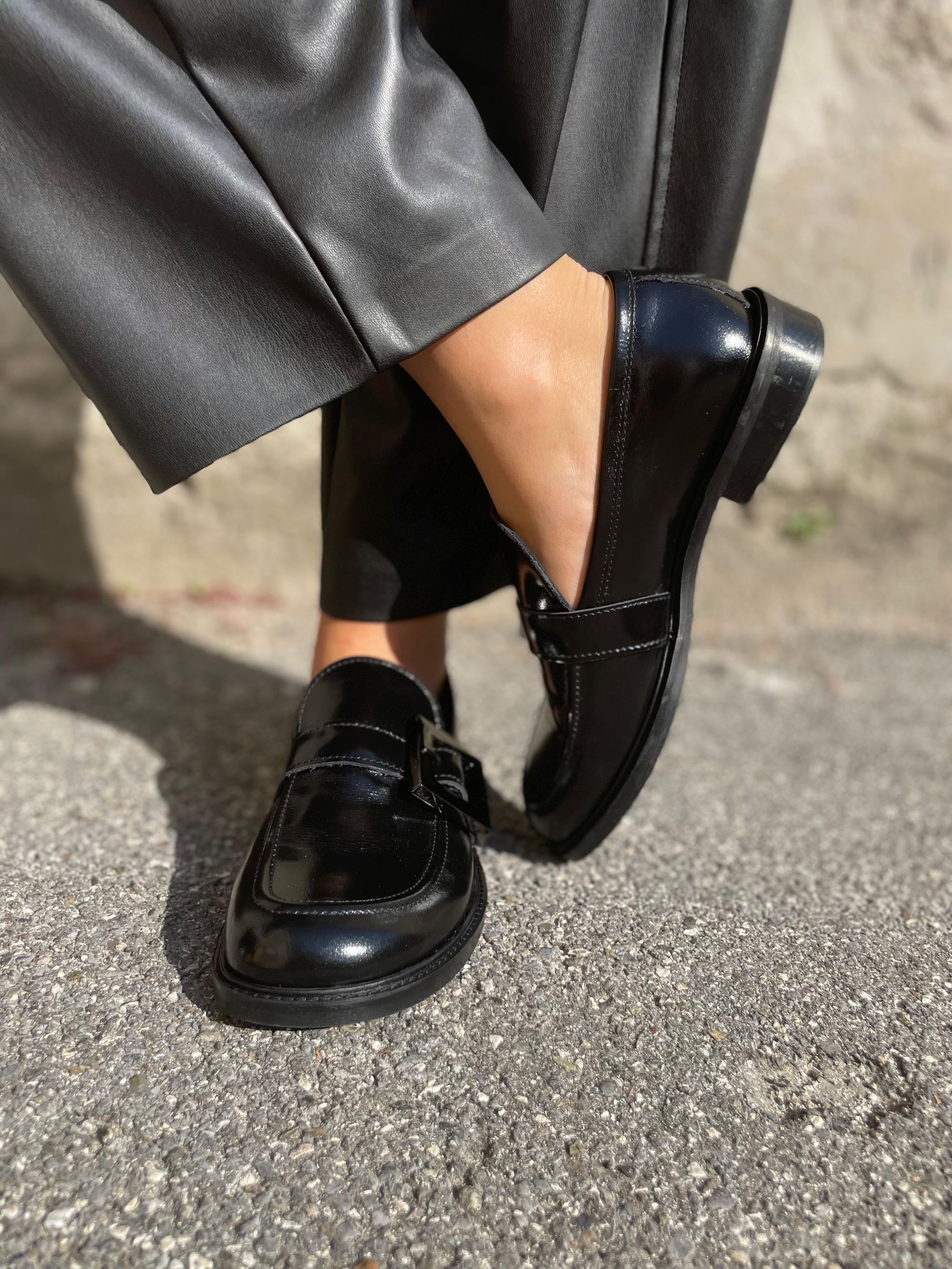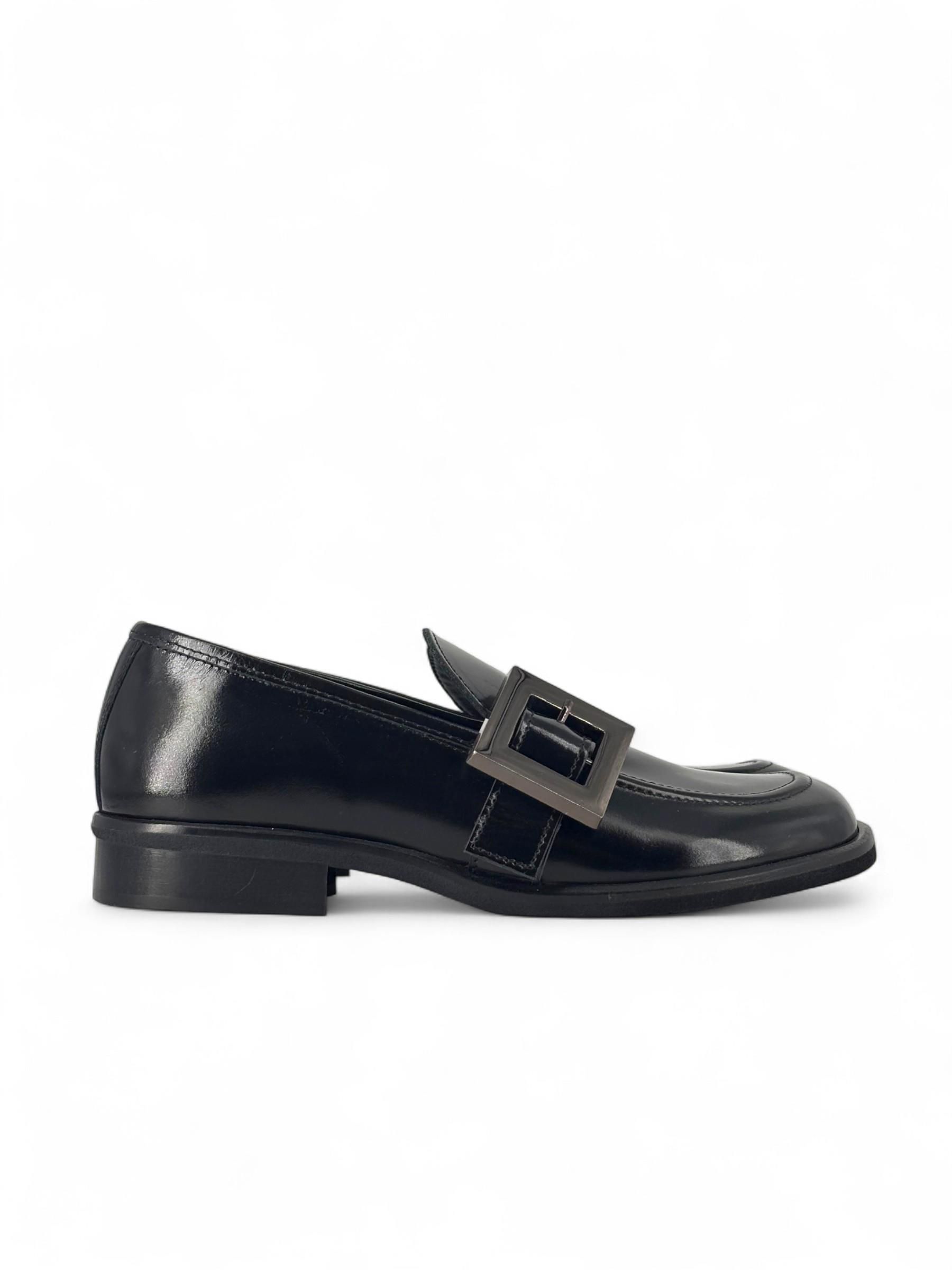 CUIR NOIR - MOCASSINI IN VERNICE NERA CON FIBBIA ART. LORNA19