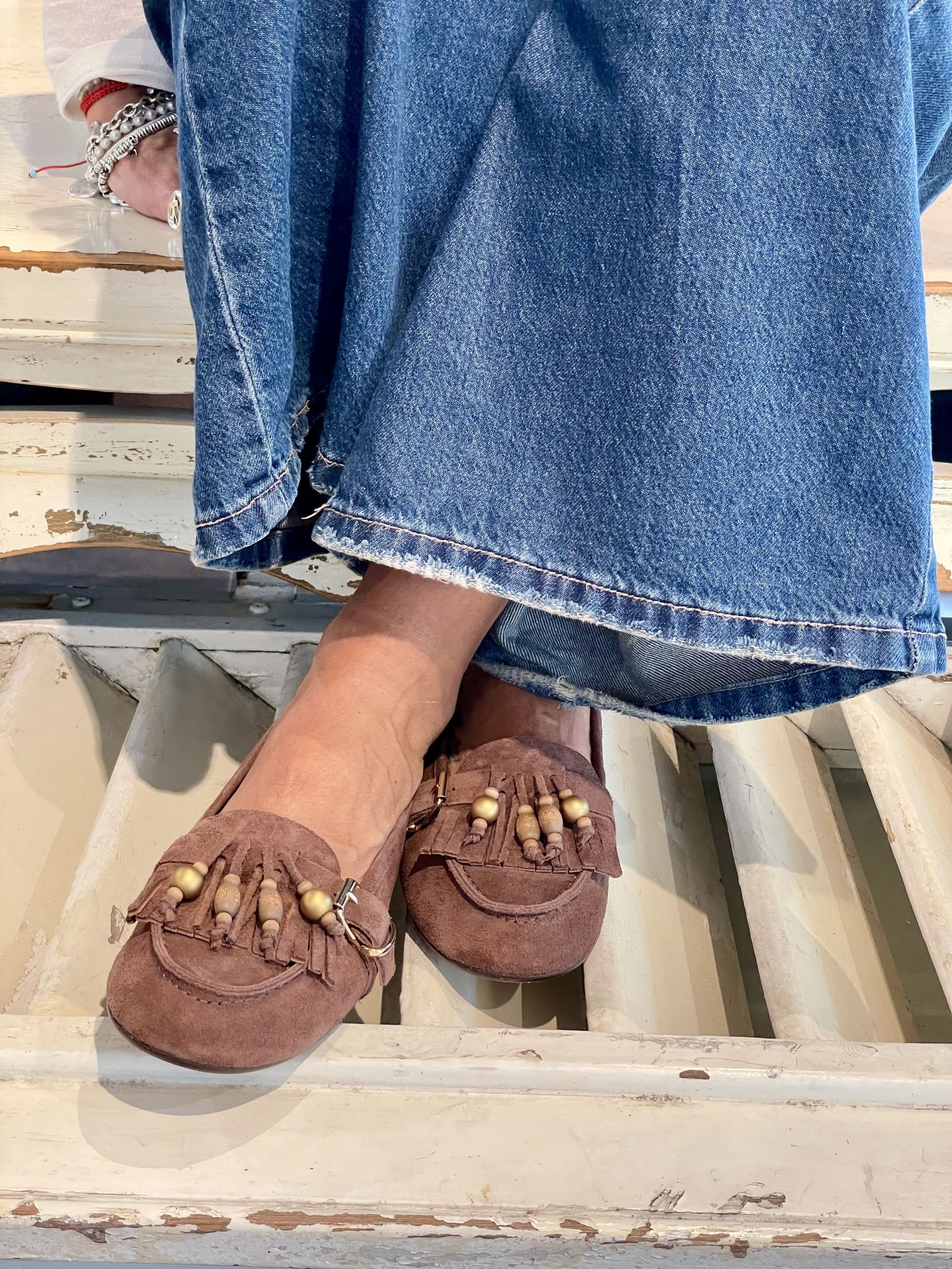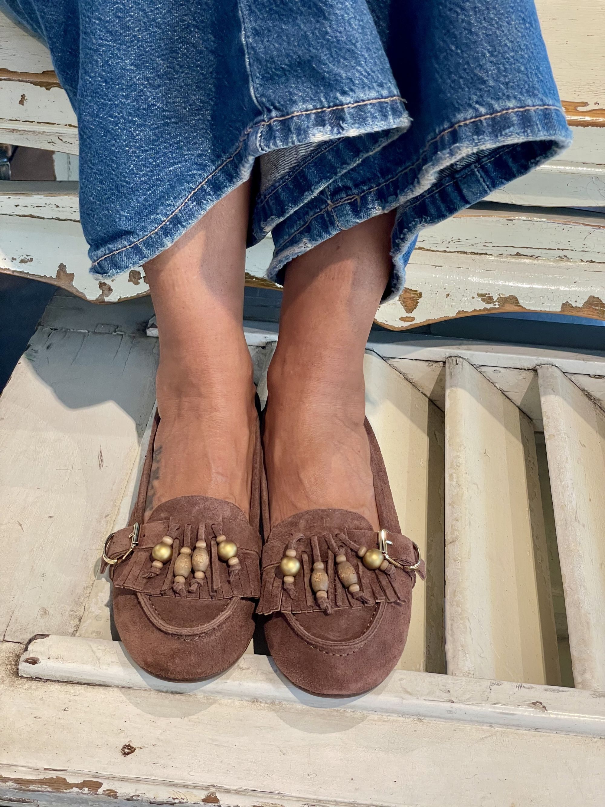 RANYE - MOCASSINO IN CAMOSCIO CON FRANGE ART. INDIA