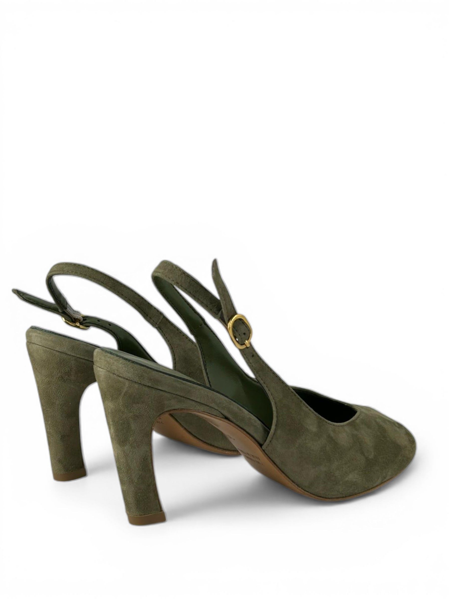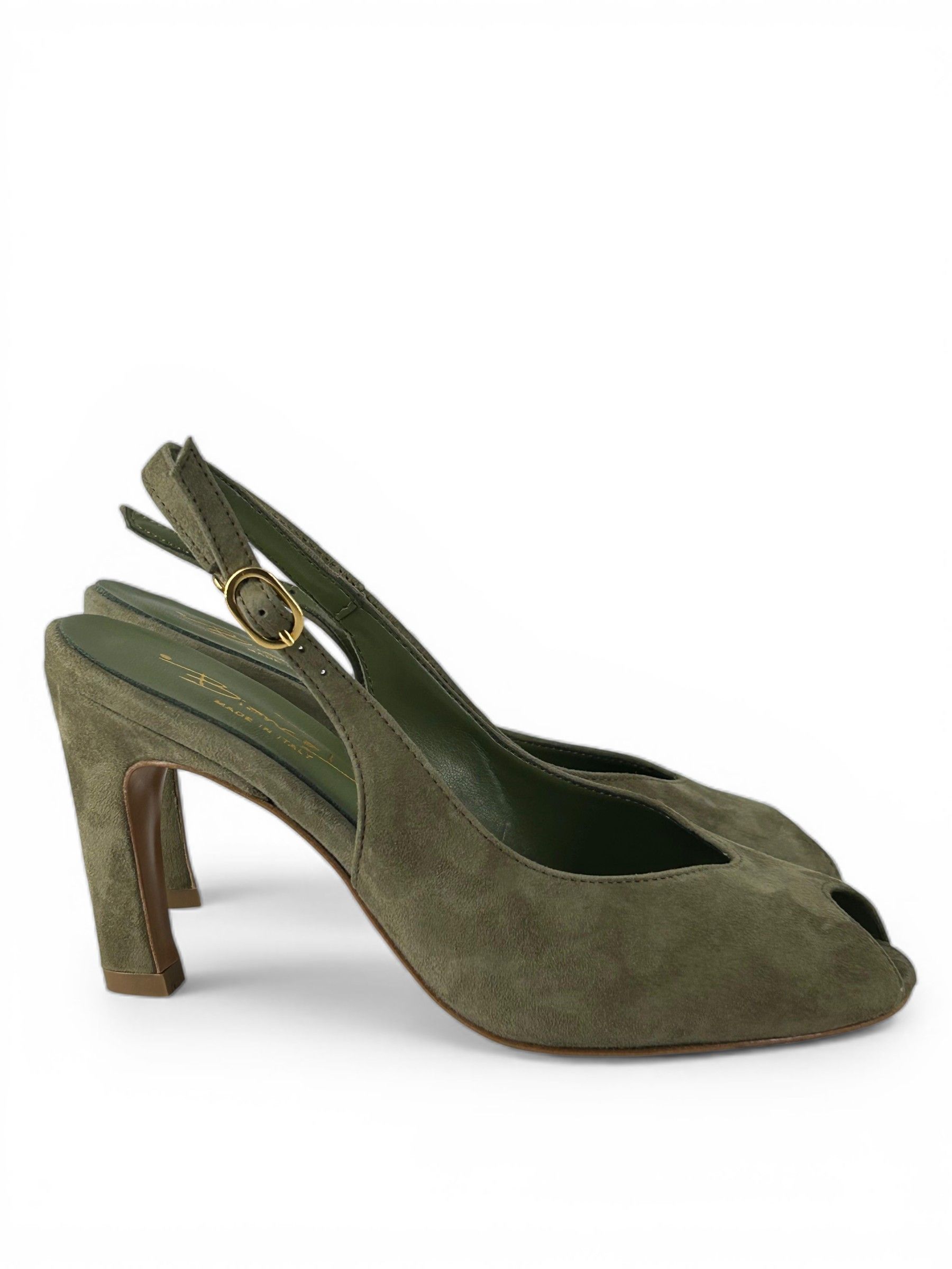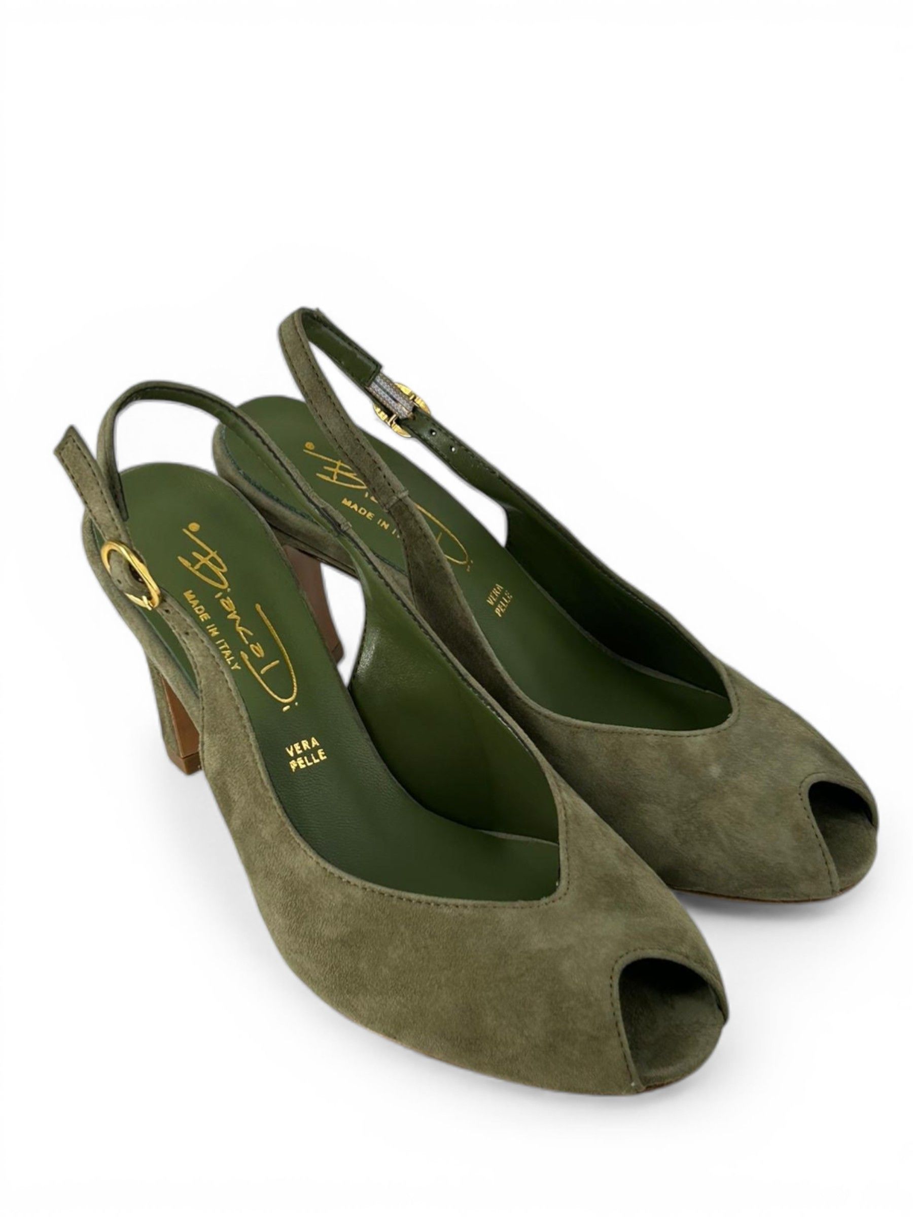 BIANCA DI - SANDALI SLINGBACK IN CAMOSCIO VERDE CON TACCO ALTO ART. 1482