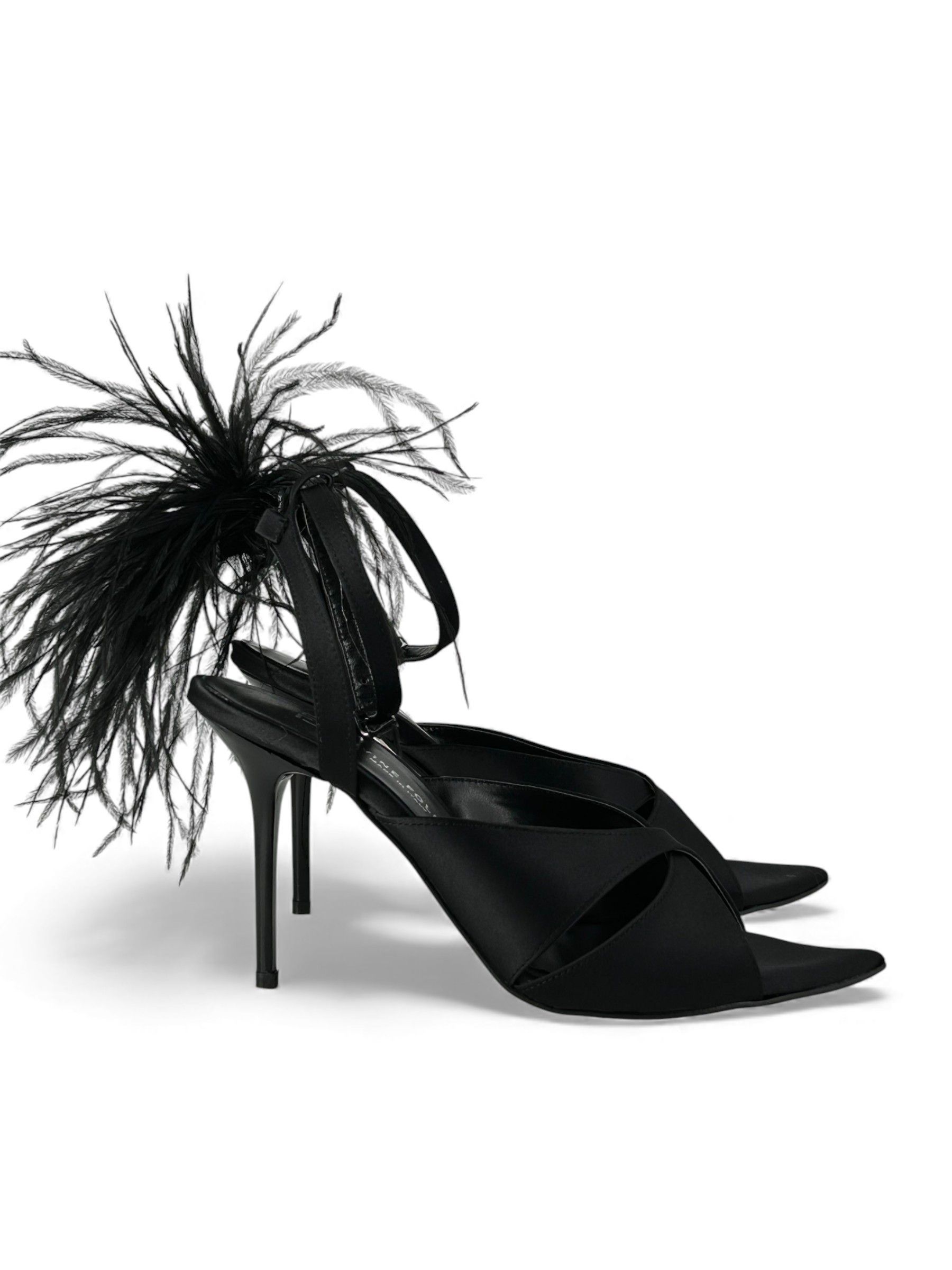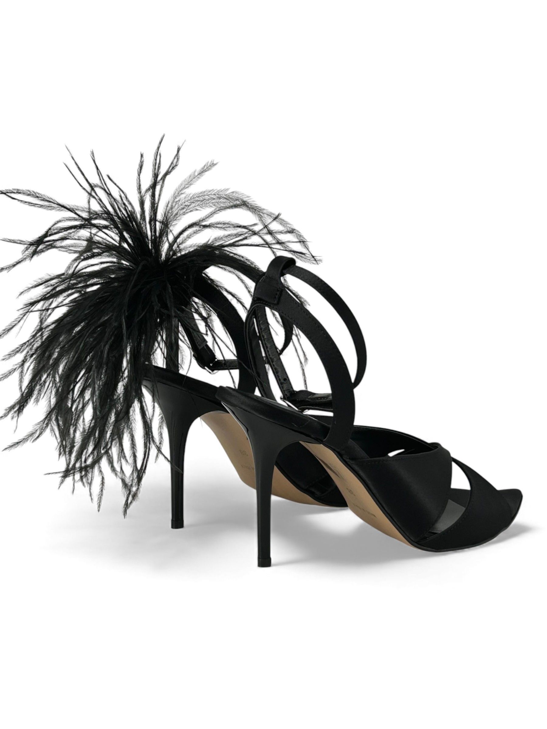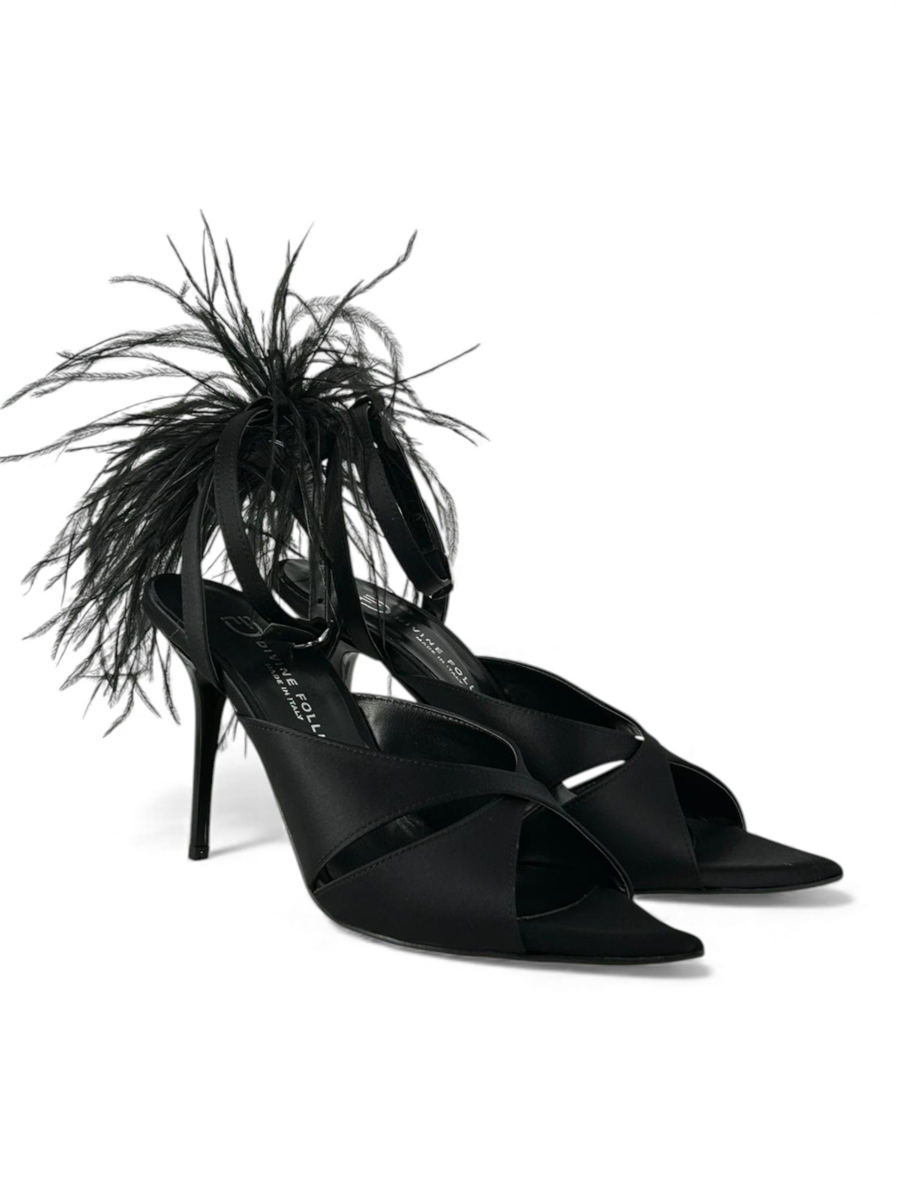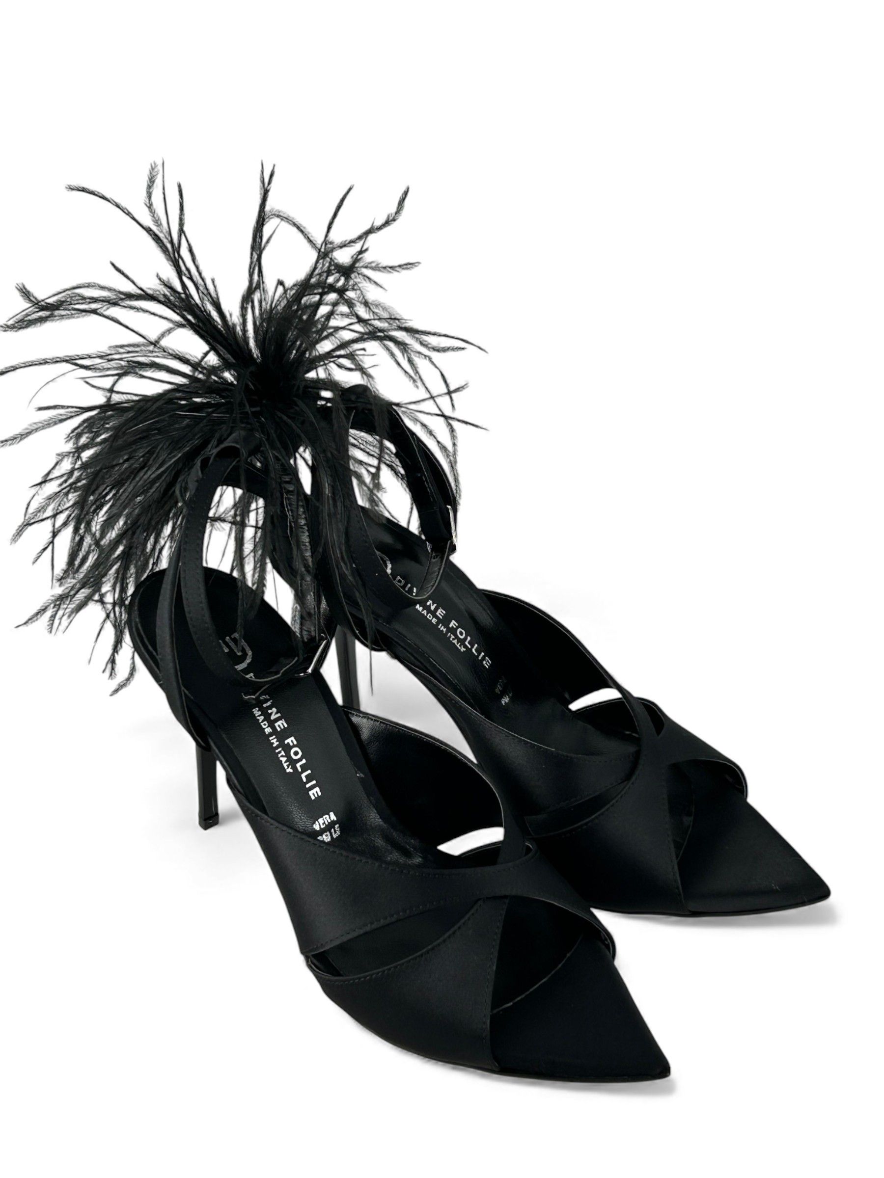 DIVINE FOLLIE - SANDALI IN RASO NERO CON PIUME ART. 481