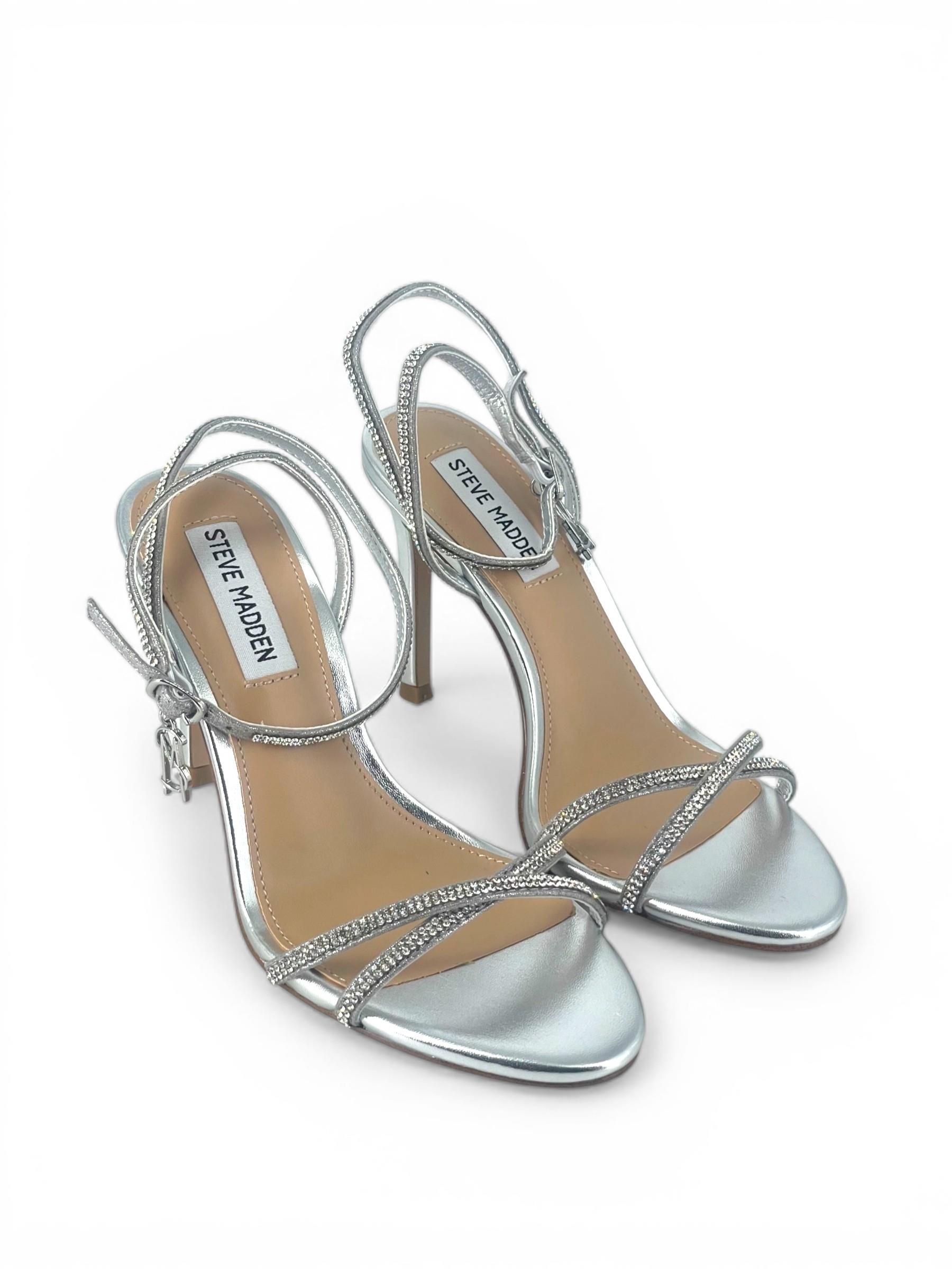 STEVE MADDEN - SANDALI ARGENTO CON STRASS E TACCO ALTO ART. JYPSEY