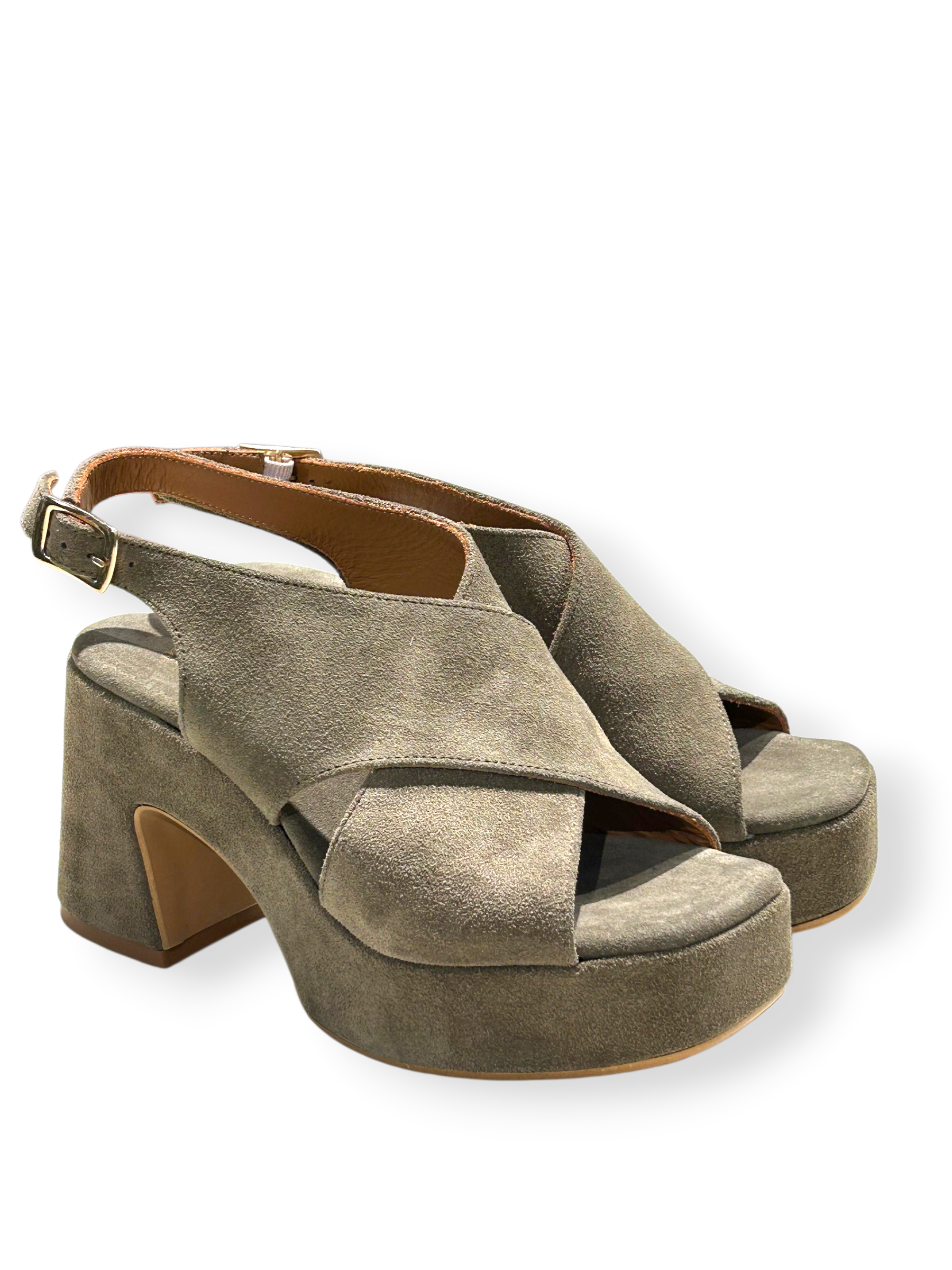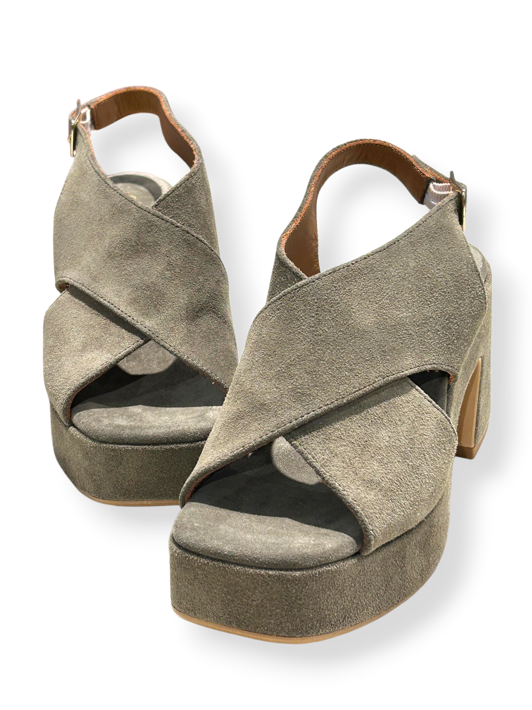 STRINGART - SANDALI IN CAMOSCIO VERDE CON FASCE INCROCIATE ART. 20011