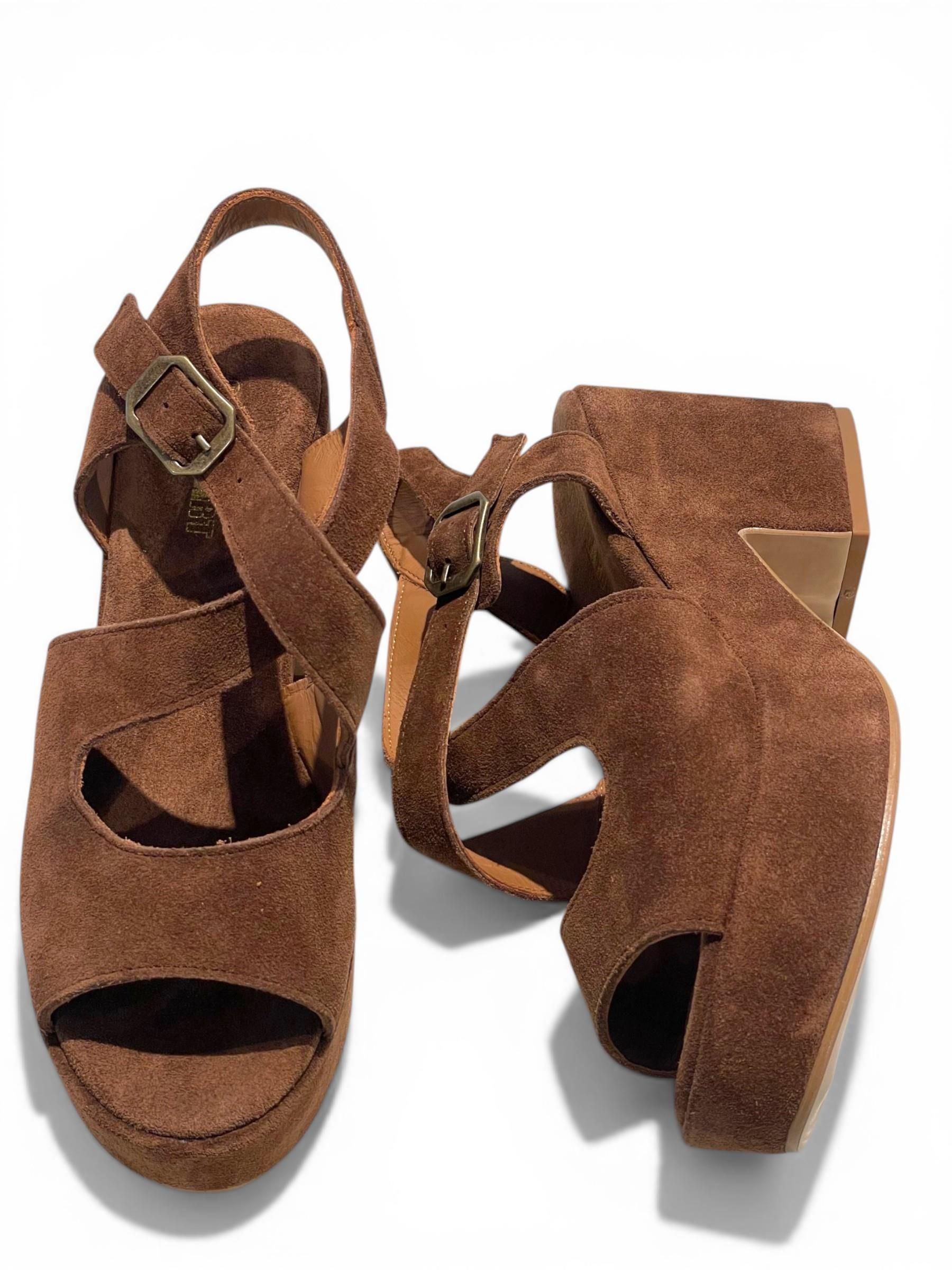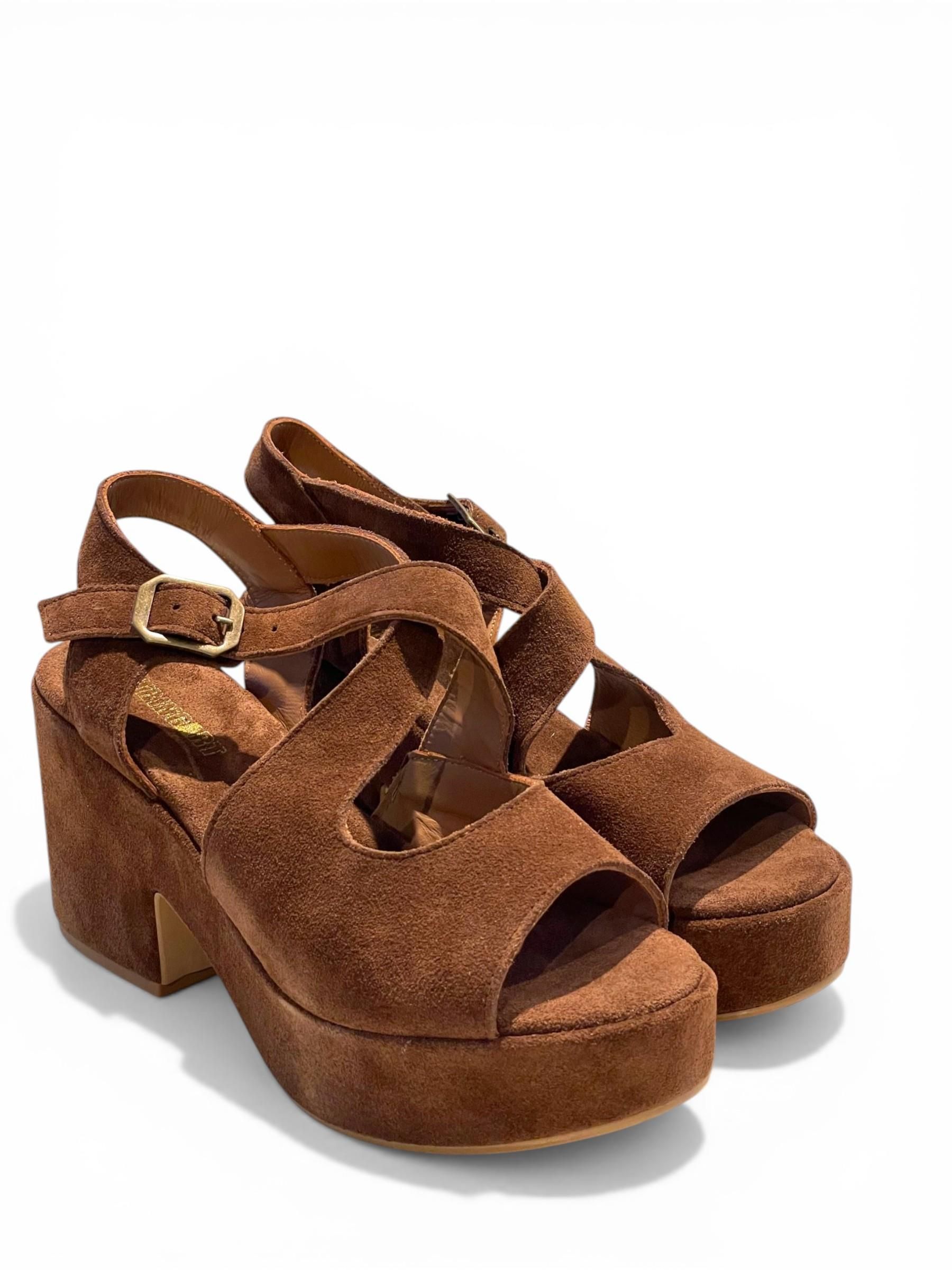 STRINGART - SANDALI ZEPPA IN CAMOSCIO MARRONE ART. 1504