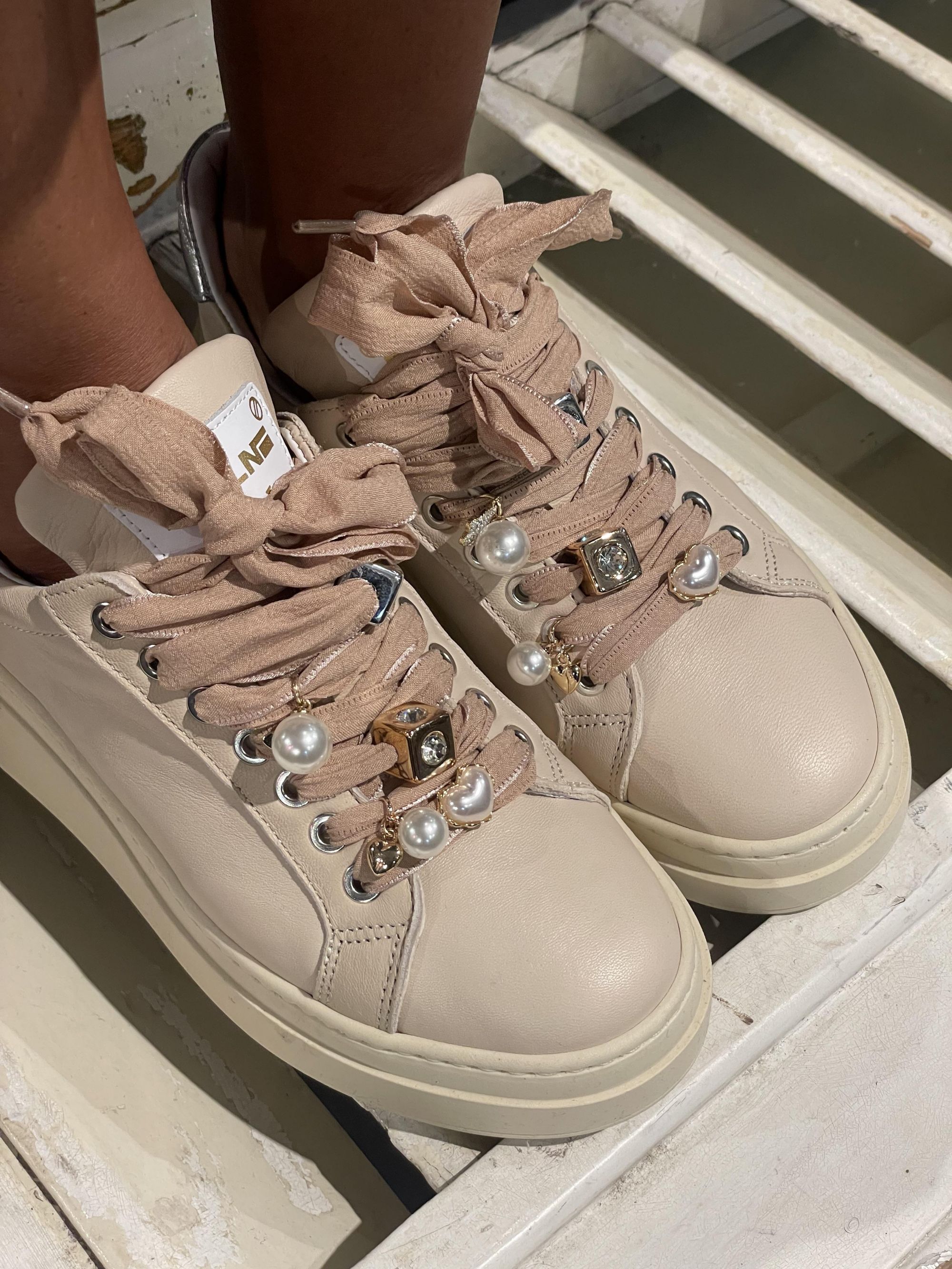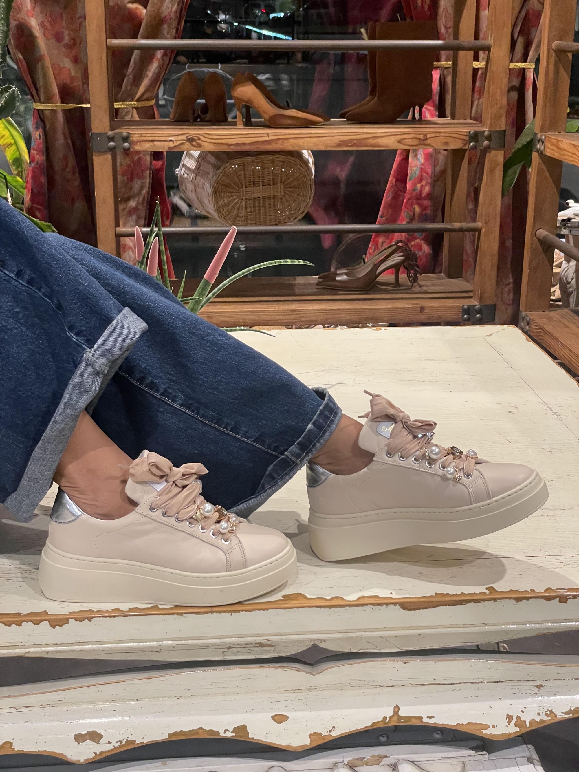 MELINE - SNEAKERS IN PELLE NUDE CON ACCESSORI GIOIELLO ART. 665ACCLO