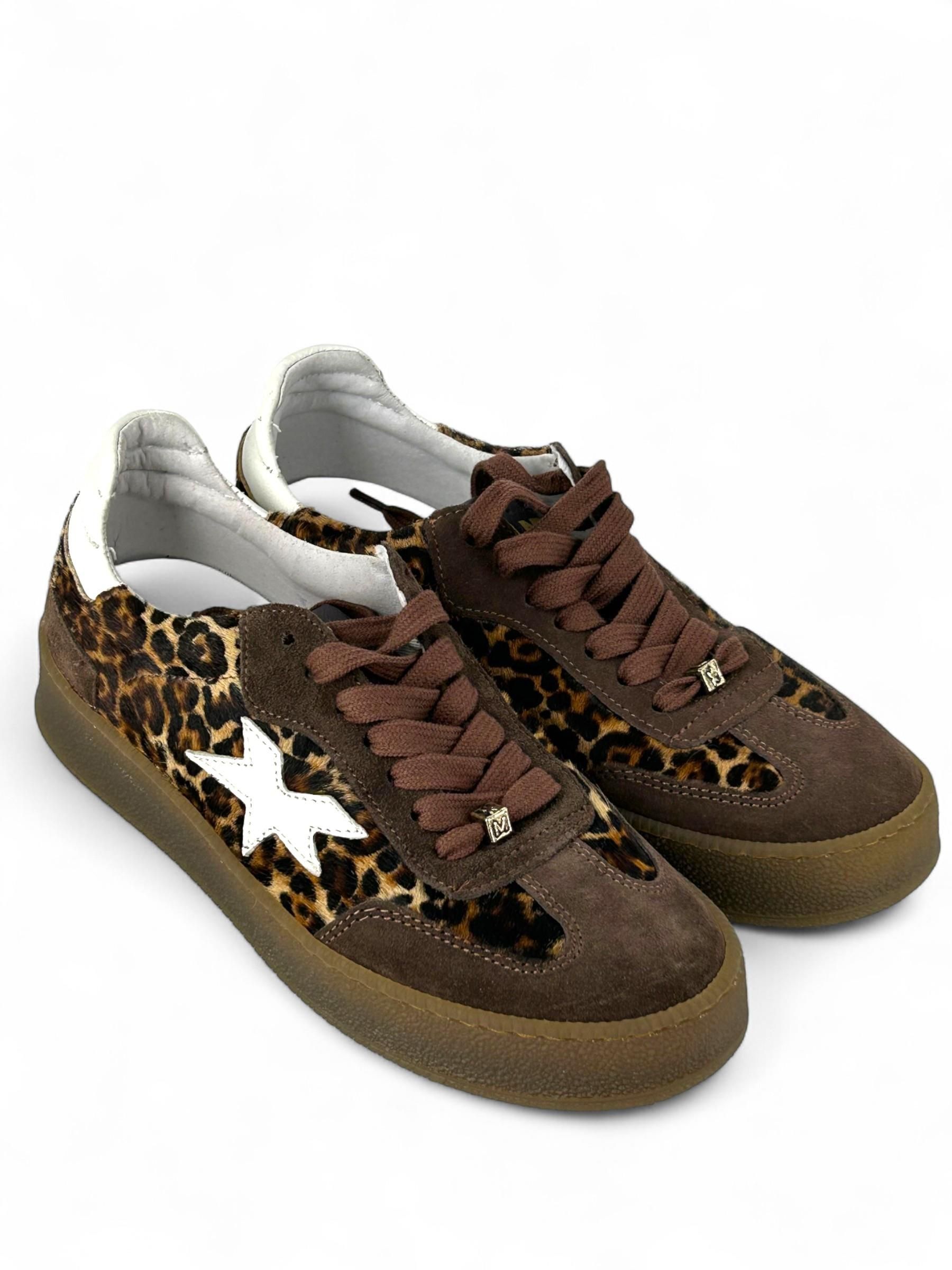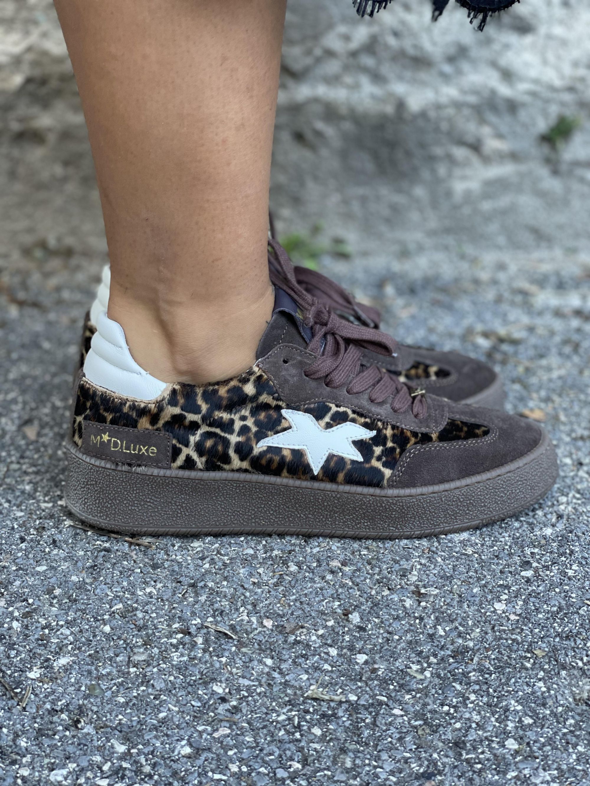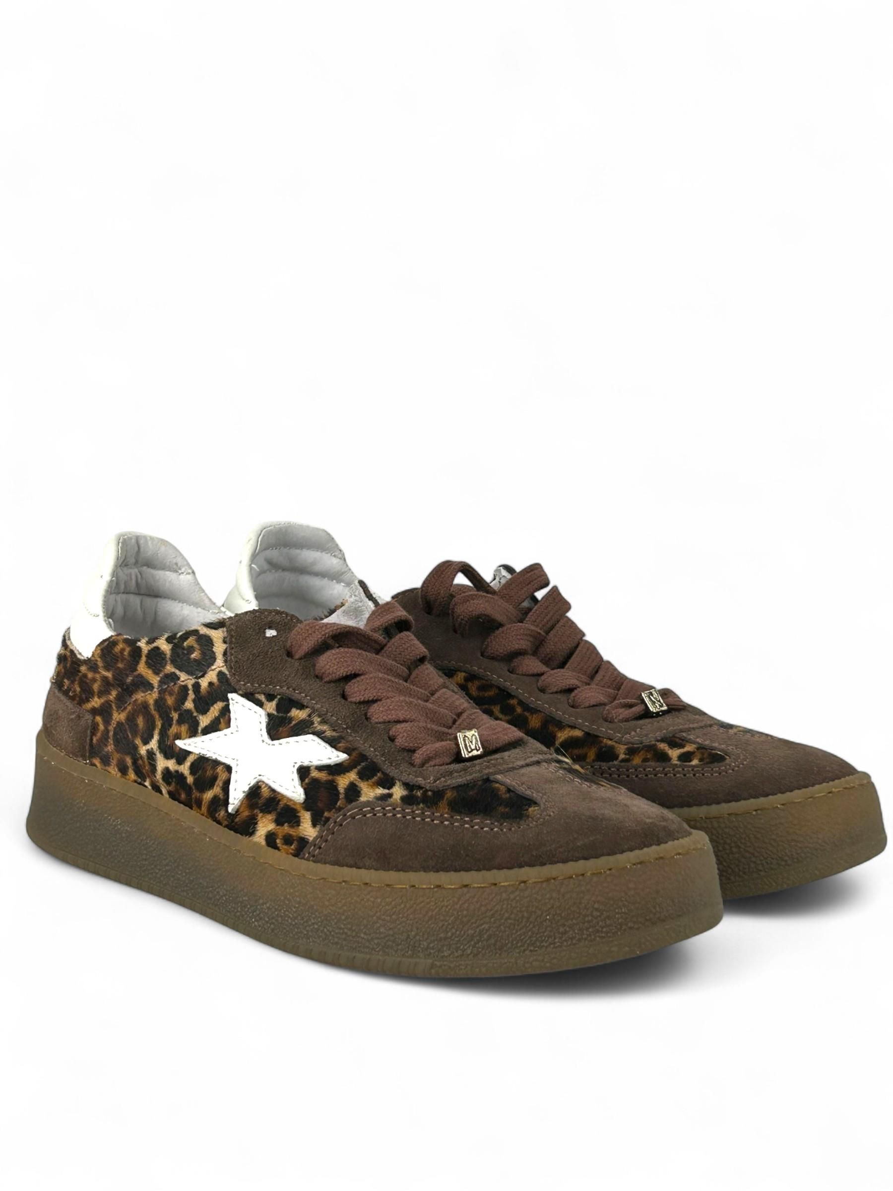 MELINE - SNEAKERS IN CAVALLINO ANIMALIER E CAMOSCIO MARRONE ART. 526BT