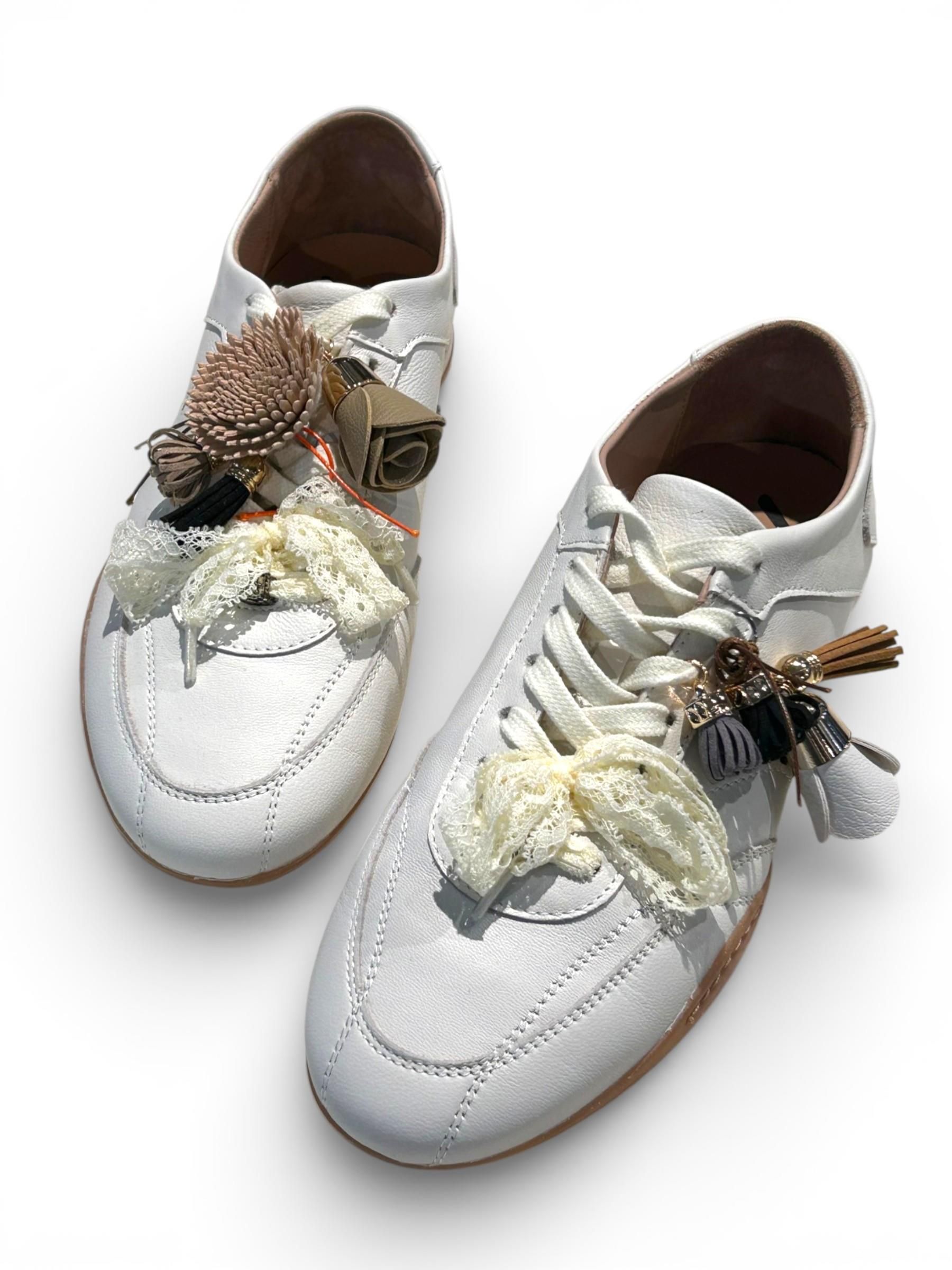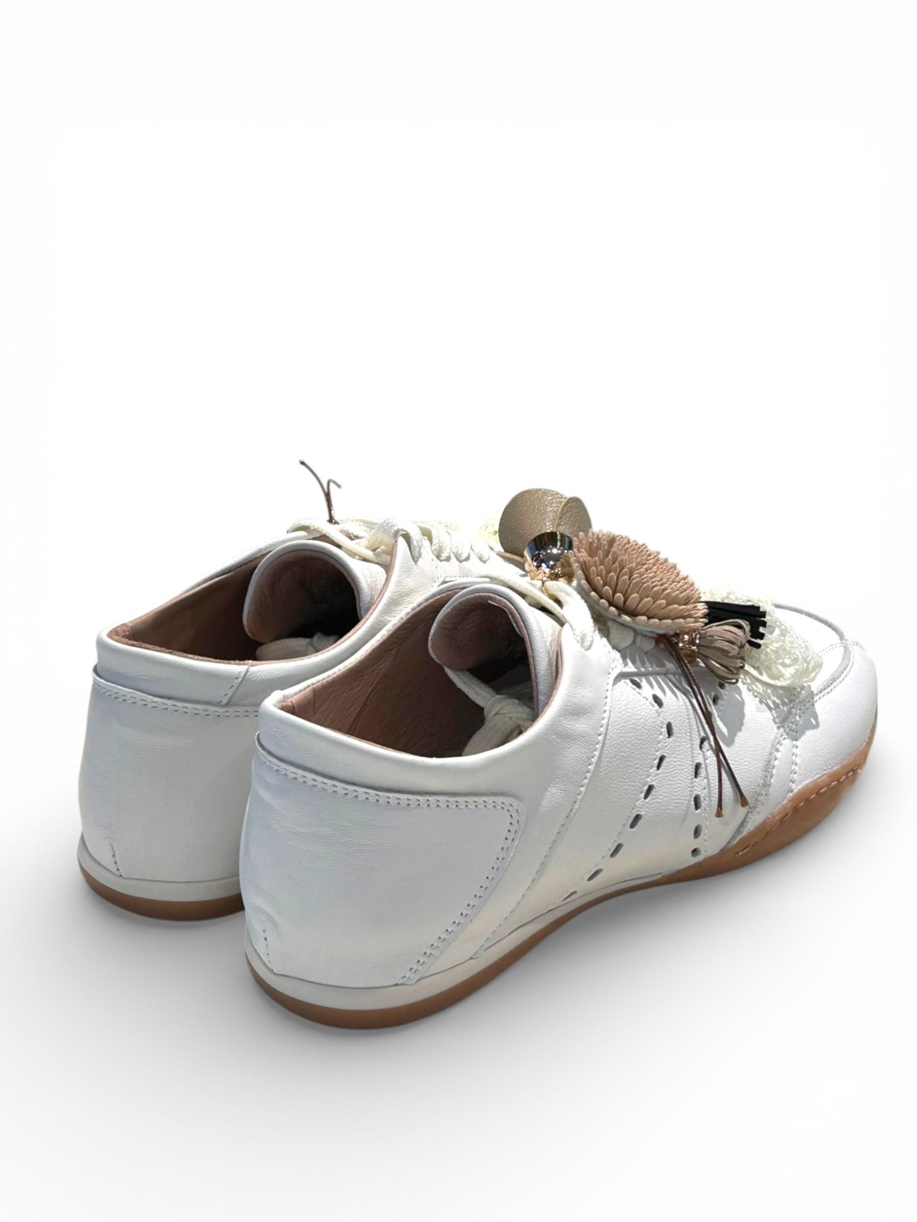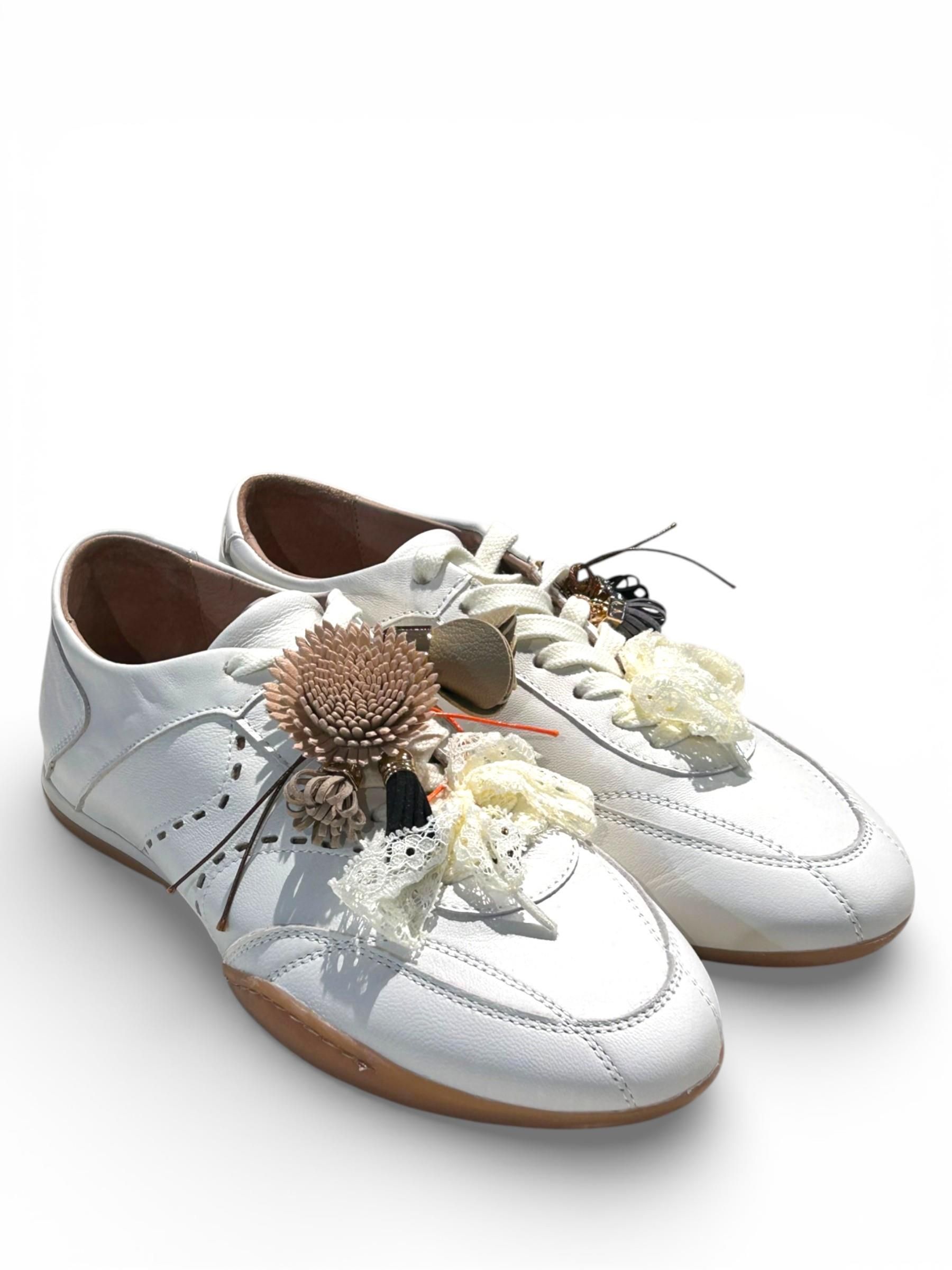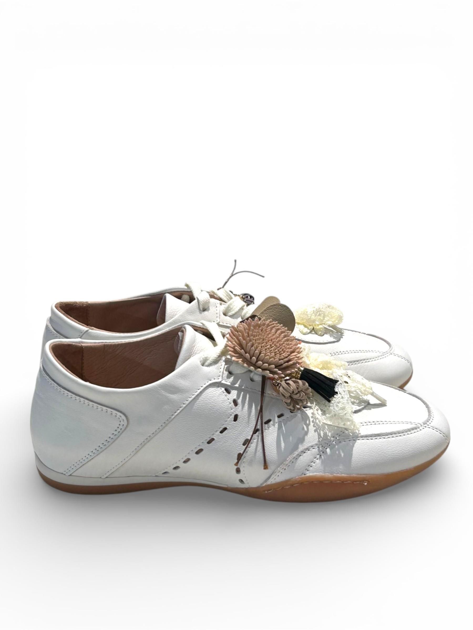 MELINE - SNEAKERS IN PELLE COLOR LATTE CON CHARMS E PIZZO ART. 8ACC