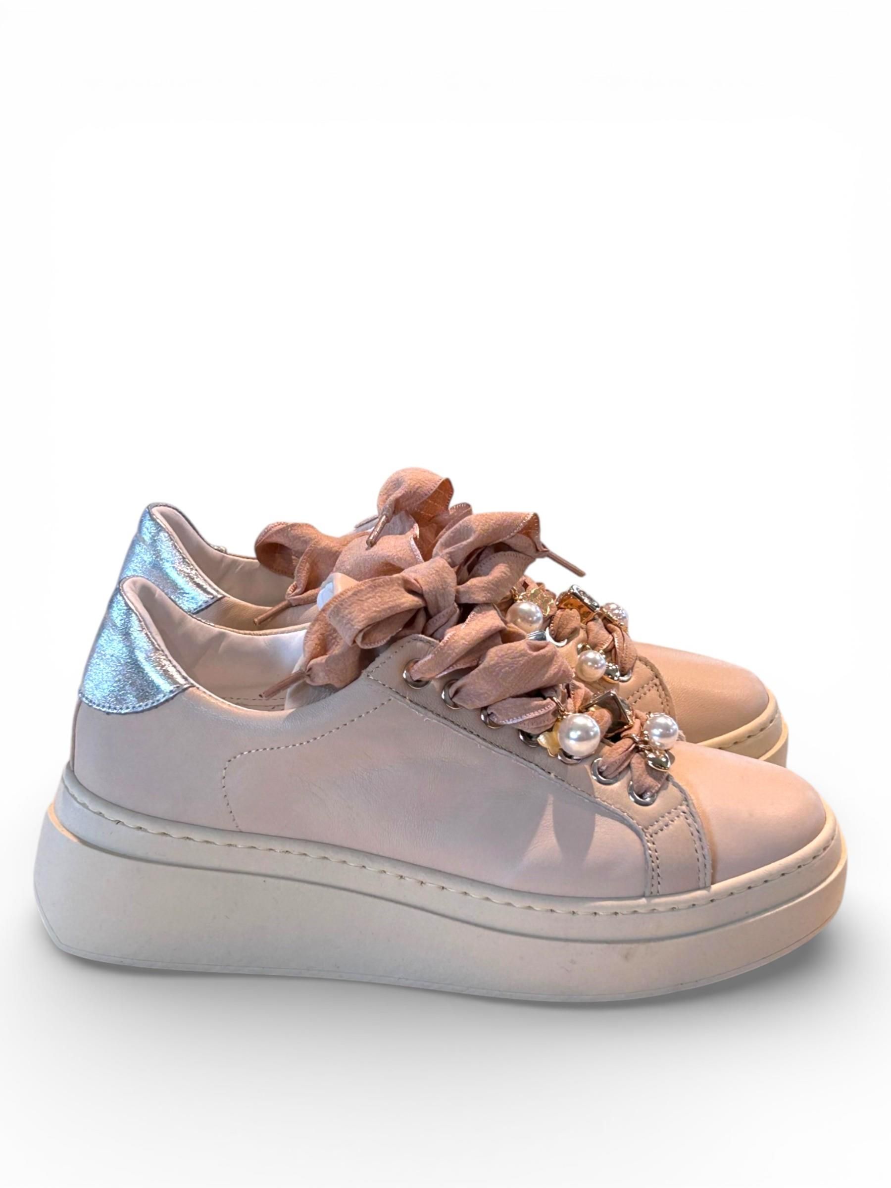 MELINE - SNEAKERS IN PELLE NUDE CON ACCESSORI GIOIELLO ART. 665ACCLO