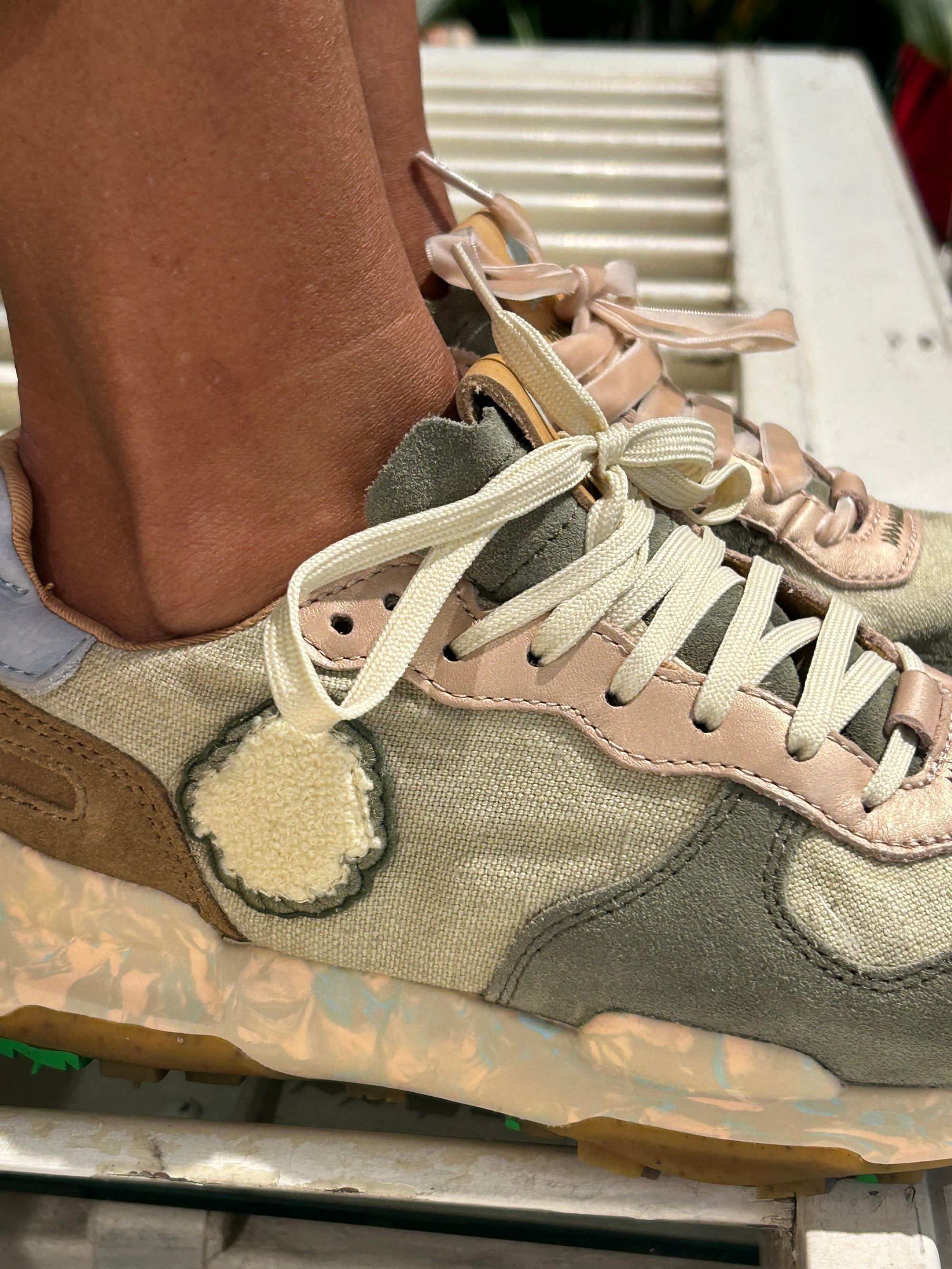 SATORISAN - SNEAKERS IN CAMOSCIO E LINO MILITARE ART. CHACRONALINEN