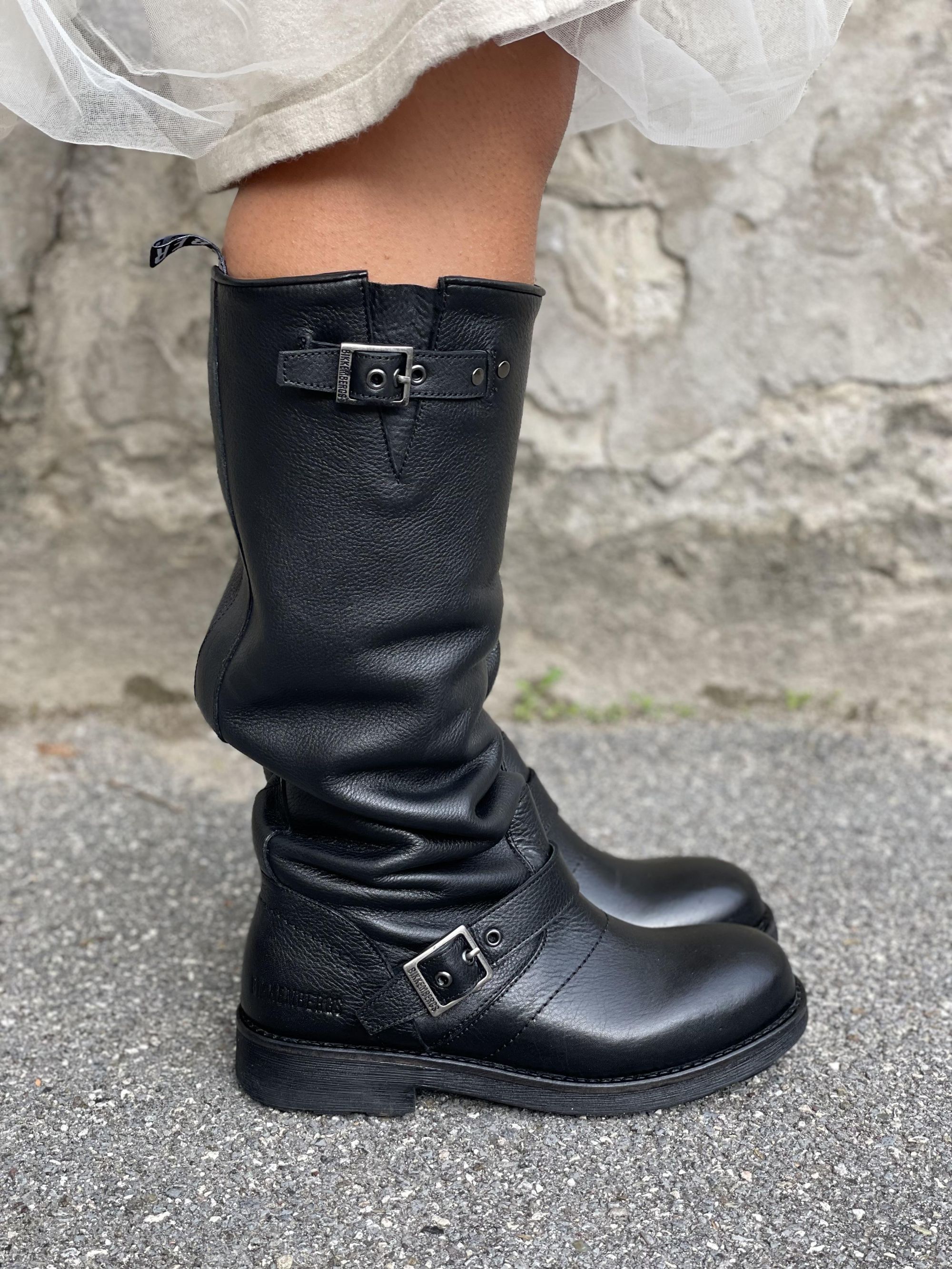 BIKKEMBERGS - BOOTS ALTO IN PELLE NERA CON FIBBIA ART. 29329